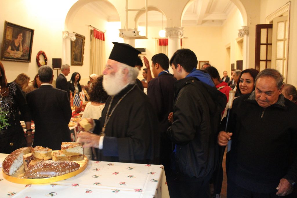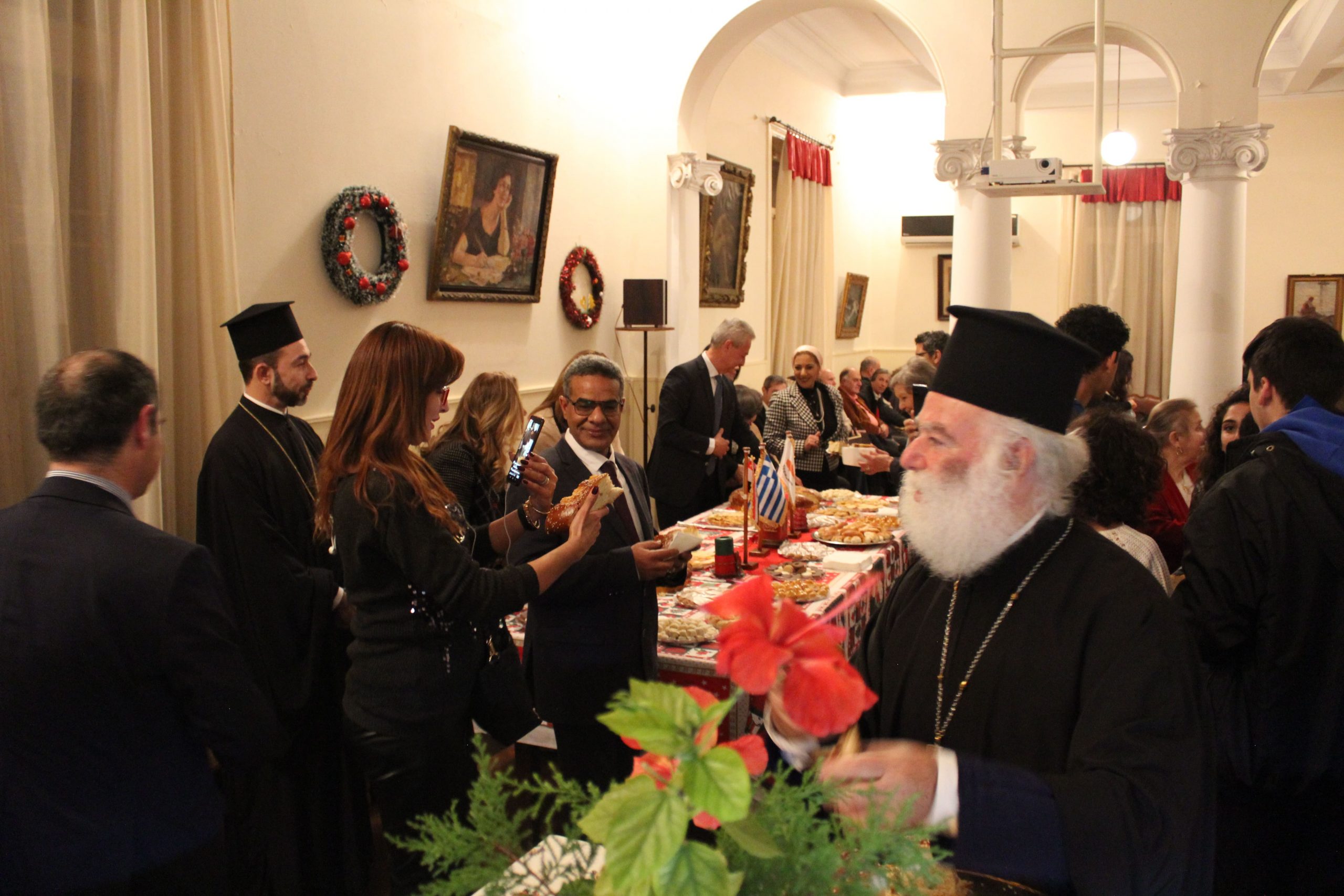 Ο Μακαριώτατος πριν ευλογήσει και κόψει το πρώτο κομμάτι της Αγιοβασιλόπιτας, στάθηκε στη μέση της αίθουσας για να επικοινωνήσει καλύτερα με τον κόσμο που είχε κατακλύσει τη σάλα του «Πτολεμαίου» και ανεφέρθη στο ταξίδι του στη Ρώμη και στην επίσκεψή του στο Βατικανό. Μίλησε και για τον Ιερό Ναό του Αγίου Θεοδώρου του Τήρωνος στη Ρώμη όπου παρέστη συμπροσευχόμενος στην εκεί τελεσθείσα Θεία Λειτουργία και μετά την ολοκλήρωση του λόγου του, με το ευχάριστο και γιορτινό χιούμορ του, προέτρεψε τους Προσκόπους Αλεξανδρείας να τραγουδήσουν το «Αρχιμηνιά κι Αρχιχρονιά» με την «υποστήριξη» των μελωδικών ήχων που παρήγαγαν τα ταλαντούχα δάχτυλα του πασίγνωστου Ριάντ στο πιάνο.