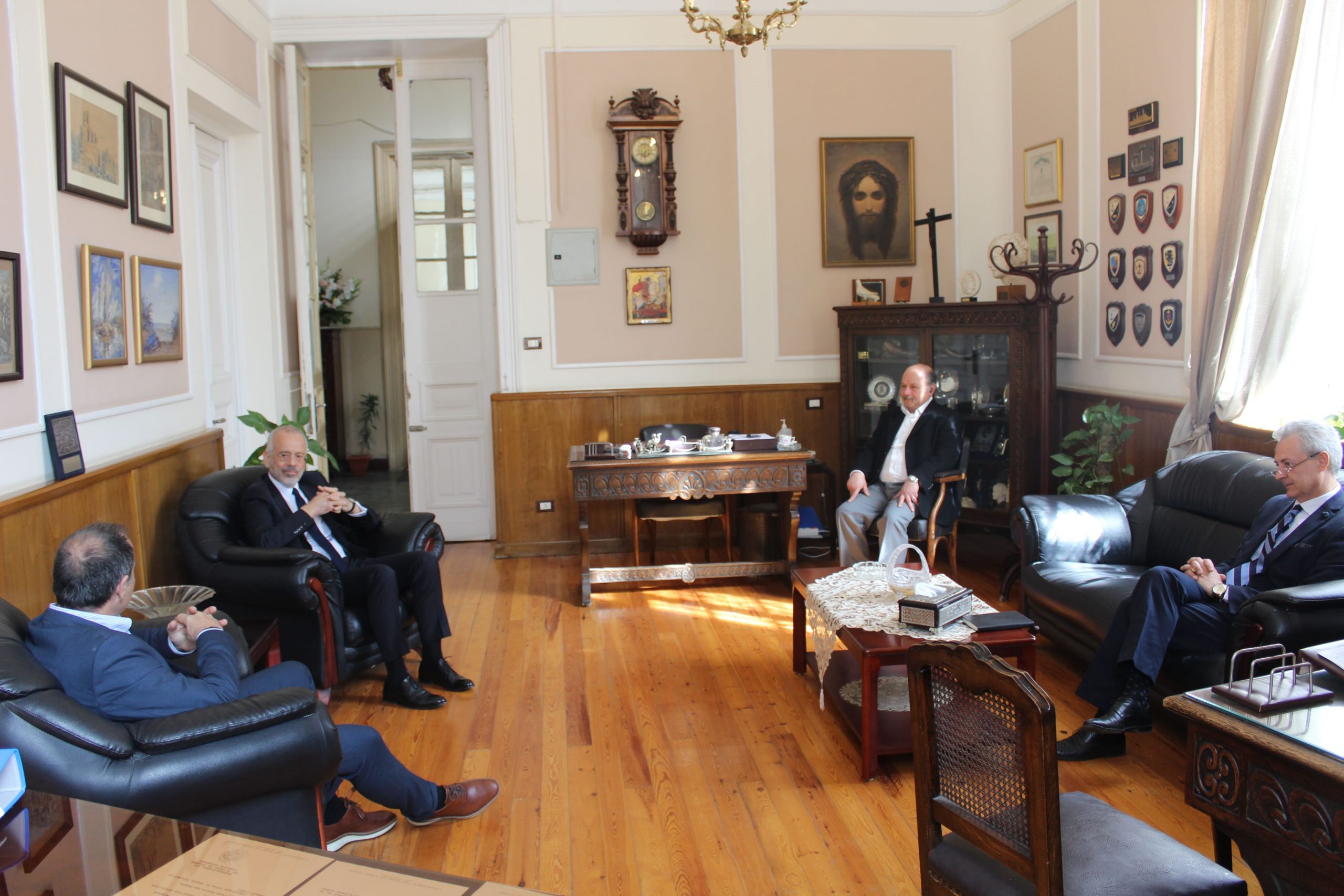 Το κλίμα που επικράτησε ήταν ευχάριστο και με αμοιβαίες υποσχέσεις να ξανασυναντηθούν οι δύο πλευρές, καθότι αυτή ήταν η παρθενική επίσκεψη του νέου Πρέσβη κ. Νικόλαου Παπαγεωργίου στα αλεξανδρινά εδάφη της Ελληνικής Κοινότητας. Υπήρξε ξενάγηση από τον κ. Βαφειάδη του εξοχότατου προσκεκλημένου, στον όροφο των συνεδριάσεων, ενός χώρου ιστορικού με τα κρεμασμένα πορτρέτα των προέδρων και των ευεργετών να ζωντανεύουν με τη ματιά τους, μια χρονική διαδρομή σχεδόν δύο αιώνων.
