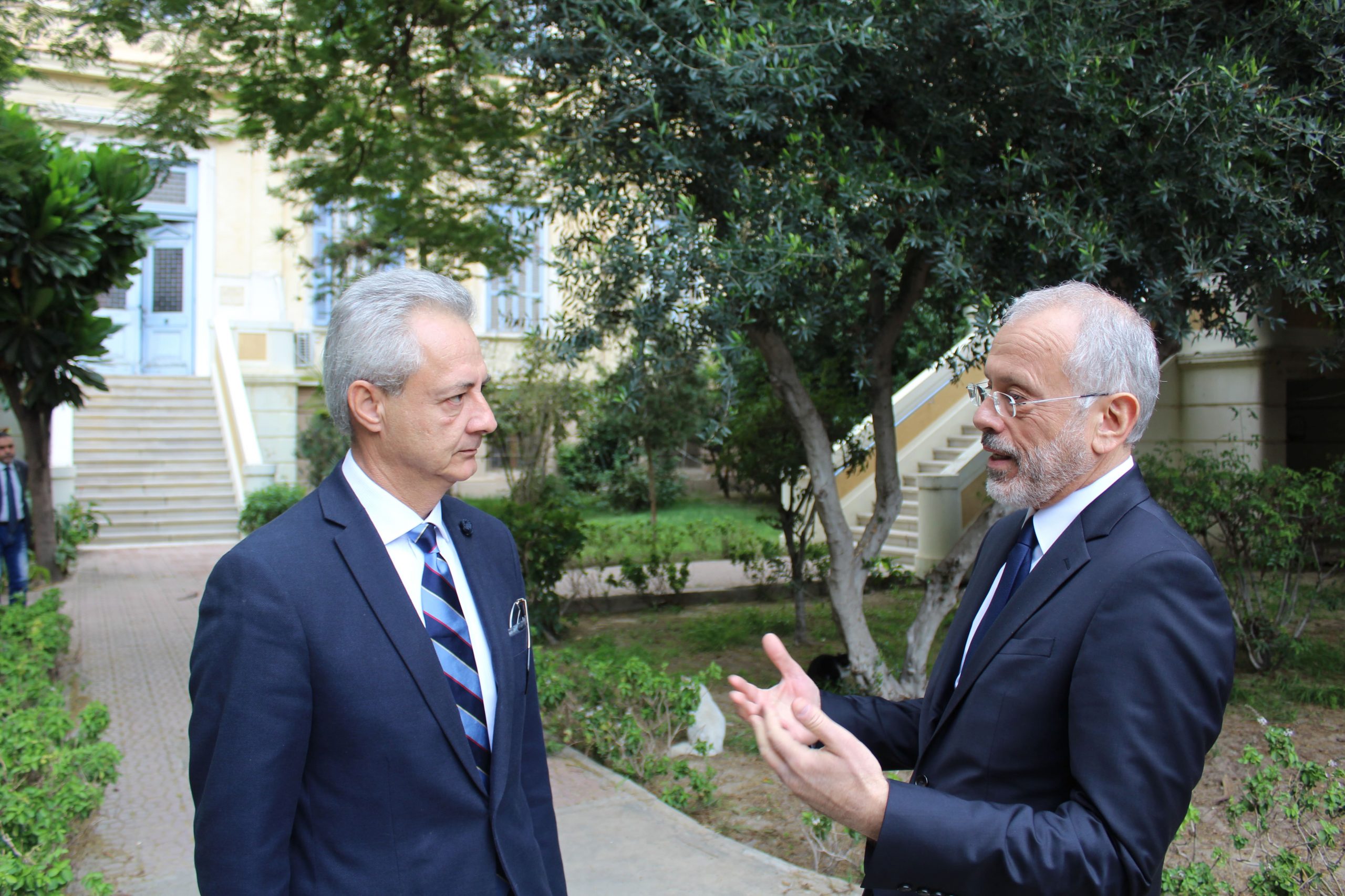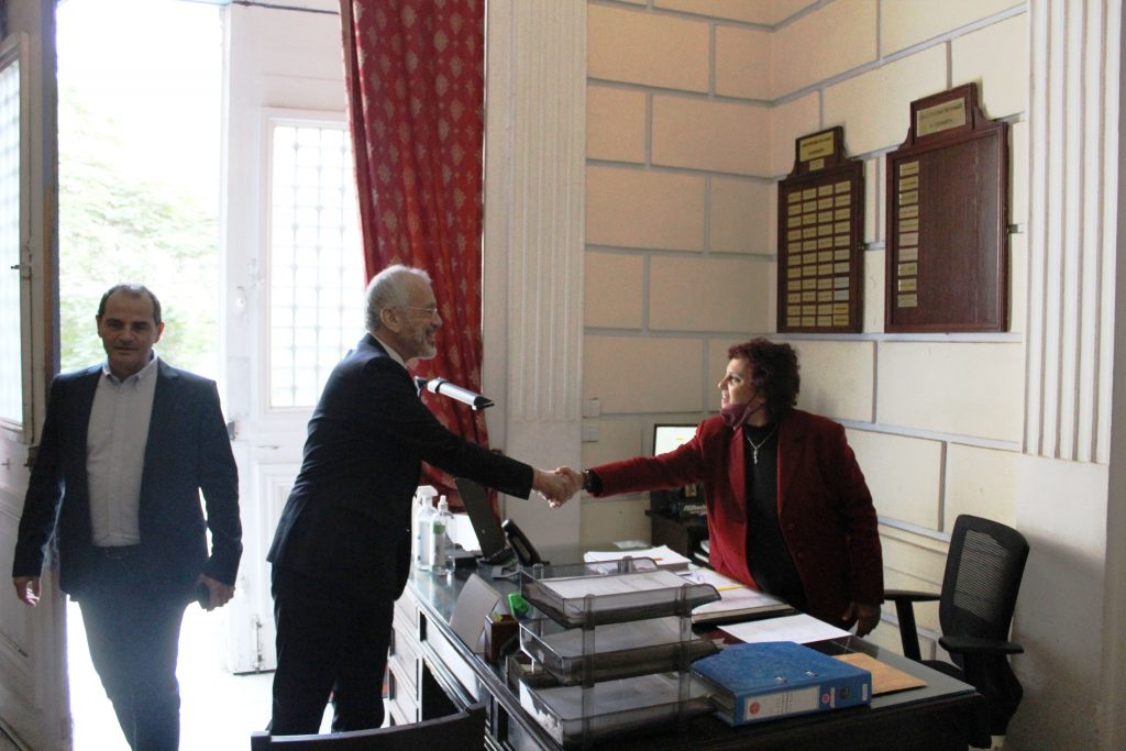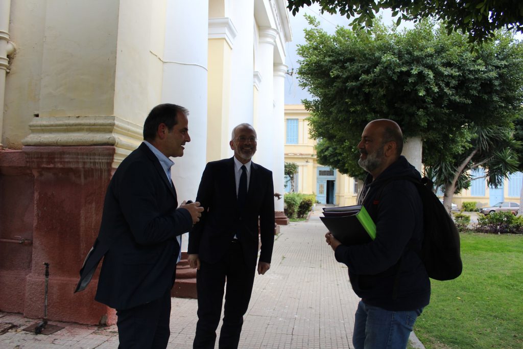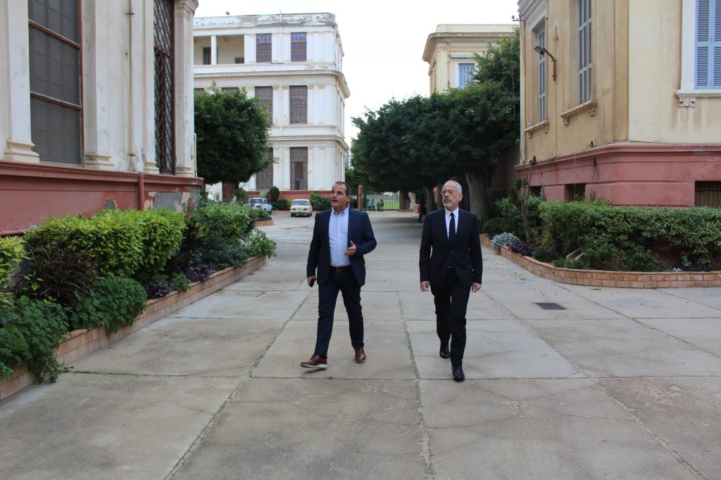 Στη συνέχεια περιηγήθηκαν με τον Αντιπρόεδρο κ. Ανδρέα Βαφειάδη στους εξωτερικούς χώρους της Κοινότητας και ο νέος Πρέσβης της Ελλάδας στην Αίγυπτο θαύμασε την αρχιτεκτονική των ιστορικών κτιρίων και την ομορφιά και αισθητική των σχολείων.