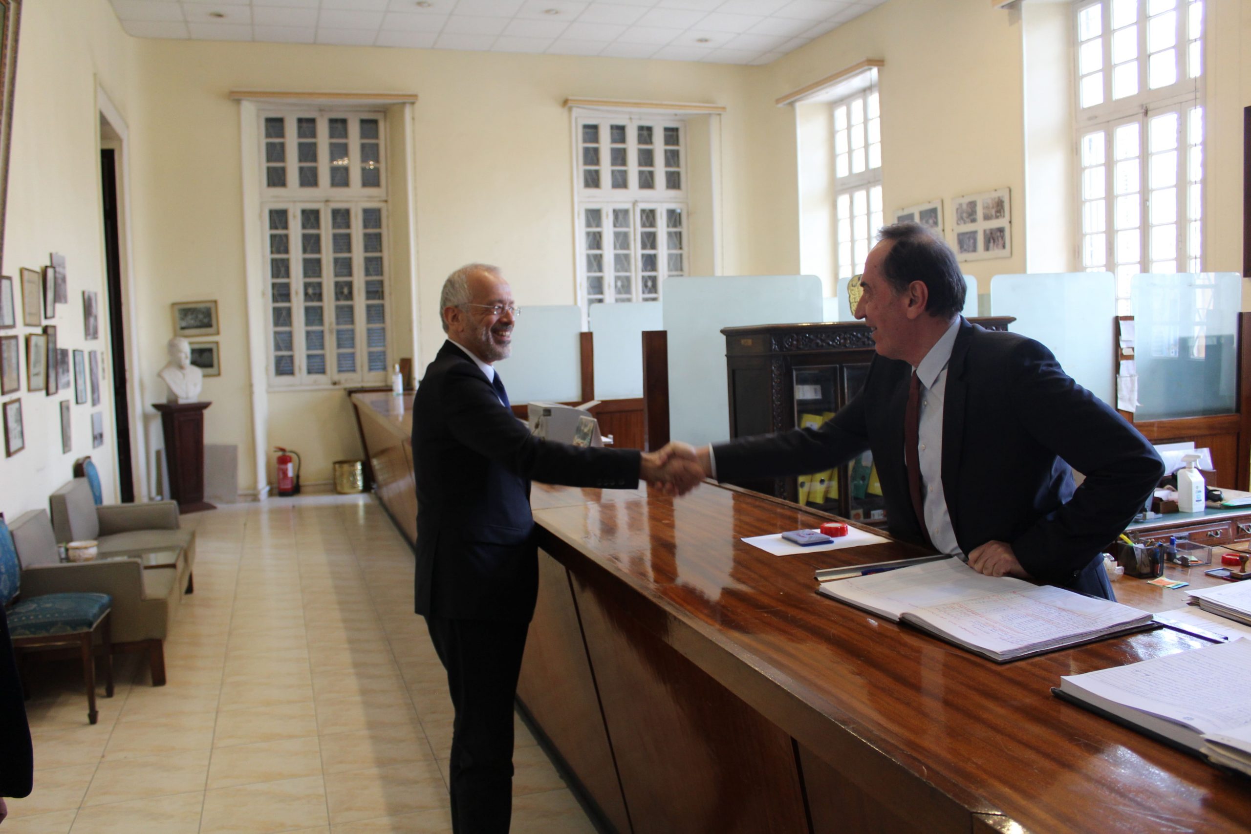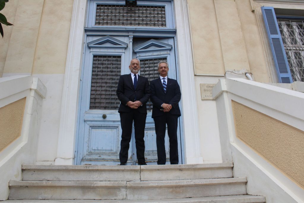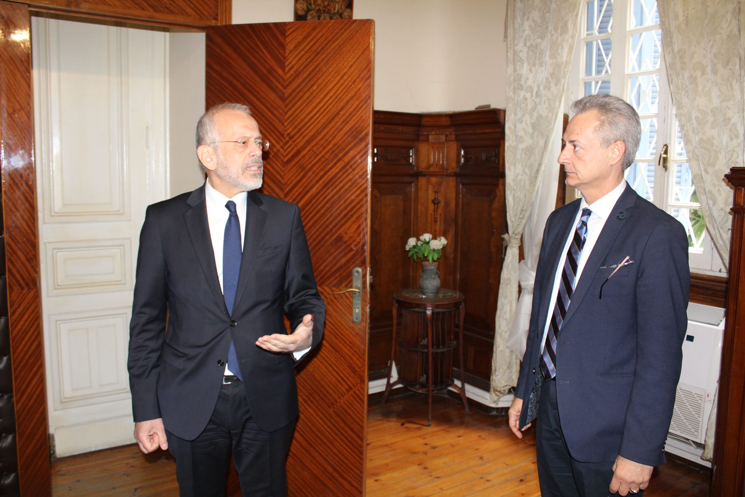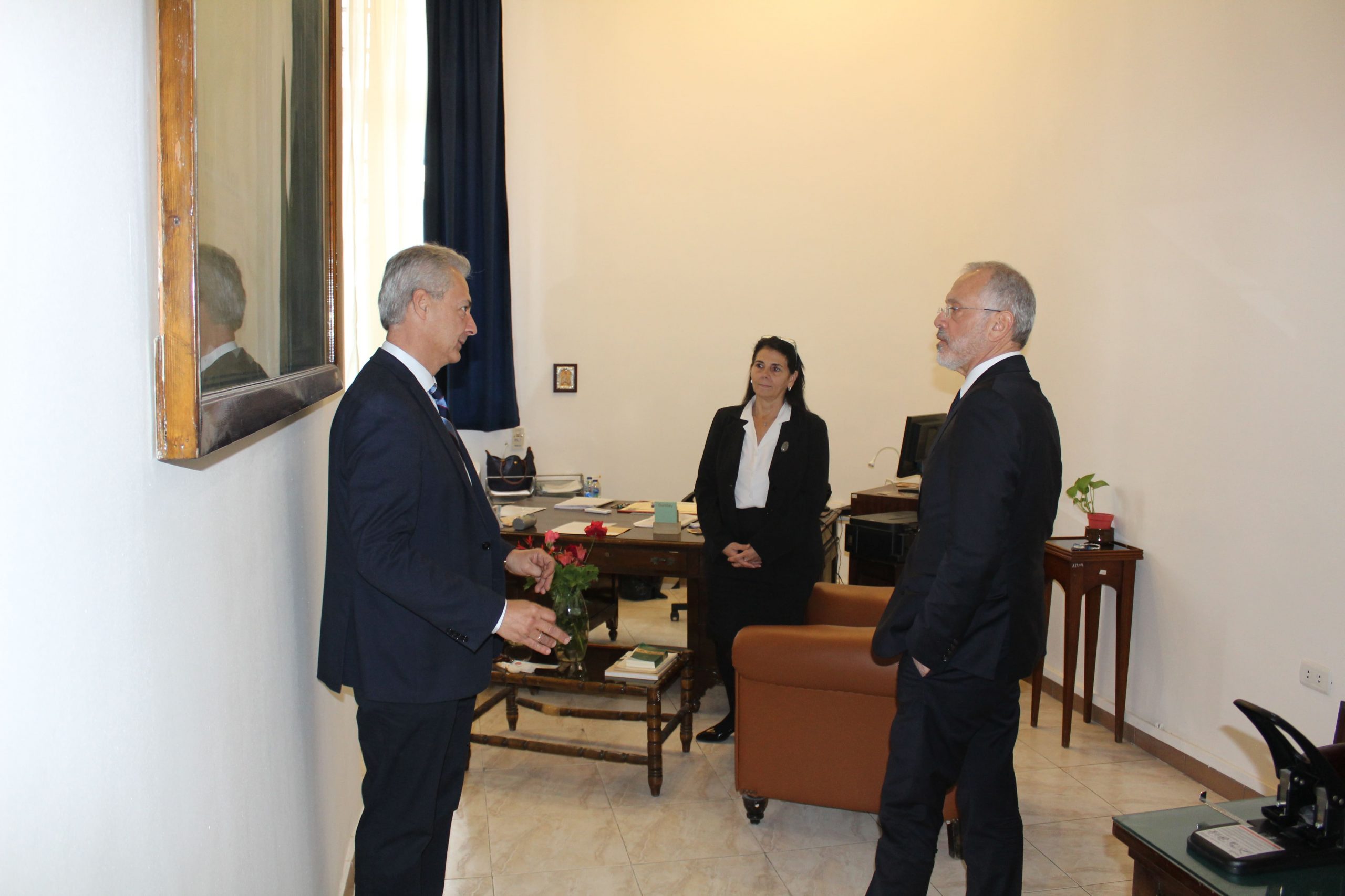 Οι δύο άνδρες συνάδελφοι, τα είπαν στη “δική τους γλώσσα”, ενώ ταυτόχρονα ο οικοδεσπότης Πρέσβης ξεναγούσε τον προσκεκλημένο του και τον ενημέρωνε για την ιστορία του Προξενείου. Όμορφες στιγμές οι συναντήσεις με την κα. Ιωάννα Κοτσιώνη, την κα. Μαρία Παυλίδου, τον κ. Θρασύβουλο Μακρή και τον κ. Φίλιππο Άτεφ καθώς ο Πρέσβης κ. Κοτσιώνης τους σύστηνε στον συνάδελφό του.