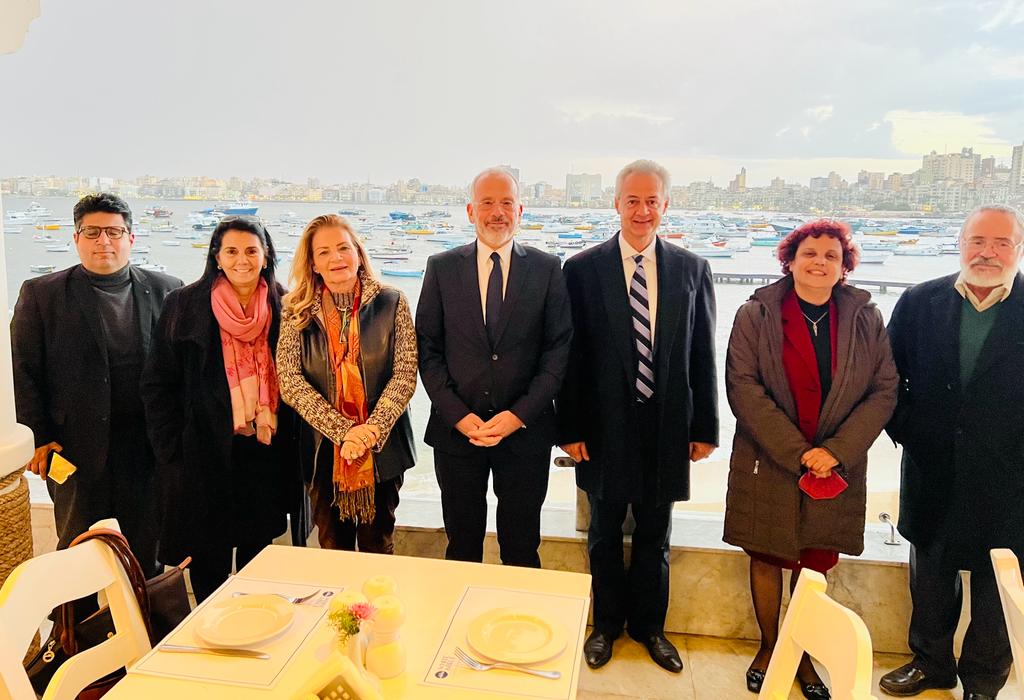 Ακολούθησε η επίσκεψη του επίσημου επισκέπτη στο Γενικό Προξενείο Αλεξανδρείας, όπου εκεί τον ανέμενε ο Πρέσβης κ. Αθανάσιος Κοτσιώνης, ο άνθρωπος που ταυτίστηκε για χρόνια με την Αλεξάνδρεια, τους αλεξανδρινούς και τον Αιγυπτιώτη Ελληνισμό.