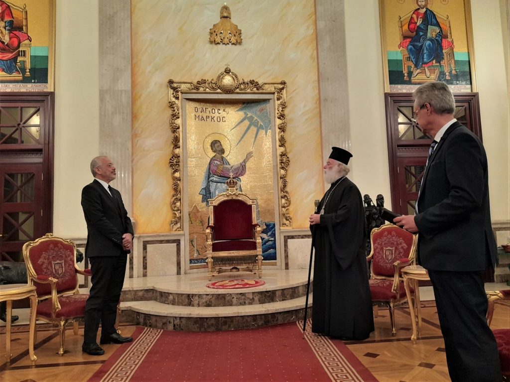 Υποδεχόμενος ο Μακαριώτατος τον κ. Πρέσβη στην Αίθουσα του Θρόνου εξέφρασε την χαρά του για την επίσκεψη αυτή, υπογραμμίζοντας τις αρμονικές σχέσεις μεταξύ Ελλάδος και Αιγύπτου. Ταυτοχρόνως εξέφρασε για μια ακόμη φορά την ευγνωμοσύνη της Αλεξανδρινής Εκκλησίας προς την Ελληνική Πολιτεία, ως και προς τον Εξοχ. Πρωθυπουργό κ. Κυριάκο Μητσοτάκη, για την διαρκή συναντίληψη προς το εν γένει ιεραποστολικό, ποιμαντικό, ανθρωπιστικό και εθνικό έργο στην Αφρικανική ήπειρο.