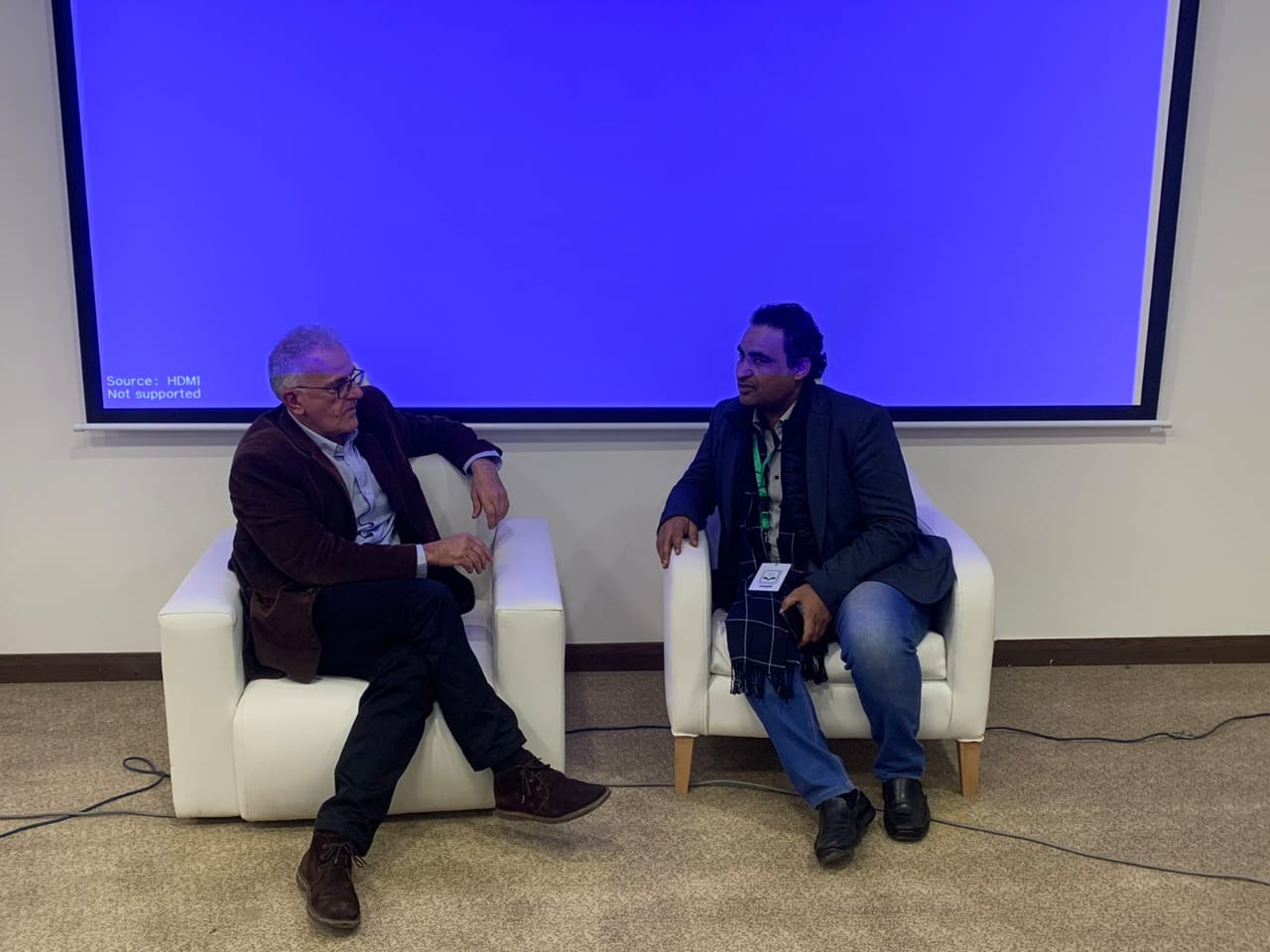 Μετά το πέρας της εκδήλωσης ο συγγραφέας παραχώρησε συνέντευξη στον δημοσιογράφο της εφημερίδας Αλ Ντοστούρ κ. Χάλεντ Χάμαντ.