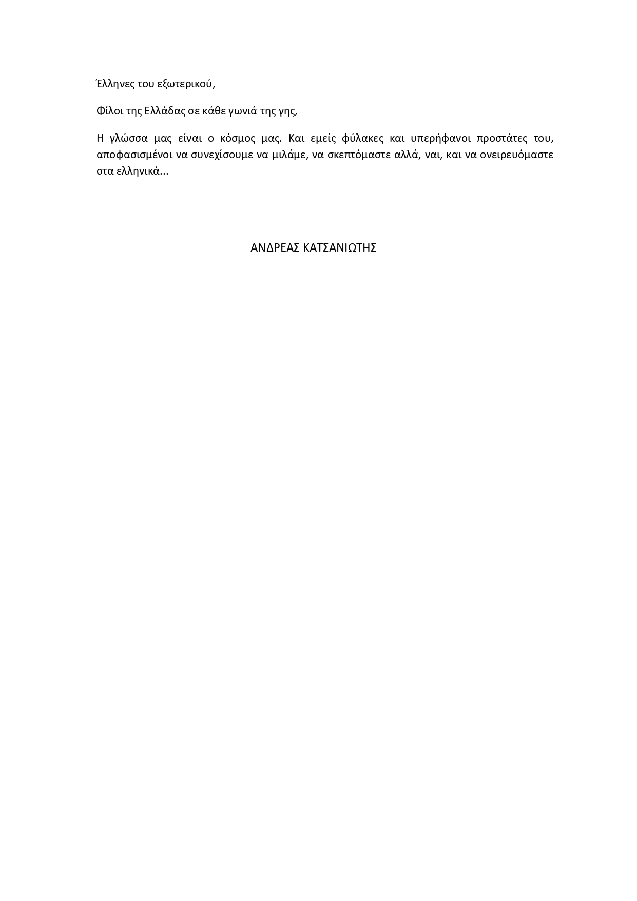 Μήνυμα Υφυπουργού κ. Ανδρέα Κατσανιώτη για την Παγκόσμια Ημέρα Ελληνικής Γλώσσας