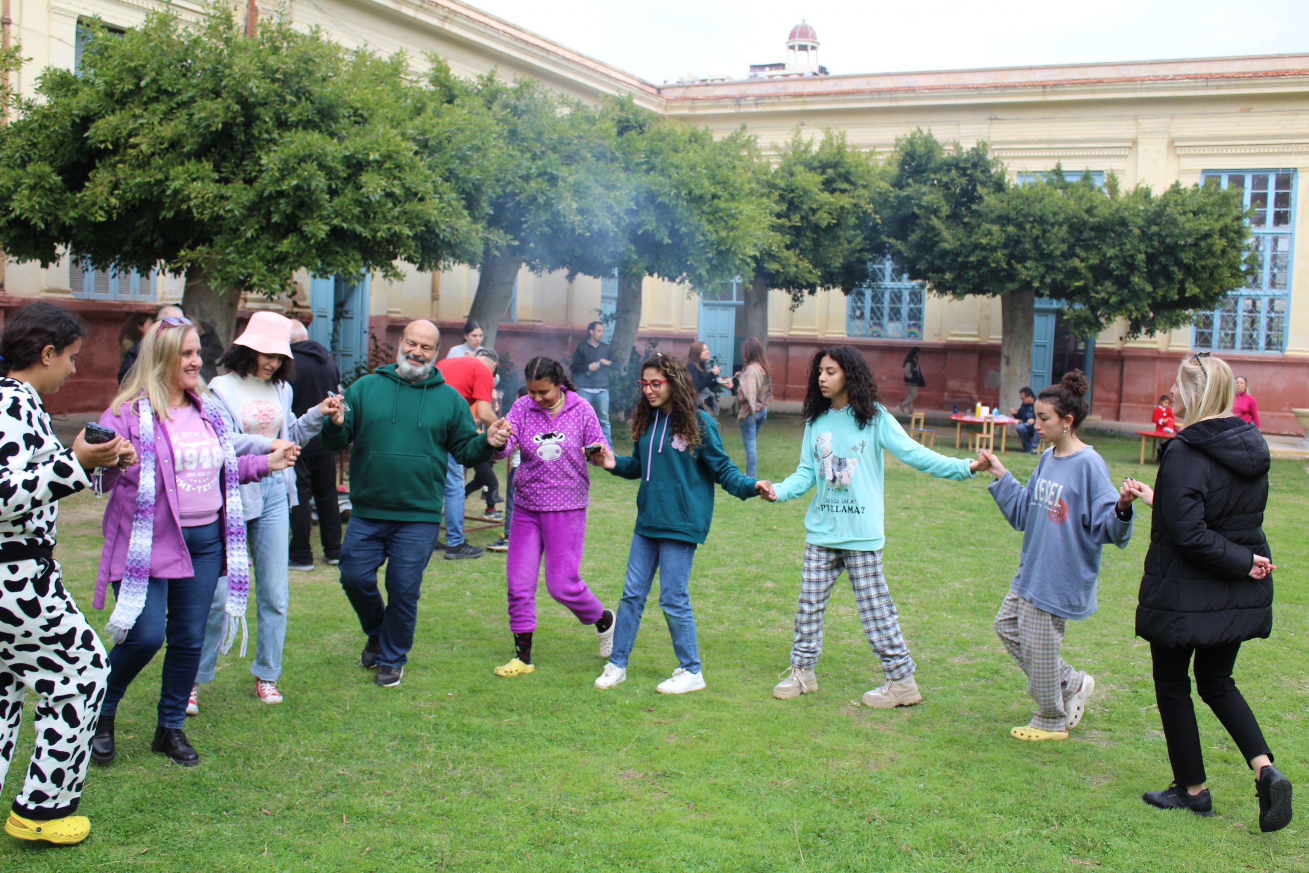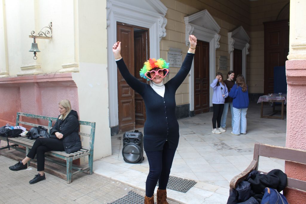 Ο ουρανός είχε υπογράψει ανακωχή, τα σύννεφα αποσυρμένα διευκόλυναν το γλεντοκόπι και οι ουρανίσκοι απολάμβαναν τα πάσης φύσεως εδέσματα που είχαν απλωθεί στα τραπέζια. Οι μαθητές χόρευαν, άλλοι ντυμένοι αποκριάτικα καμώνονταν πως είναι πολεμιστές, κουρσάροι, τροβαδούροι και οι εκπαιδευτικοί έπρατταν το αντίθετο, κατέβαζαν τα ηλικιακά όρια και ξαναγίνονταν παιδιά.