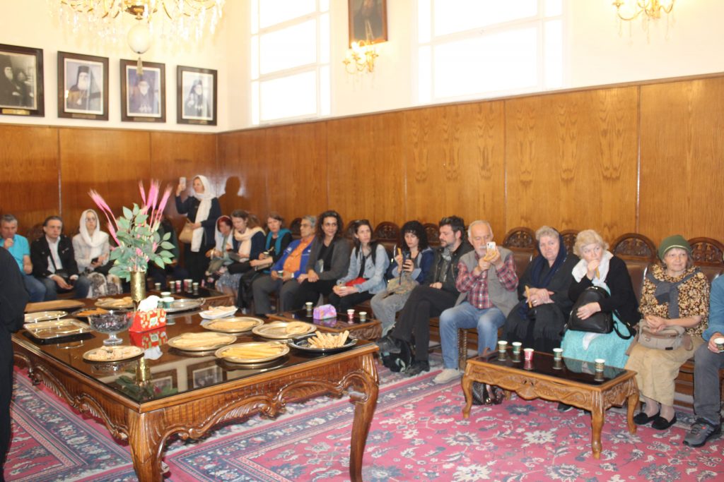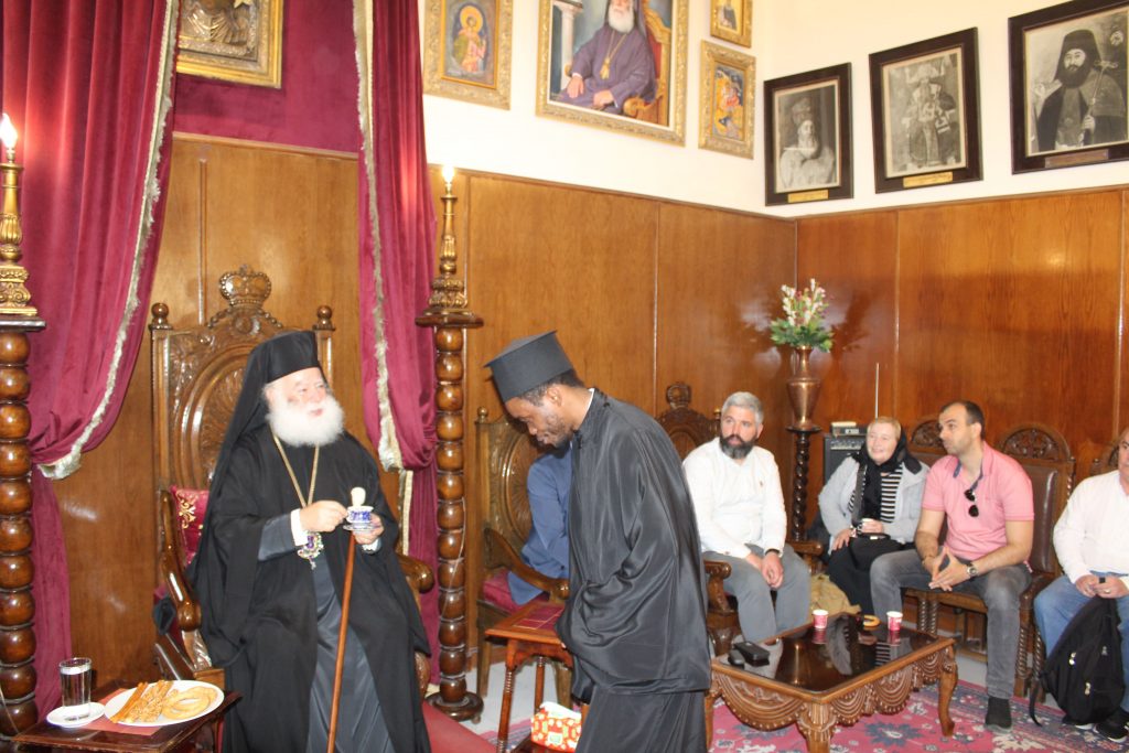 Στο τέλος ο Πατριάρχης προσκάλεσε όλους τους εκκλησιαζόμενους στο Αρχονταρίκι του ανωτέρω ιερού ναού, όπου εκεί τους προσεφέρθη καφές, χυμοί και καλούδια. Οι φίλοι Σέρβοι χαρούμενοι και πλήρως ικανοποιημένοι απ’ την εμπειρία τους να συμπροσευχηθούν με τον Μακαριώτατο, σφράγισαν με τα χαμόγελά τους, μια ωραία Κυριακή στην Ιερά Μονή του Αγίου Σάββα του Ηγιασμένου.