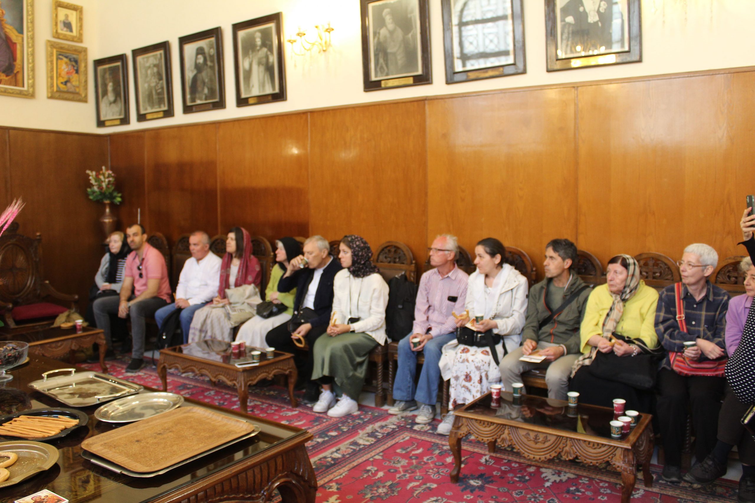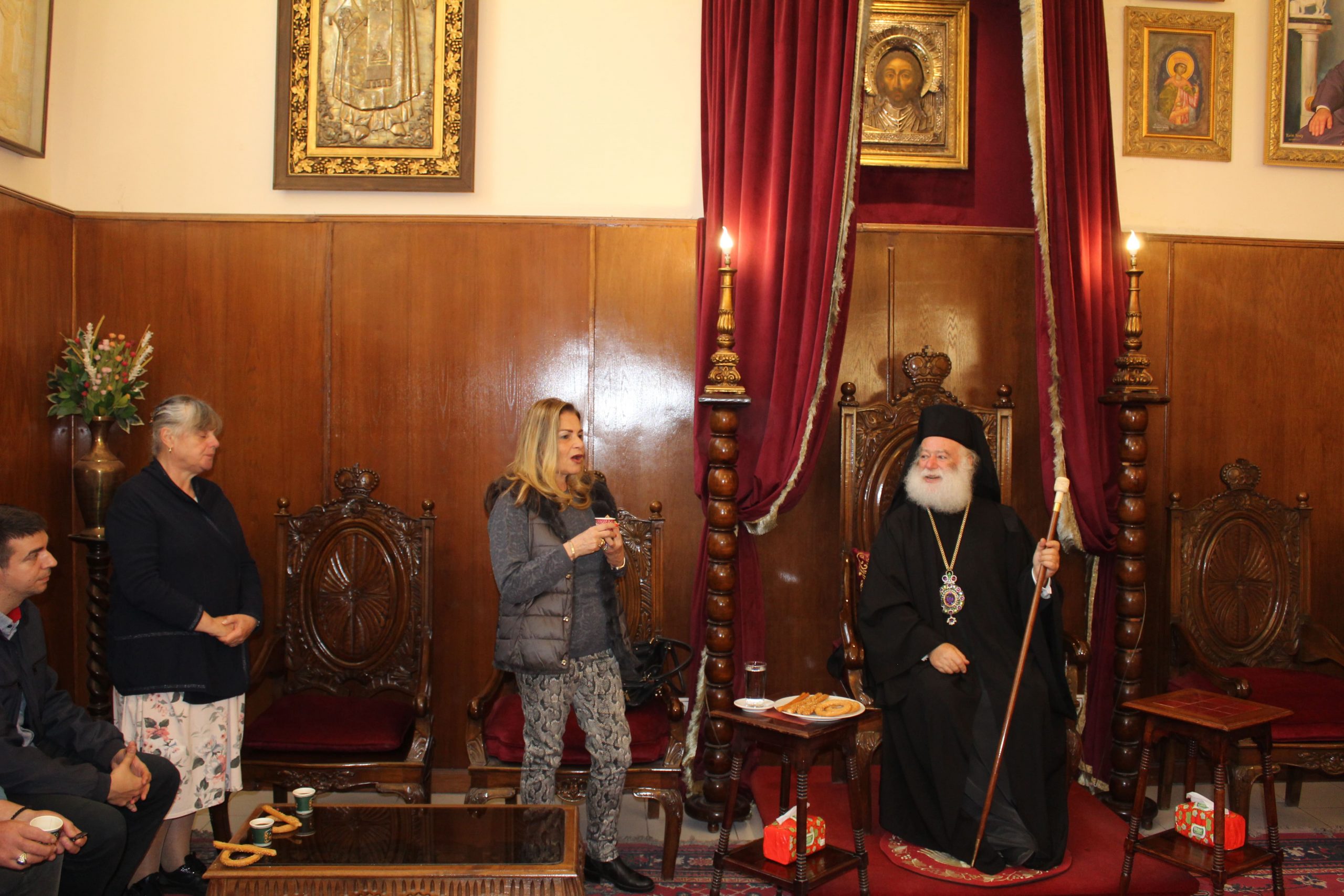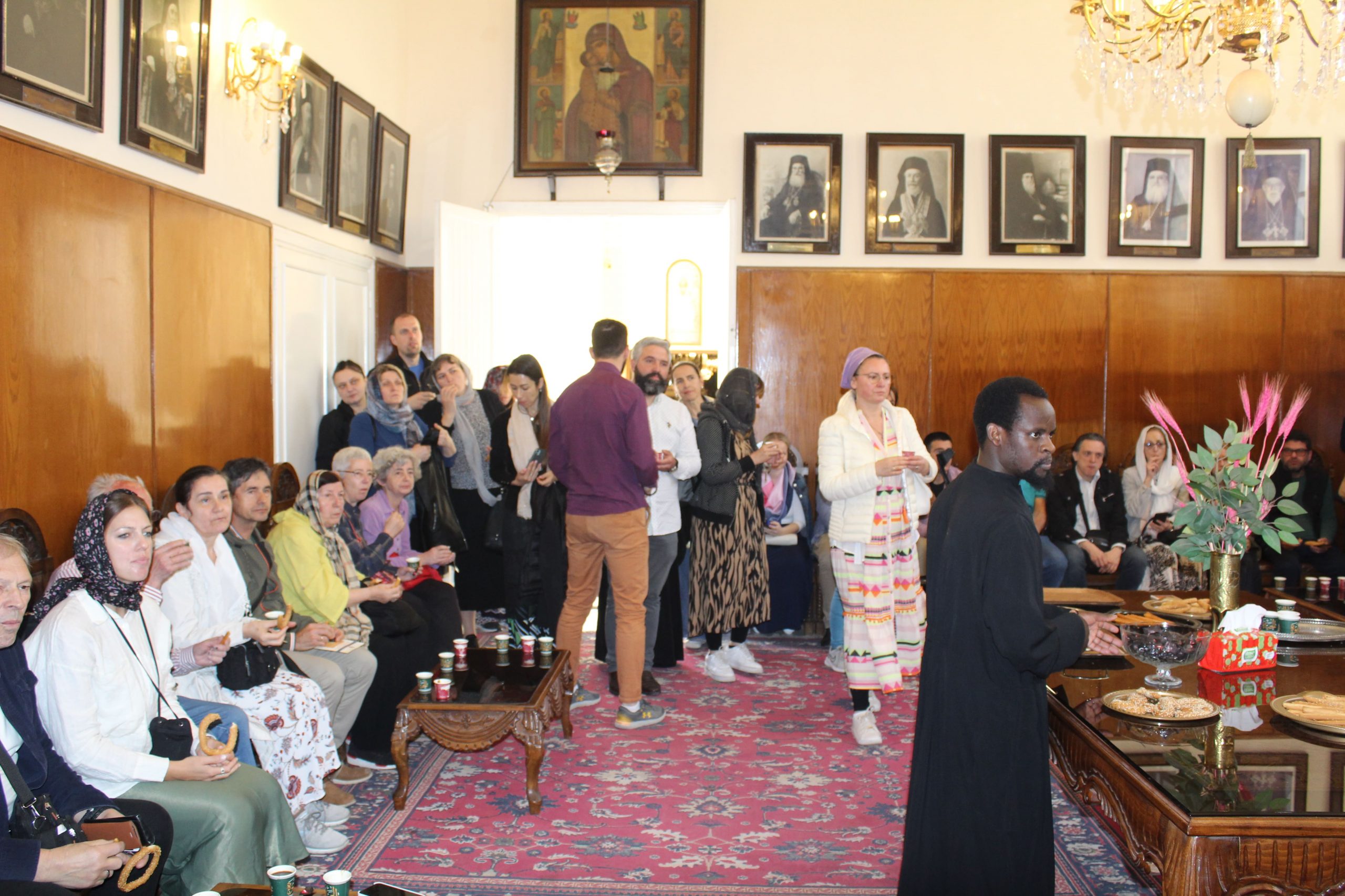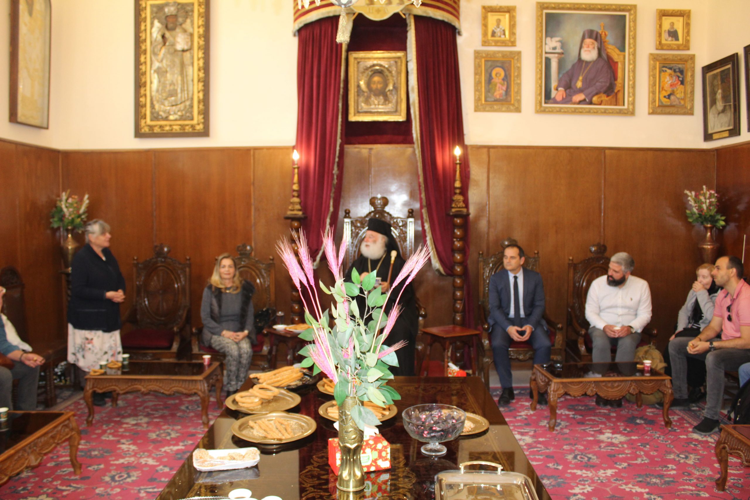 Στο τέλος ο Πατριάρχης προσκάλεσε όλους τους εκκλησιαζόμενους στο Αρχονταρίκι του ανωτέρω ιερού ναού, όπου εκεί τους προσεφέρθη καφές, χυμοί και καλούδια. Οι φίλοι Σέρβοι χαρούμενοι και πλήρως ικανοποιημένοι απ’ την εμπειρία τους να συμπροσευχηθούν με τον Μακαριώτατο, σφράγισαν με τα χαμόγελά τους, μια ωραία Κυριακή στην Ιερά Μονή του Αγίου Σάββα του Ηγιασμένου.