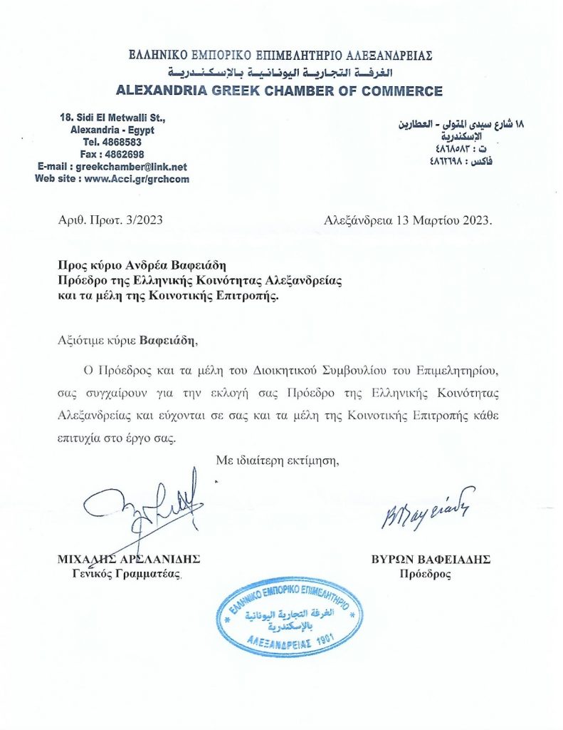 Παρατίθενται κάτωθι οι Συγχαρητήριες Επιστολές προς τον νεοκλεγέντα Πρόεδρο της ΕΚΑ κ. Ανδρέα Βαφειάδη
