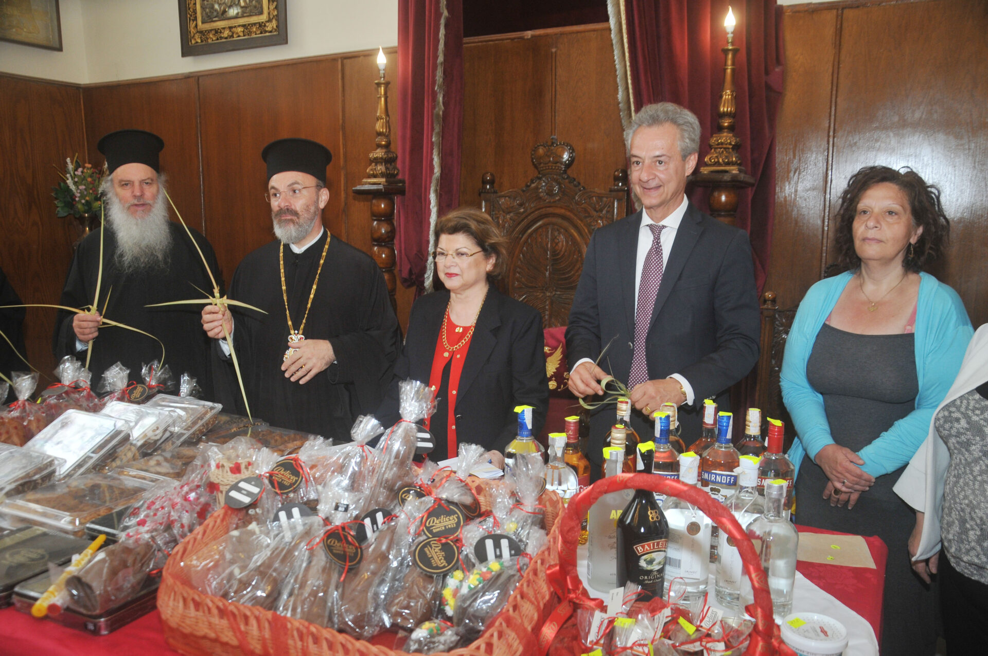 Την Κυριακή των Βαΐων πραγματοποιήθηκε η Πασχαλινή Εορταγορά του Λυκείου Ελληνίδων στην Ιερά Μονή του Αγίου Σάββα. Όπως κάθε χρόνο ήταν απόλυτα επιτυχημένη με πολλούς επισκέπτες, οι οποίοι αγόρασαν τα πασχαλινά τους δώρα. Η Πρόεδρος του Λυκείου των Ελληνίδων, κα. Αλίκη Αντωνίου, ευπρόσχαρη με το χαμόγελο υποδεχόταν τους φίλους και λειτούργησε ως άψογη οικοδέσποινα. Μαζί της οι κυρίες: Αγγελική Τσιαδήμη, Βάσω Ναμπίλ, Ευαγγελία Παπαζώτου, Μαρία Ανφούση, Άννα Μπούτρος, Γιολάντα Ρεφάνη, Δήμητρα Μαρκοζάνη, Κυριακή Γεωργακάκη και άλλες κυρίες του ανωτέρω Λυκείου.