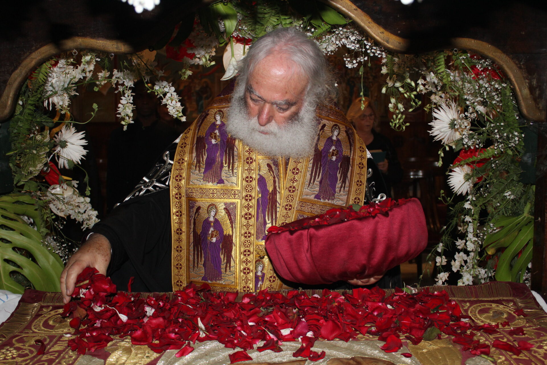 Ο Πατριάρχης ευχαρίστησε θερμά τον Πρώην Πρόεδρο της ΕΚΑ και επιχειρηματία κ. Ιωάννη Σιόκα, που κάθε χρόνο στολίζεται ο Επιτάφιος με δική του σιωπηλή προσφορά και μνημόνευσε τους αείμνηστους γονείς του ανωτέρω, καθώς και πολλούς φίλους και μέλη της αλεξανδρινής παροικίας που δεν βρίσκονται πλέον ανάμεσά μας.