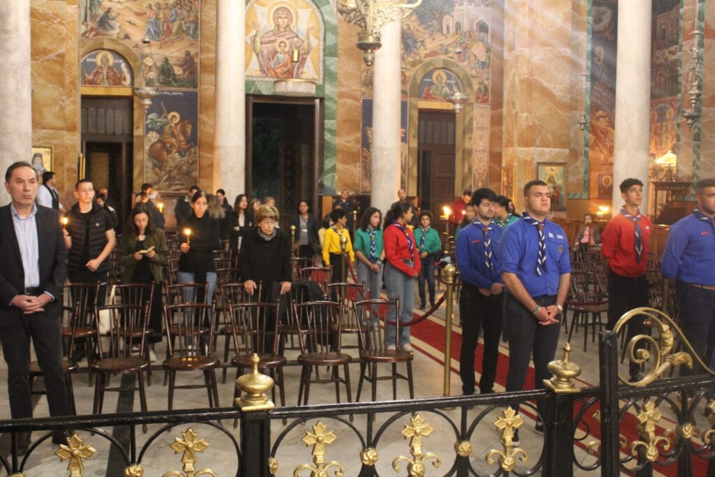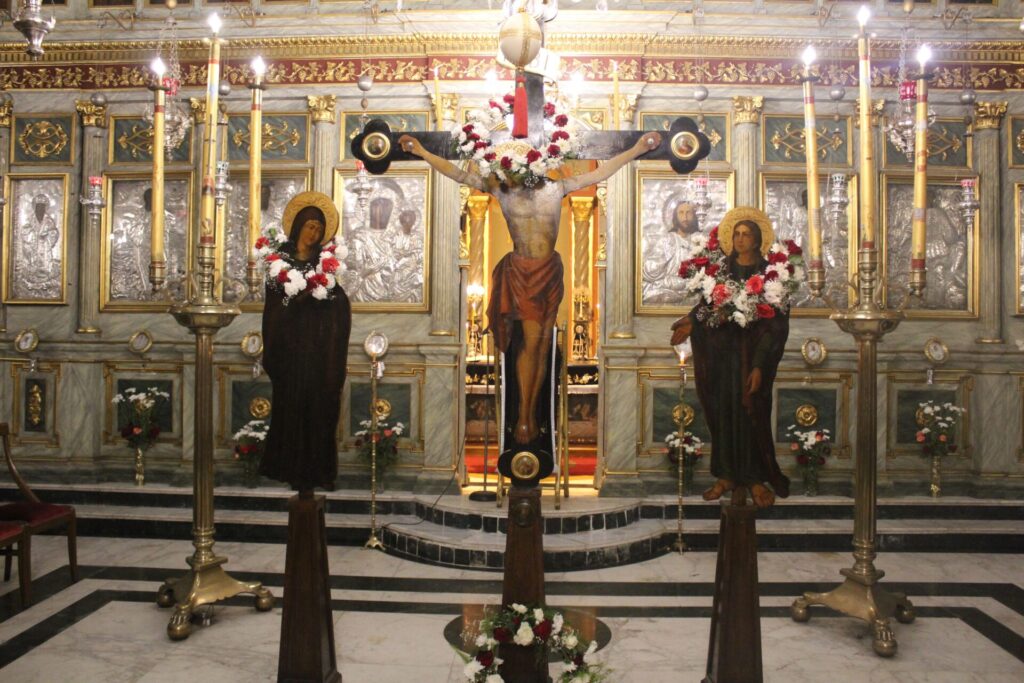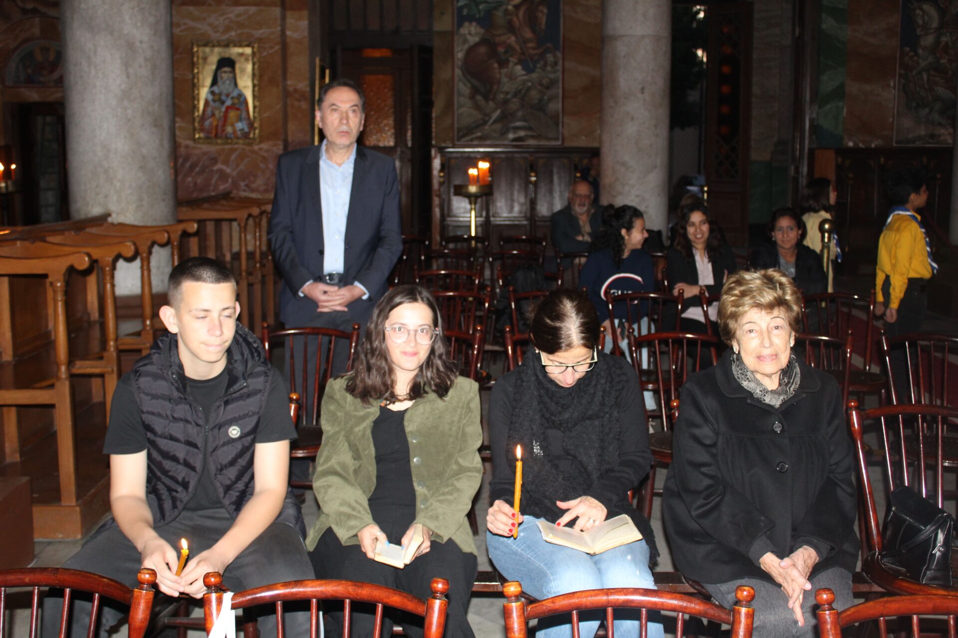 Στην Ιερά Μονή του Αγίου Σάββα του Ηγιασμένου, ο Σεβασμιότατος Μητροπολίτης Ταμιάθεως κ. Γερμανός, με την στήριξη των μαθητών της Πατριαρχικής Σχολής και του ψάλτη και εκπαιδευτικού Δημήτρη Στογιάννη, προσέδωσε ιδιαίτερο τόνο στο τελετουργικό της απεικόνισης του Θείου Δράματος. Με την μεγαλοπρέπεια που χαρακτηρίζει τη φωνή του, ο Σεβασμιότατος κ. Γερμανός δημιούργησε ξεχωριστή συγκίνηση και δέος στους πιστούς καθώς τον είδαν στο αχνό τρεμάμενο φως των κεριών, να μεταφέρει τον Σταυρό του Μαρτυρίου του Ιησού.
