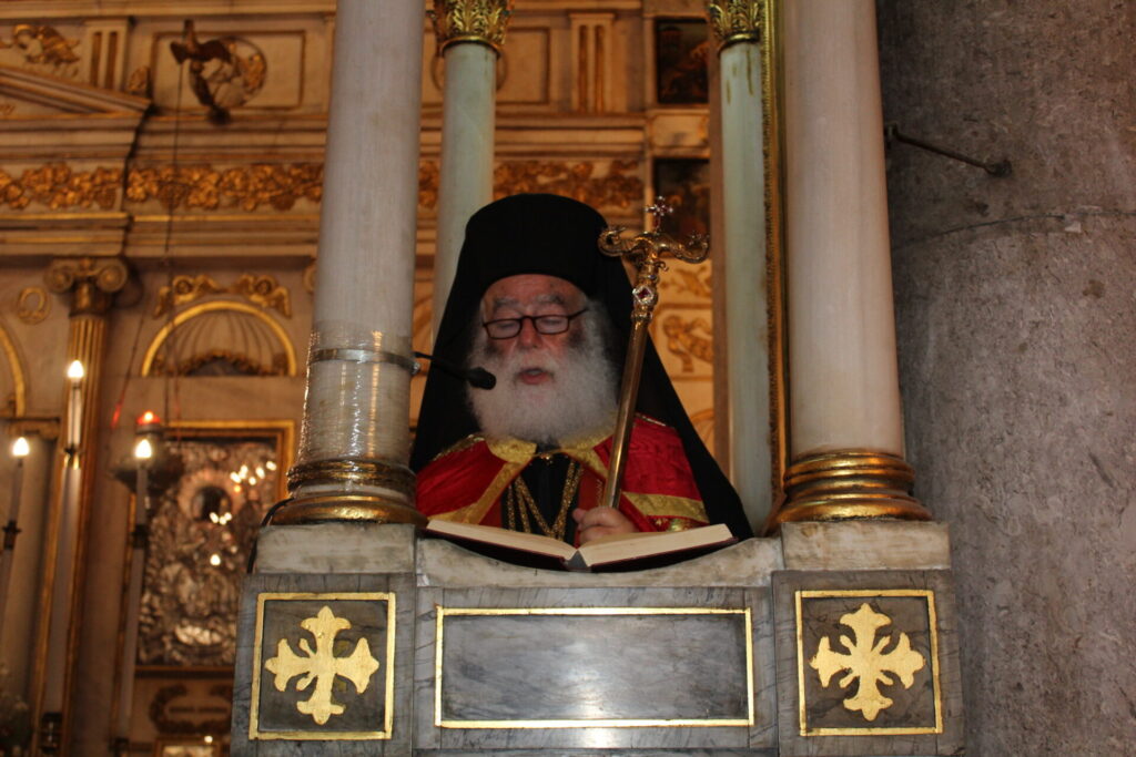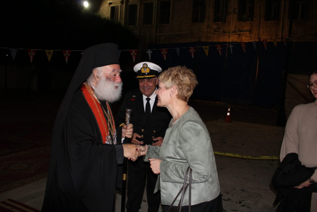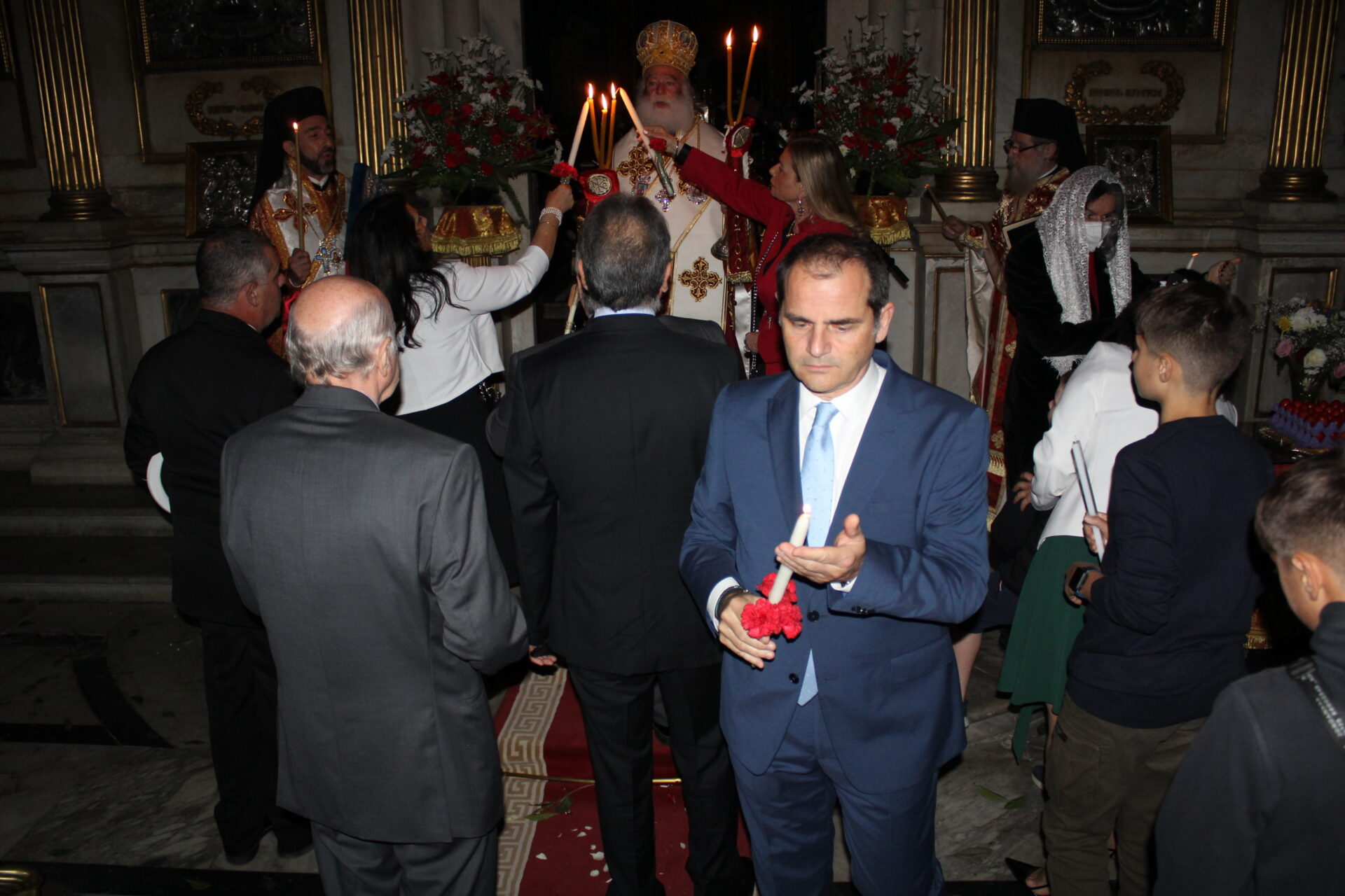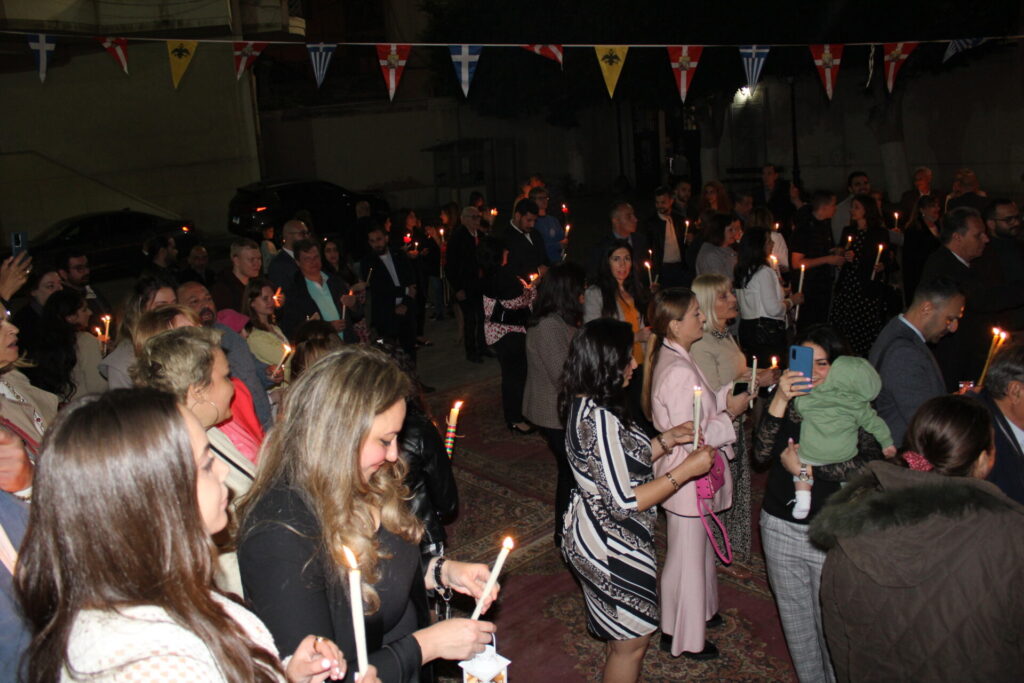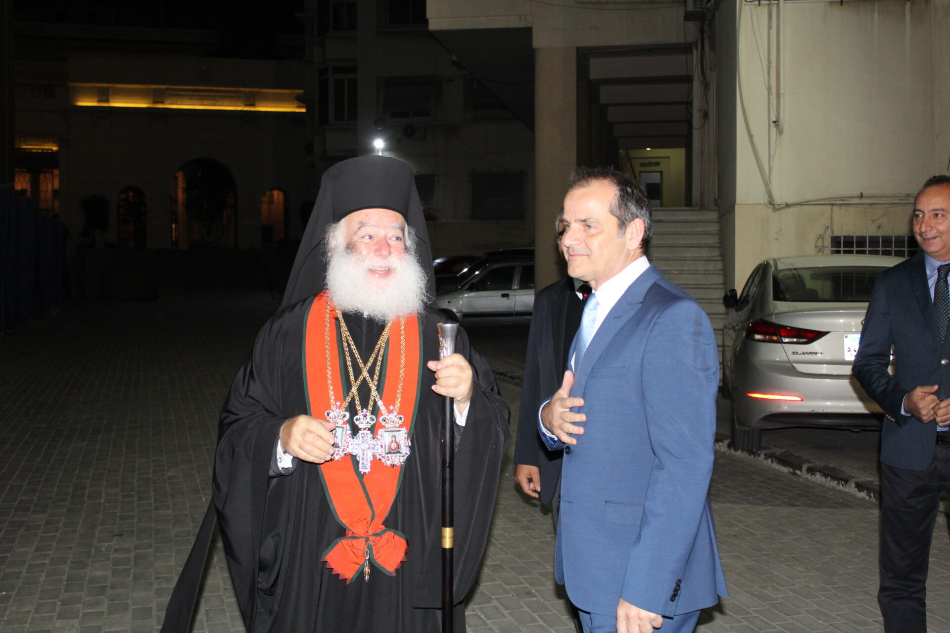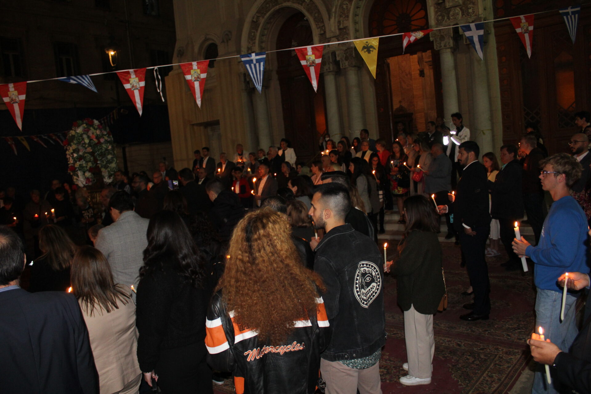 Η Α.Θ. Μακαριότης ο Πάπας και Πατριάρχης Αλεξανδρείας και πάσης Αφρικής κ.κ. Θεόδωρος Β΄, βγήκε από την Ωραία Πύλη, μια εικόνα κατανυκτική καθώς το Άγιο Φως φώτιζε ολάκερο το πρόσωπό του και απευθυνόμενος στους πιστούς αναφώνησε «Δεύτε Λάβετε Φως». Έδωσε το Άγιο Φως στο ποίμνιο που ανέμενε εναγωνίως τη στιγμή αυτή και συνοδευόμενος από τον Σεβασμιώτατο Μητροπολίτη Ναυκράτιδος κ. Παντελεήμων, Αρχιγραμματέα της Ιεράς Συνόδου και τον Πανοσιολογιότατο Αρχιμανδρίτη και Σχολάρχη της Ιερατικής Σχολής κ. Ισαάκ, ανέβηκαν μαζί στην εξέδρα που είχε στηθεί όπως κάθε χρόνο στον προαύλιο χώρο. Ο Μακαριώτατος πλαισιωμένος από τον Γενικό Πρόξενο – Πρέσβυ, κ. Αθανάσιο Κοτσιώνη, τον Πρόεδρο της Ελληνικής Κοινότητας Αλεξανδρείας κ. Ανδρέα Βαφειάδη, τον Πλοίαρχο και Σύνδεσμο του Πολεμικού Ναυτικού κ. Κωνσταντίνο Βαρουξή, τον Α΄ Αντιπρόεδρο της ΕΚΑ κ. Ιωάννη Παπαδόπουλο, την Πρόεδρο του ΕΝΟΑ και του Πτολεμαίου κα. Λιλίκα Θλιβίτου, τον Οικονομικό Επόπτη κ. Εμμανουήλ Τατάκη, τον Κοινοτικό Επίτροπο κ. Βασίλειο Ζουέ και τον κ. Ευάγγελο Νεαμονίτη Αναπληρωτή Οικονομικού Επόπτη, έψαλλαν το Χριστός Ανέστη με την προτροπή του Πατριάρχη μαζί με το πλήθος των Παροίκων της Αλεξάνδρειας. Παρόντες κάτω από την ΕΚΑ ο Γενικός Γραμματέας κ. Νικόλας Κατσιμπρής και ο διευθυντής κ. Γεώργιος Μπούλος. Παρούσα όπως πάντα, η σύζυγος του Γ. Προξένου – Πρέσβυ, κ. Αθανάσιου Κοτσιώνη, Ιωάννα, ενώ από την Κοινότητα Καίρου παρούσα ήταν η κα. Βίλλυ Πολίτη.