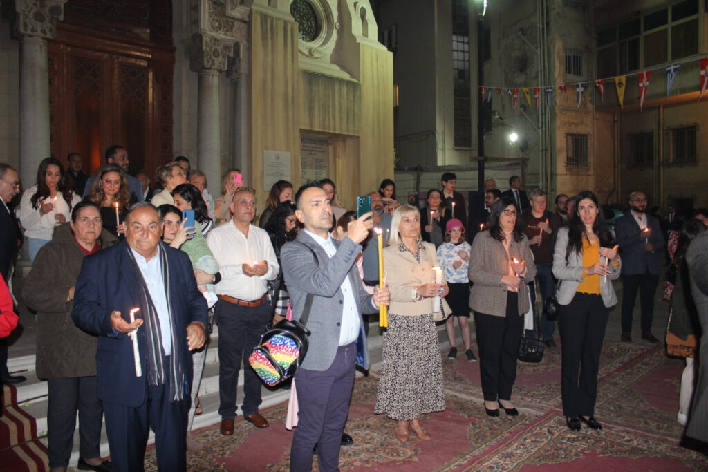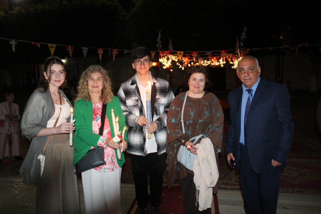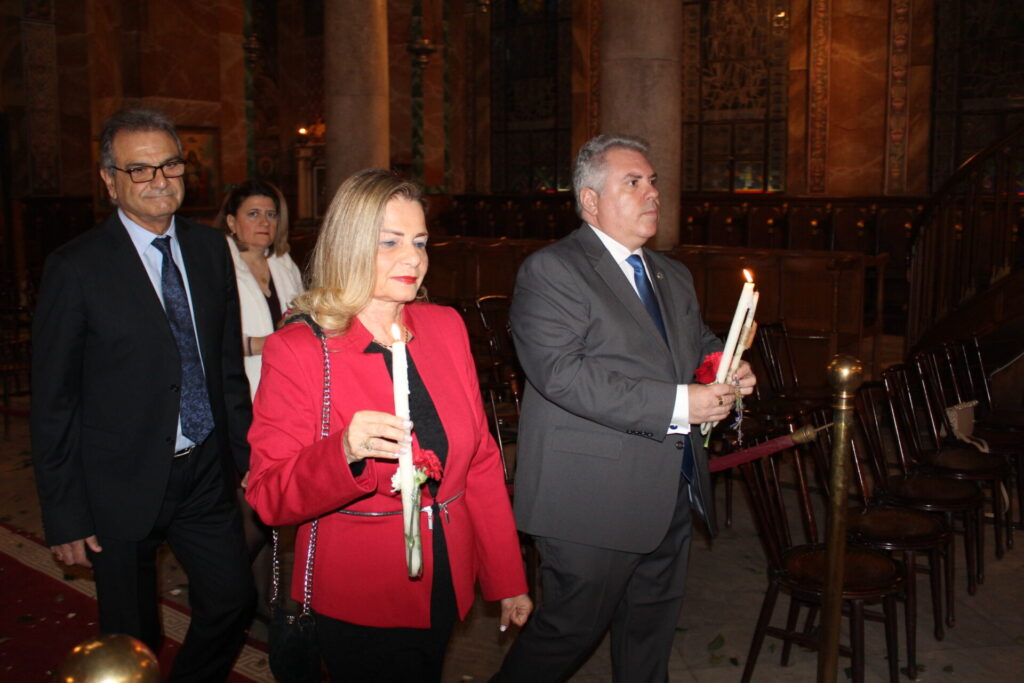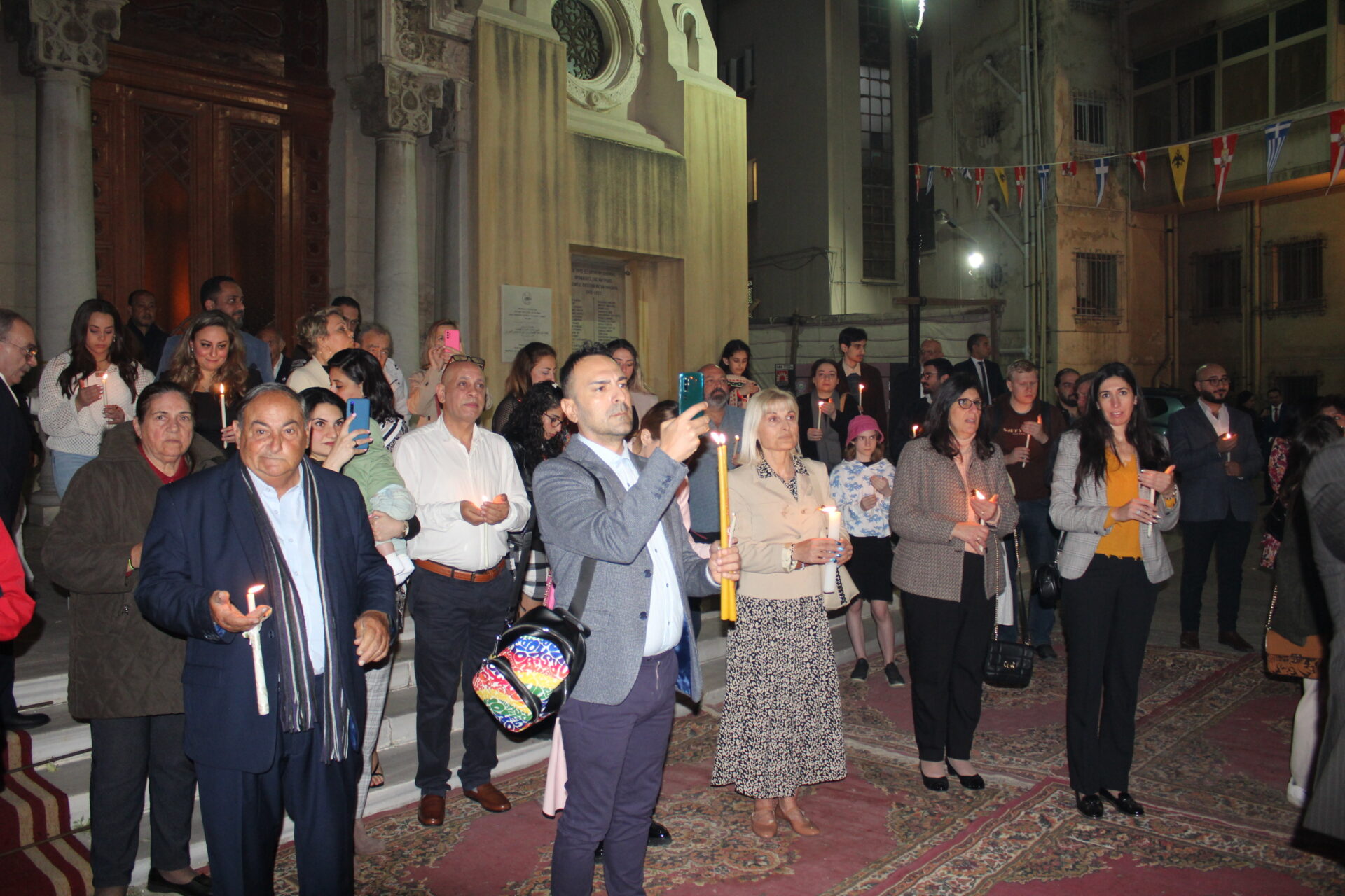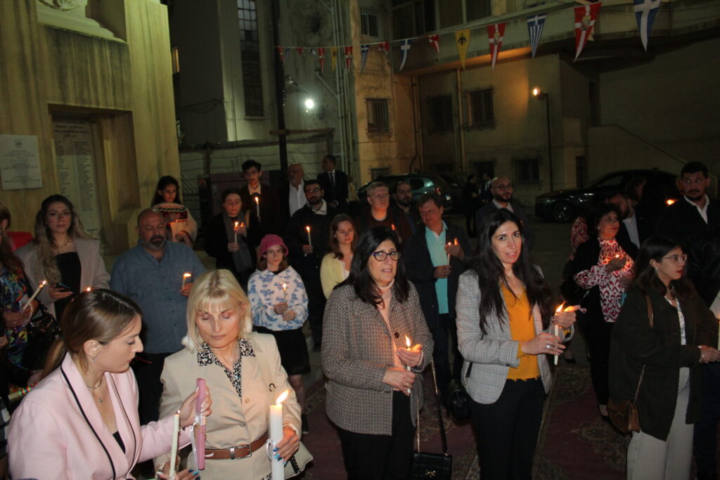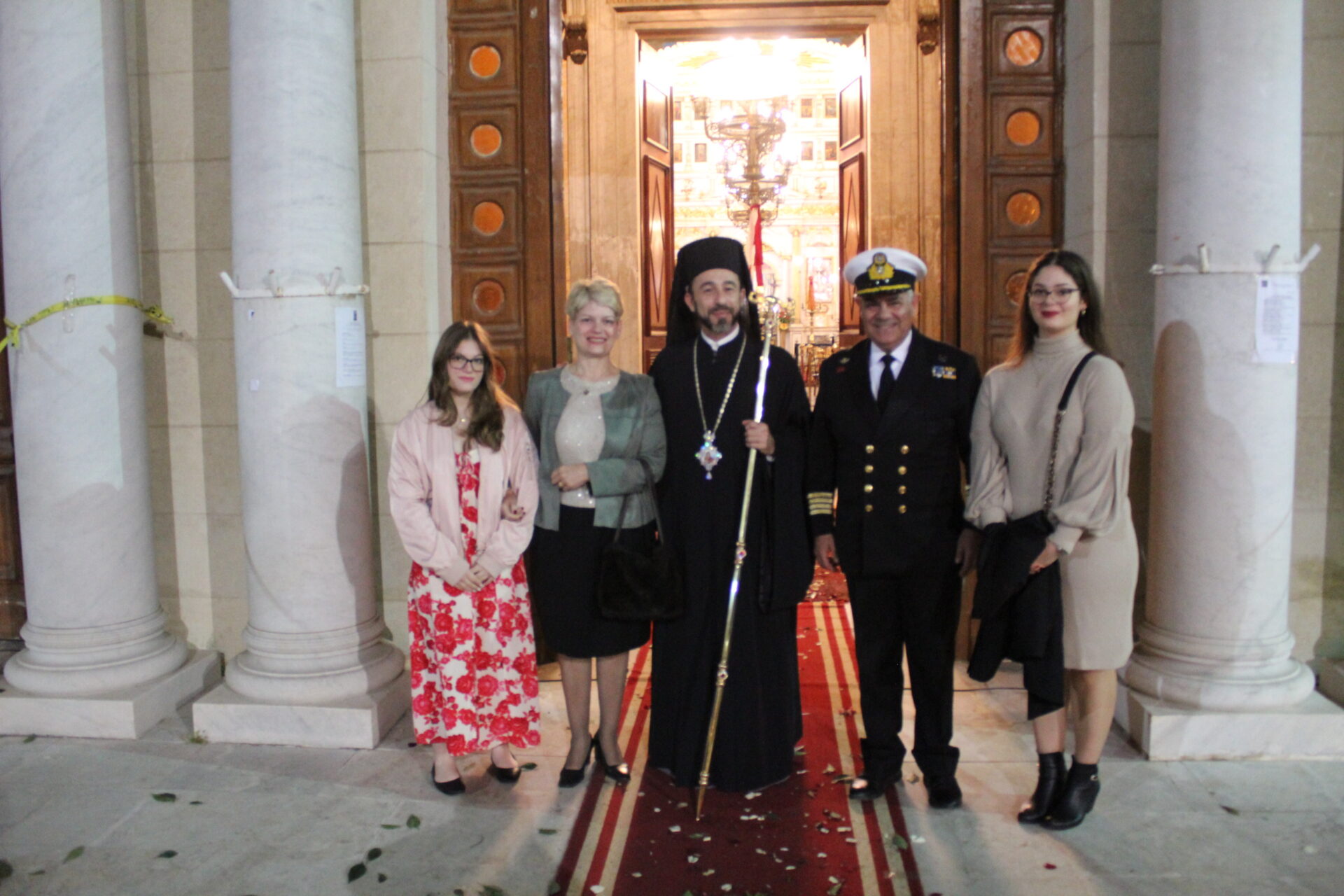 Η Α.Θ. Μακαριότης ο Πάπας και Πατριάρχης Αλεξανδρείας και πάσης Αφρικής κ.κ. Θεόδωρος Β΄, βγήκε από την Ωραία Πύλη, μια εικόνα κατανυκτική καθώς το Άγιο Φως φώτιζε ολάκερο το πρόσωπό του και απευθυνόμενος στους πιστούς αναφώνησε «Δεύτε Λάβετε Φως». Έδωσε το Άγιο Φως στο ποίμνιο που ανέμενε εναγωνίως τη στιγμή αυτή και συνοδευόμενος από τον Σεβασμιώτατο Μητροπολίτη Ναυκράτιδος κ. Παντελεήμων, Αρχιγραμματέα της Ιεράς Συνόδου και τον Πανοσιολογιότατο Αρχιμανδρίτη και Σχολάρχη της Ιερατικής Σχολής κ. Ισαάκ, ανέβηκαν μαζί στην εξέδρα που είχε στηθεί όπως κάθε χρόνο στον προαύλιο χώρο. Ο Μακαριώτατος πλαισιωμένος από τον Γενικό Πρόξενο – Πρέσβυ, κ. Αθανάσιο Κοτσιώνη, τον Πρόεδρο της Ελληνικής Κοινότητας Αλεξανδρείας κ. Ανδρέα Βαφειάδη, τον Πλοίαρχο και Σύνδεσμο του Πολεμικού Ναυτικού κ. Κωνσταντίνο Βαρουξή, τον Α΄ Αντιπρόεδρο της ΕΚΑ κ. Ιωάννη Παπαδόπουλο, την Πρόεδρο του ΕΝΟΑ και του Πτολεμαίου κα. Λιλίκα Θλιβίτου, τον Οικονομικό Επόπτη κ. Εμμανουήλ Τατάκη, τον Κοινοτικό Επίτροπο κ. Βασίλειο Ζουέ και τον κ. Ευάγγελο Νεαμονίτη Αναπληρωτή Οικονομικού Επόπτη, έψαλλαν το Χριστός Ανέστη με την προτροπή του Πατριάρχη μαζί με το πλήθος των Παροίκων της Αλεξάνδρειας. Παρόντες κάτω από την ΕΚΑ ο Γενικός Γραμματέας κ. Νικόλας Κατσιμπρής και ο διευθυντής κ. Γεώργιος Μπούλος. Παρούσα όπως πάντα, η σύζυγος του Γ. Προξένου – Πρέσβυ, κ. Αθανάσιου Κοτσιώνη, Ιωάννα, ενώ από την Κοινότητα Καίρου παρούσα ήταν η κα. Βίλλυ Πολίτη.