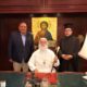 Ο Μακαριώτατος πήρε το λόγο και ευχαρίστησε τον Πρόεδρο κ. Βαφειάδη, για το πασχαλινό τραπέζι που προσέφερε η Κοινότητα σ αυτούς τους δύσκολους καιρούς κι ευλόγησε το γεύμα.  Συνεχάρη τους ομοτράπεζούς του, τον Πλοίαρχο  κ. Κωνσταντίνο Βαρουξή που συνοδευόταν από τη σύζυγό του Αγγελική,  την Πρόεδρο του ΕΝΟΑ και του Πτολεμαίου κα. Λιλίκα Θλιβίτου,  τον κ. Βασίλειο Ζουέ και τη σύζυγό του κα. Βίλλυ Πολίτη Γενική Γραμματέα της Κοινότητας Καίρου. Παρευρέθηκαν  επίσης ο Α΄ Αντιπρόεδρος κ. Ιωάννης Παπαδόπουλος με την οικογένειά του,  ο Οικονομικός Επόπτης κ. Εμμανουήλ Τατάκης με τη σύζυγό του, ο Αναπληρωτής Οικονομικού Επόπτη κ. Ευάγγελος Νεαμονίτης και ο διευθυντής κ. Γεώργιος Μπούλος με τη σύζυγό του Αλίν.