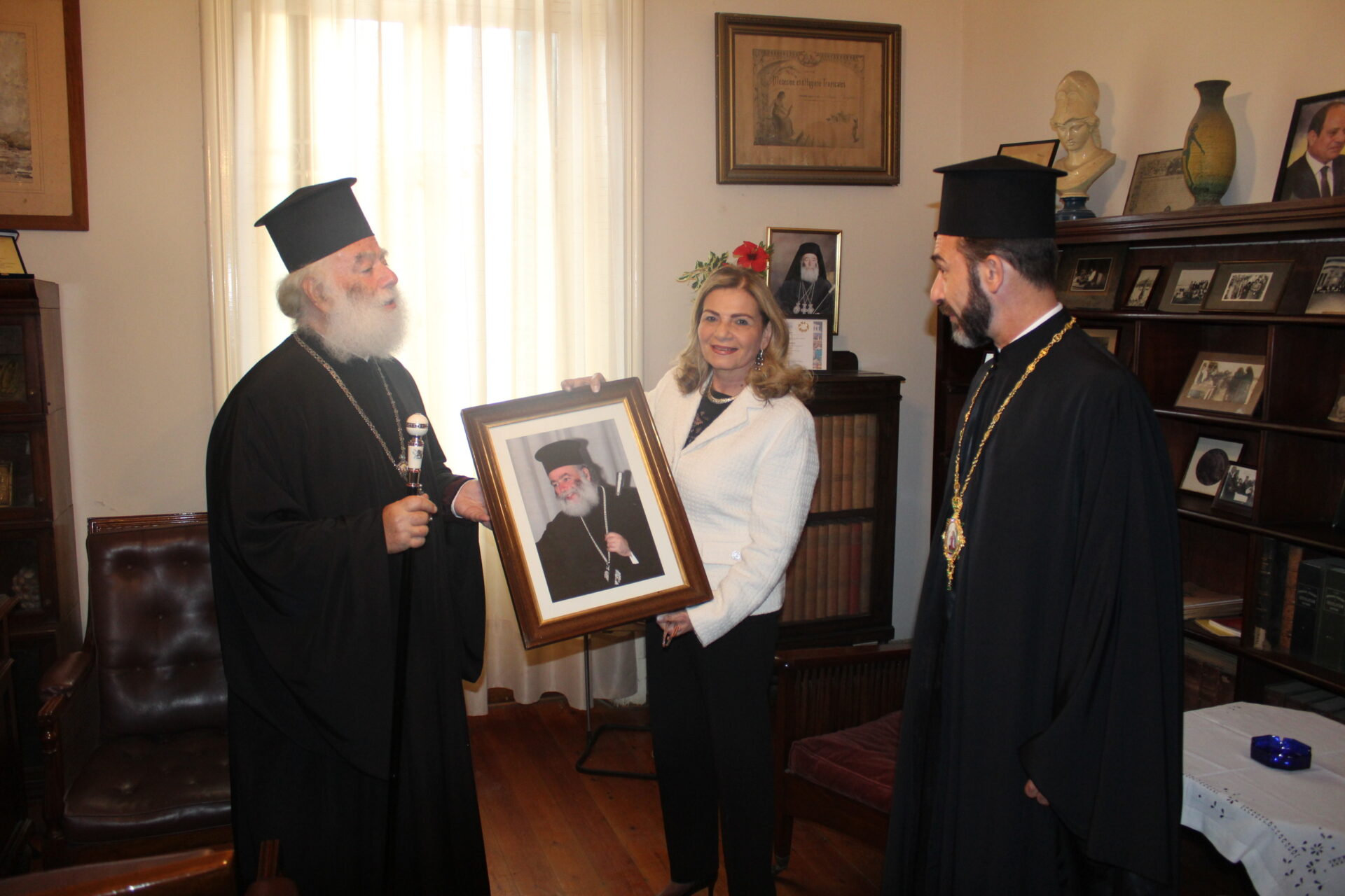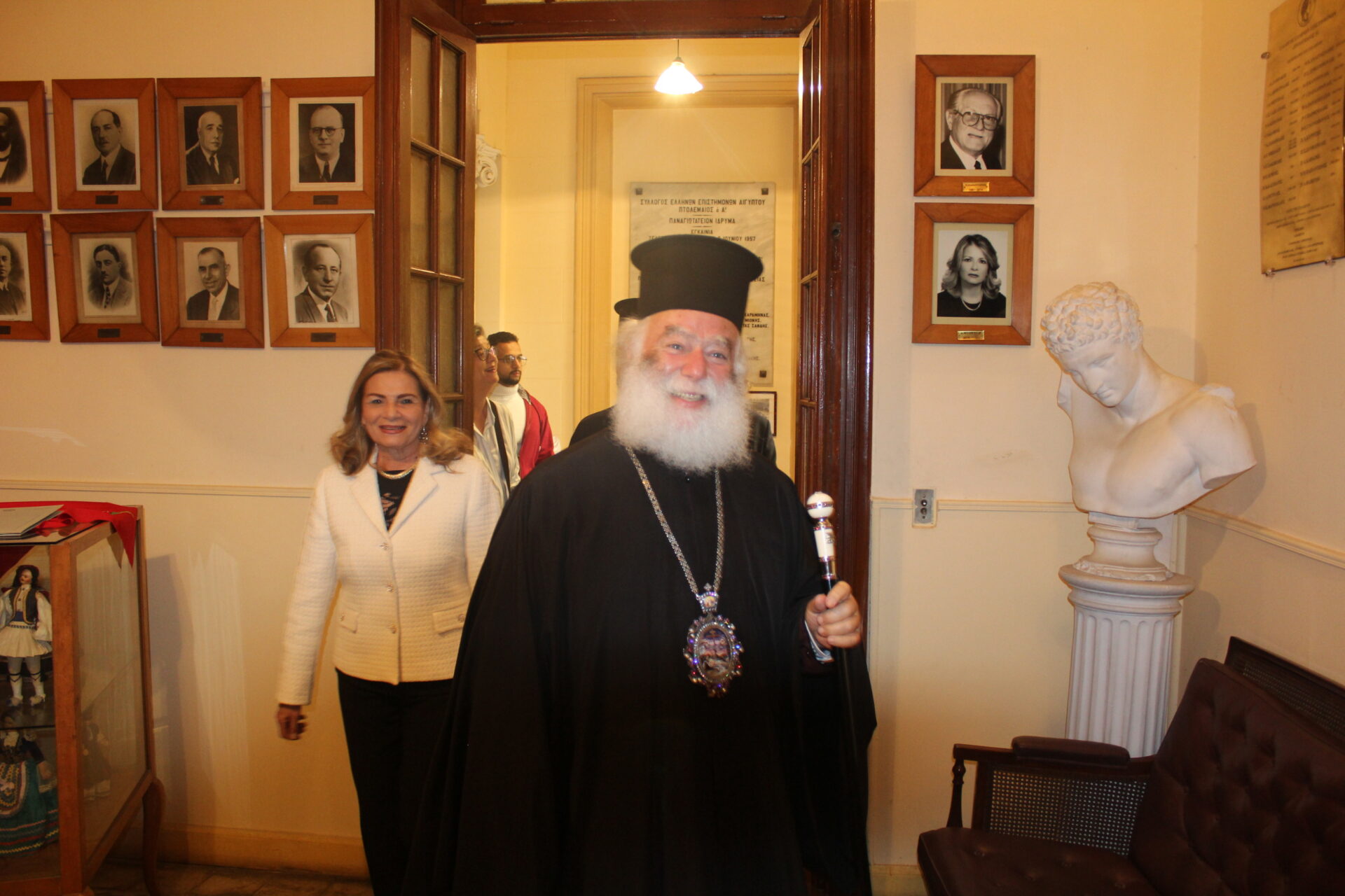 Τον Πατριάρχη Αλεξανδρείας Θεόδωρο Β΄ συνόδεψαν ο Πανοσιολογιότατος Αρχιμανδρίτης κ. Ισαάκ, Σχολάρχης της Ιερατικής Σχολής, μαζί με τον Αιδεσιμολογιώτατο Πρωτοπρεσβύτερο π. Πάνος Γαζή, που συνάμα είναι και διδάσκαλος στο Τοσιτσαίο γαλουχώντας τους μαθητές στη γνώση και τις αξίες του Ανθρωπισμού.