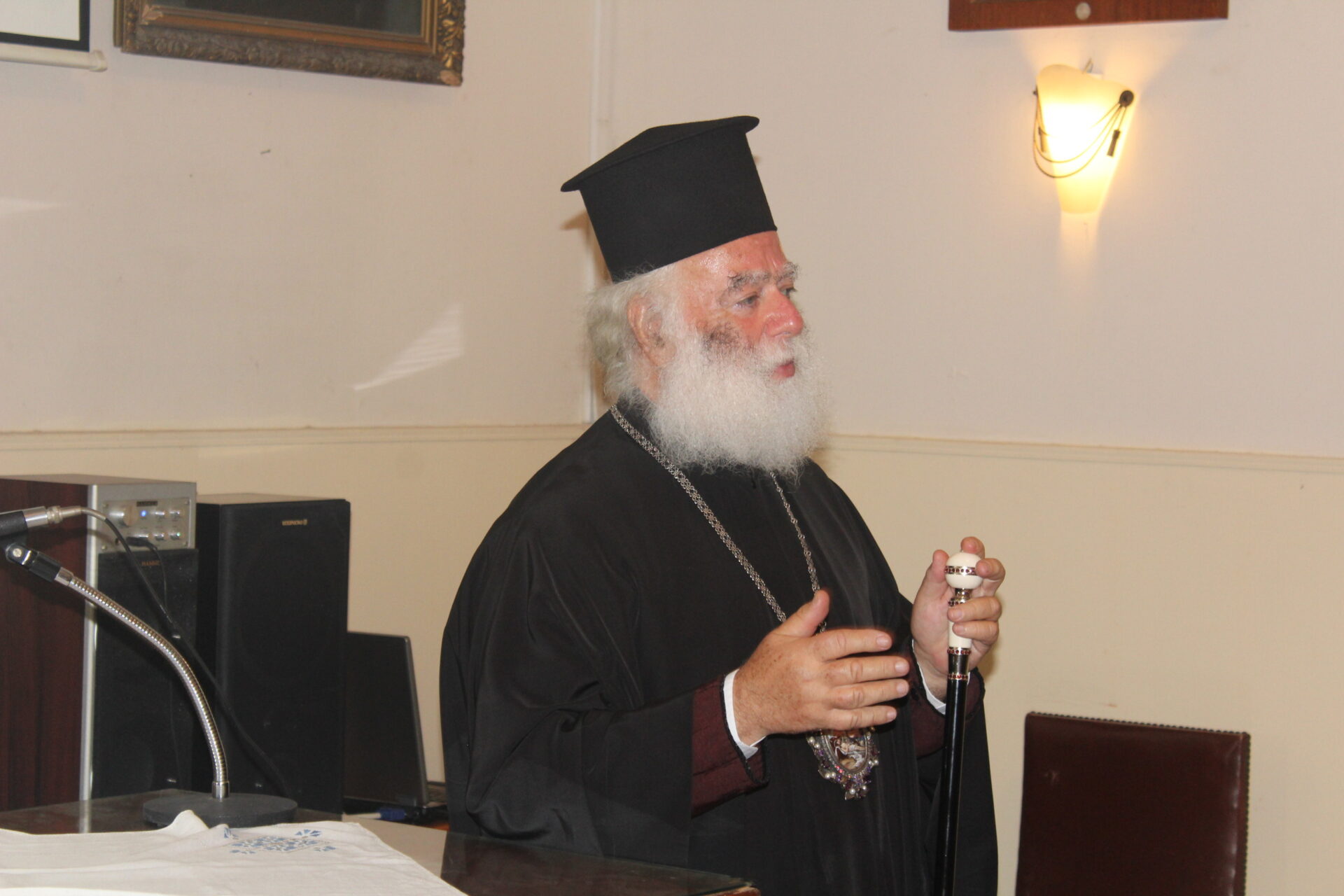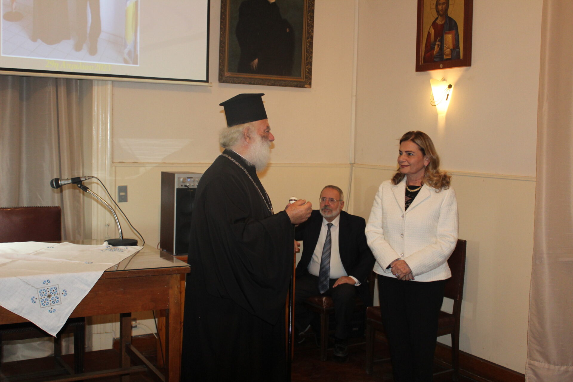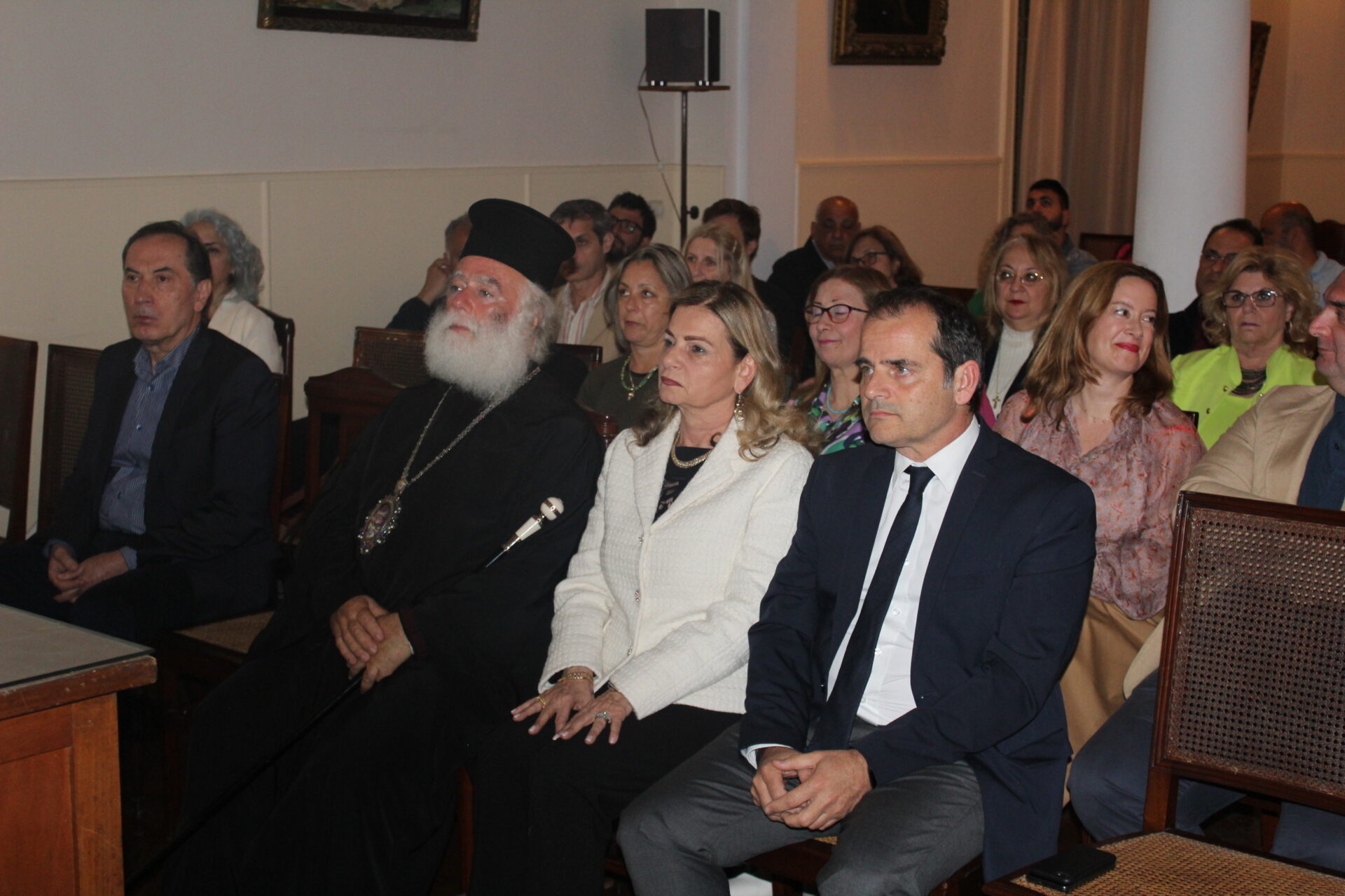 Έκλεισε την ωραία πνευματική σύναξη ο Μακαριώτατος επαινώντας τον ομιλητή για το εύρος της σκέψης του, την τεκμηριωμένη ανάλυση και την γενικότερη ομιλία του.