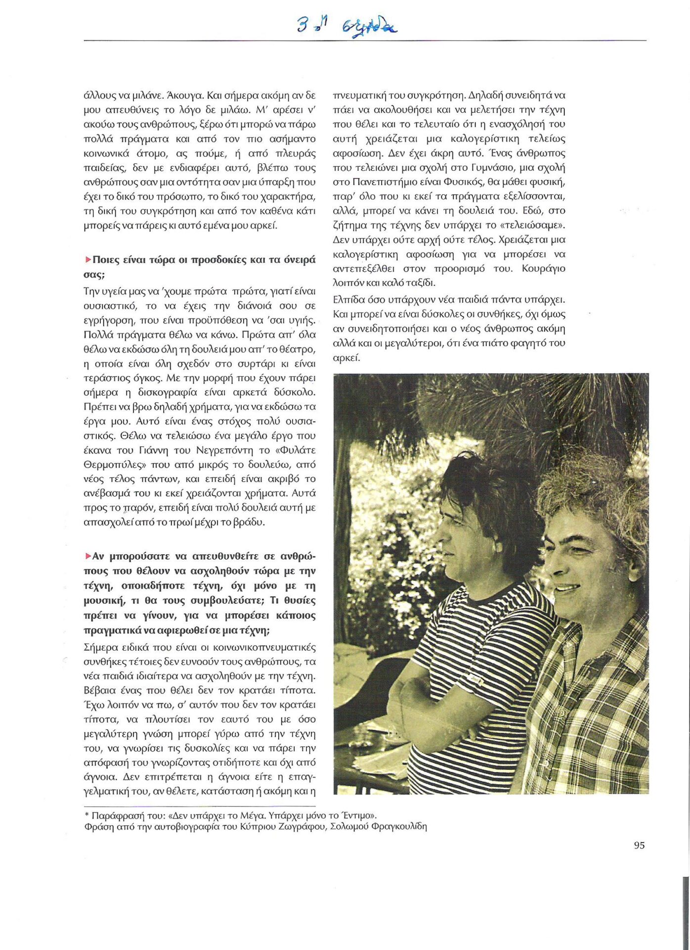 Παρόμοιο μάθημα ζωής πήρα και από τον Χατζιδάκι, μα αργότερα θα σας μιλήσω γι αυτό.
