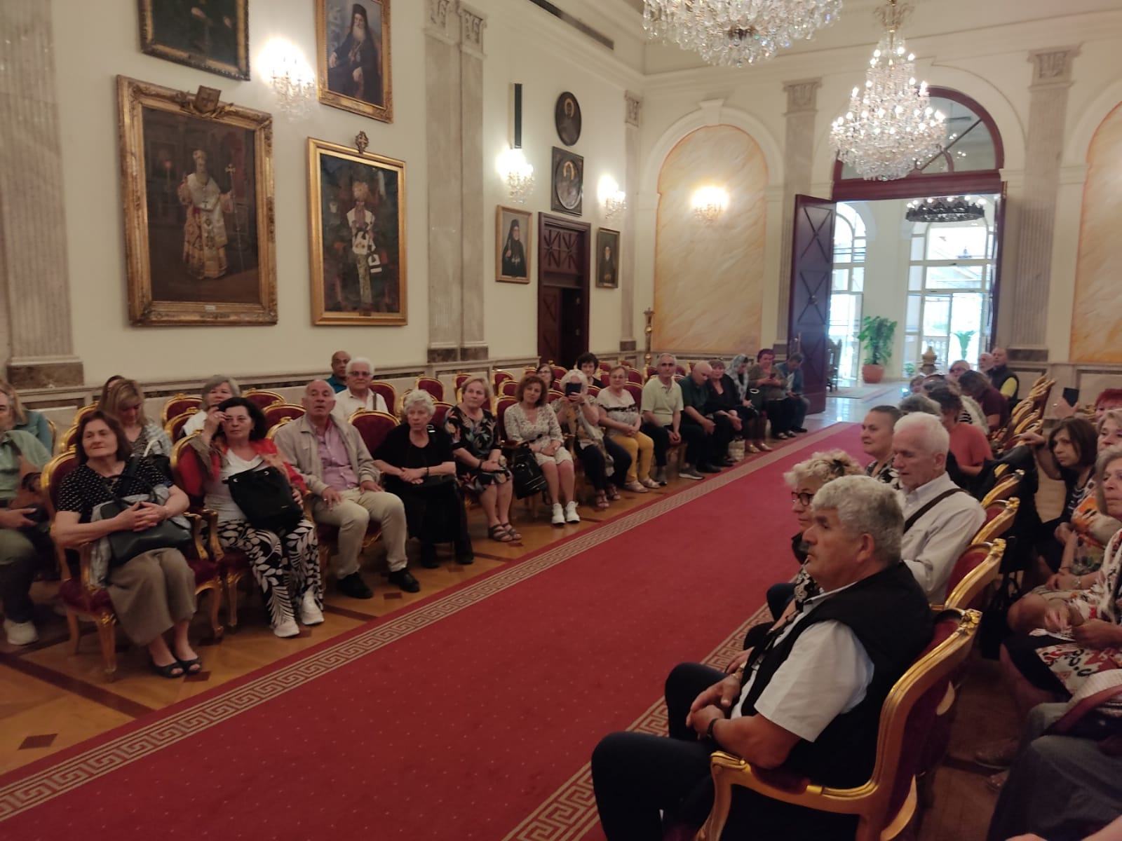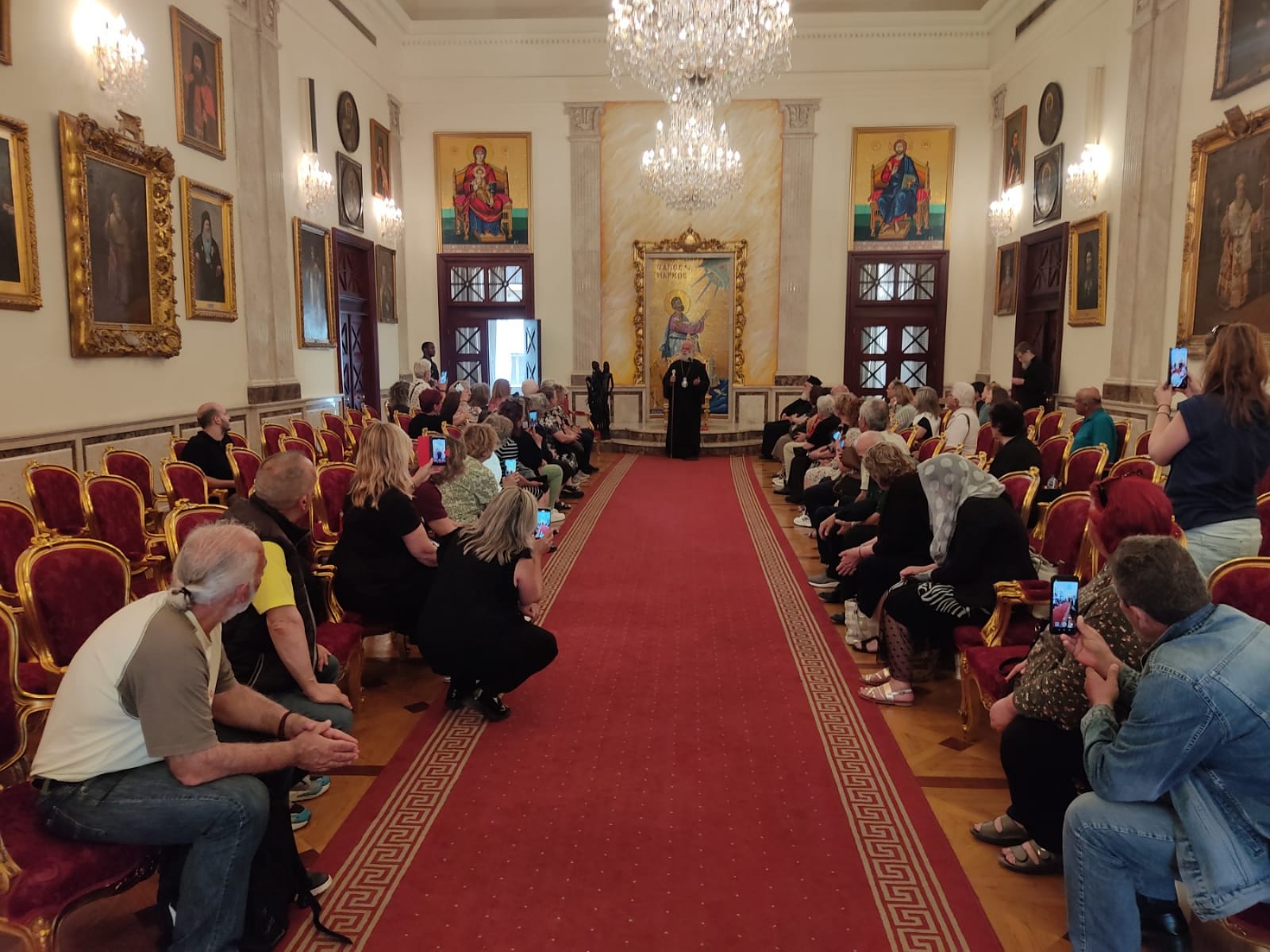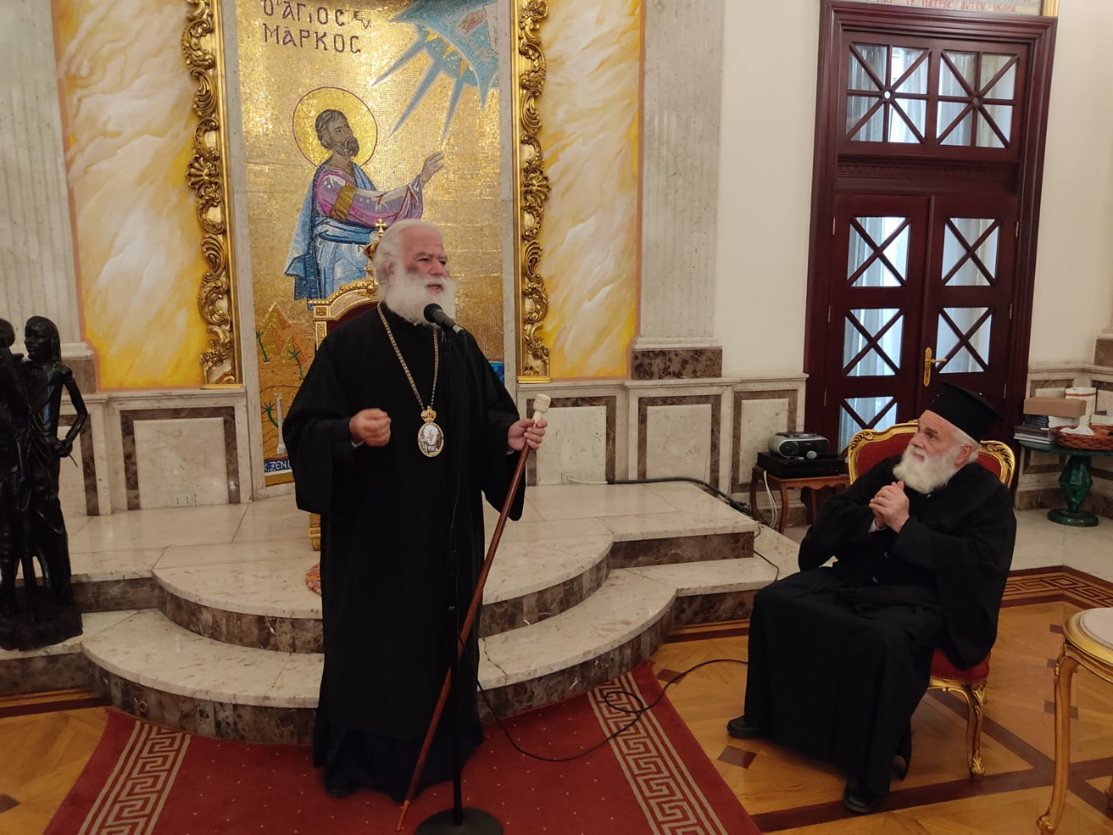Κι όταν εισήλθε εντός της περίοπτης αιθούσης των Τιμών, ο Προκαθήμενος του Αλεξανδρινού Θρόνου ψάλλοντας το «Χριστός Ανέστη», άπαντες τον συνόδευσαν όρθιοι σαν μια χορωδία που καθοδηγείτο απ’ τον μαέστρο της, θαρρείς και είχαν προβάρει τη σκηνή πάμπολλες φορές.