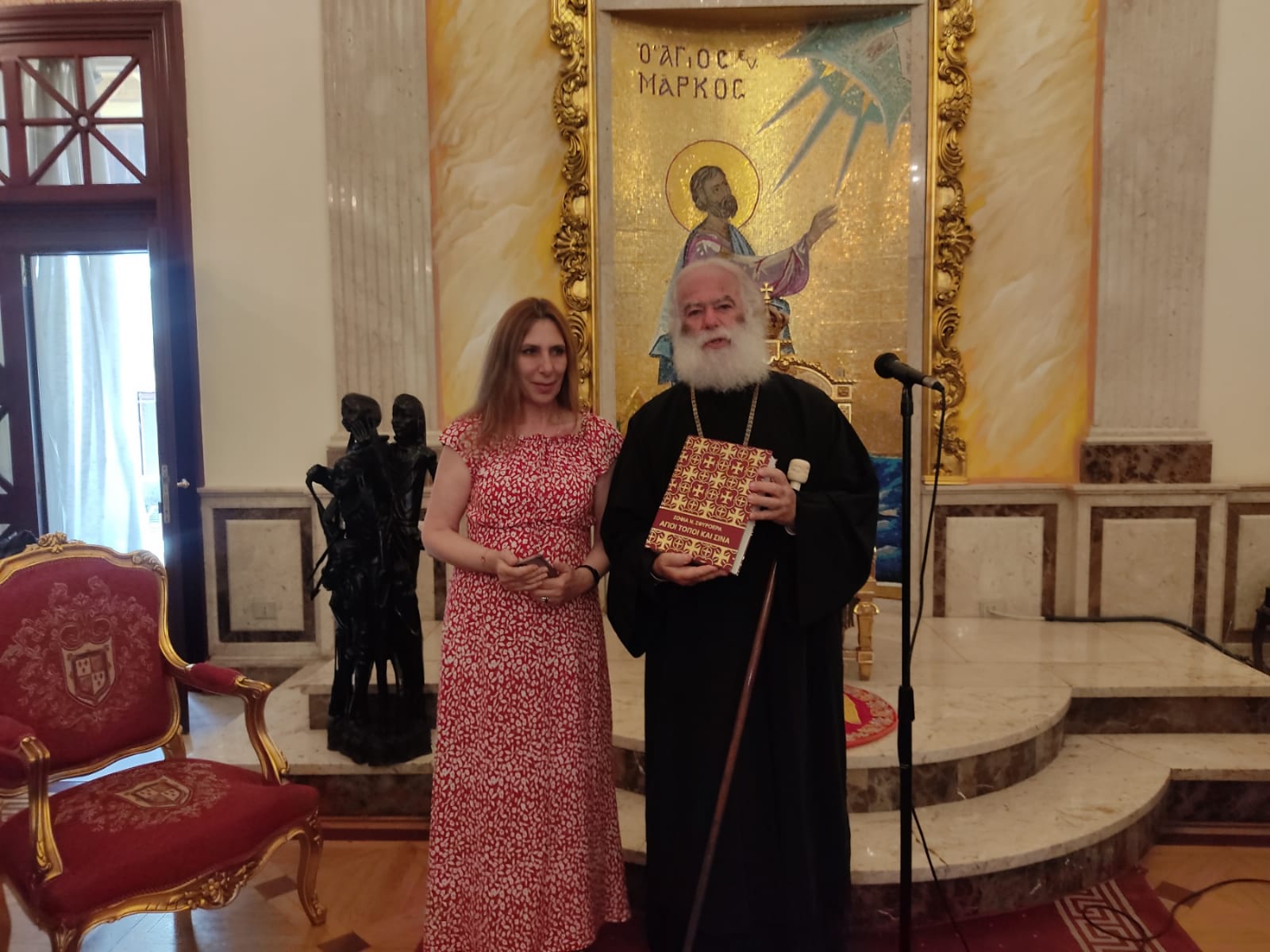 Ακολούθως η επικεφαλής των Ηπειρωτών επισκεπτών, συγγραφέας κα. Σοφία Σφυρόερα, προσέφερε στον Πατριάρχη Θεόδωρο Β΄ το βιβλίο της με τον τίτλο «Άγιοι Τόποι και Σινά – Ιστορία και Προσκυνήματα», το οποίο προλογίζει ο Πατριάρχης Ιεροσολύμων κ. Θεόφιλος Γ΄.