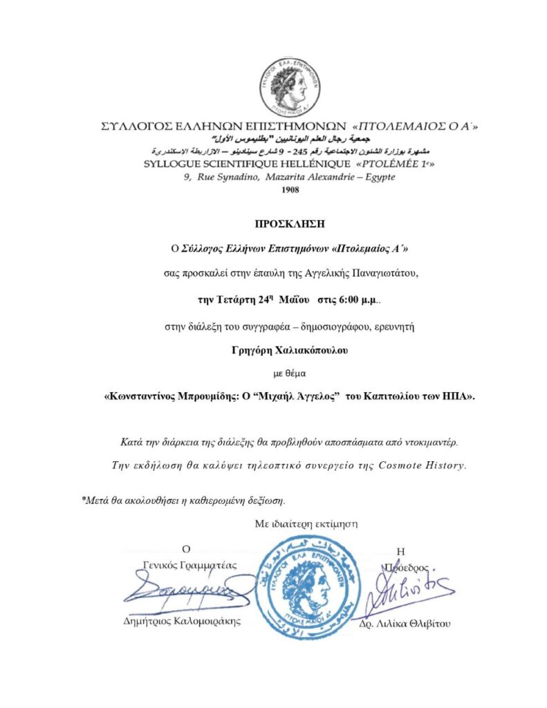 Ο συγγραφέας Γρηγόρης Χαλιακόπουλος έκανε γνωστό στους Έλληνες τον ανωτέρω καλλιτέχνη, Κωνσταντίνο Μπρουμίδη, μετά από 27 χρόνια, μέσω της συνεχούς αρθρογραφίας, των ρεπορτάζ, του ντοκιμαντέρ και των βιβλίων και των διαλέξεων.