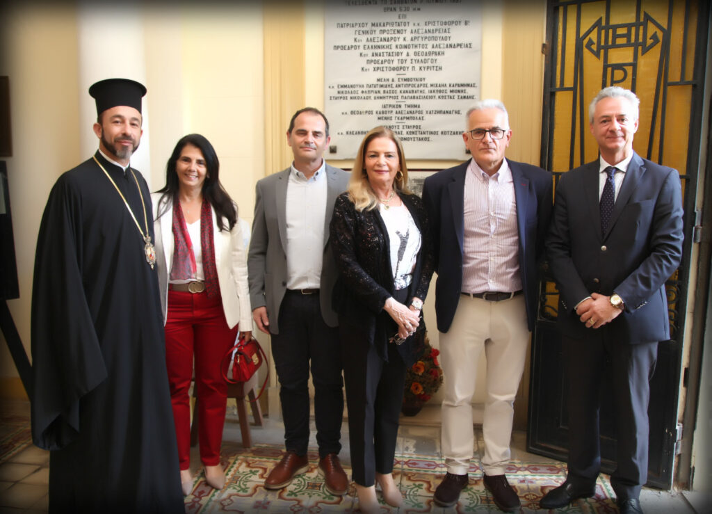 Από την  Ελληνική Κοινότητα Αλεξανδρείας,  στον Πρόεδρο κ. Ανδρέα Βαφειάδη, στον  Γενικό Γραμματέα κ. Νικόλαο Κατσιμπρή, στον πρώην Πρόεδρο και νυν Κοινοτικό Επίτροπο κ. Ιωάννη Σιόκα και στον διευθυντή κ. Γεώργιο Μπούλο.