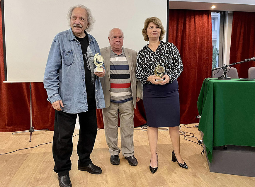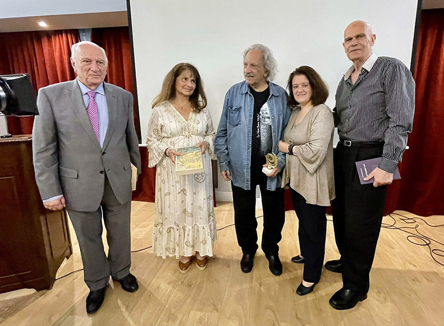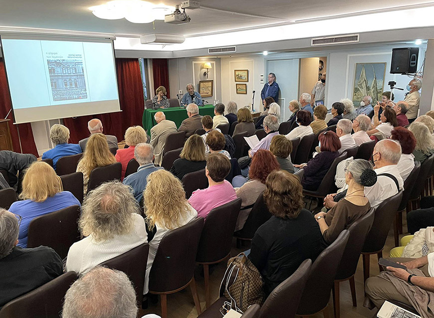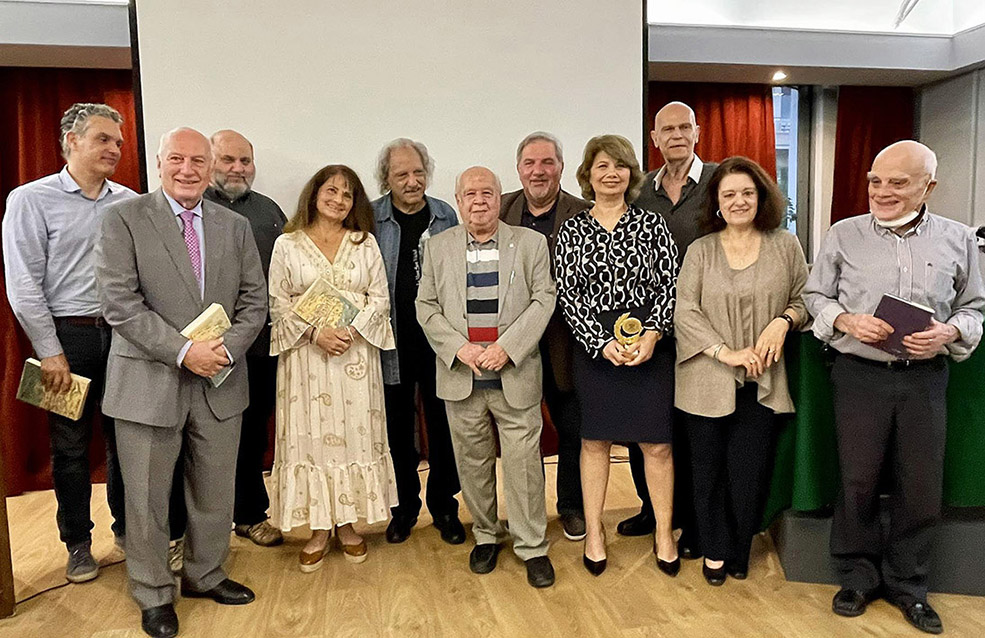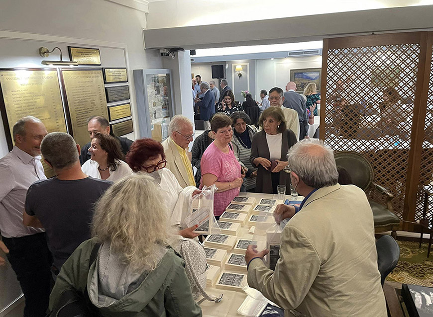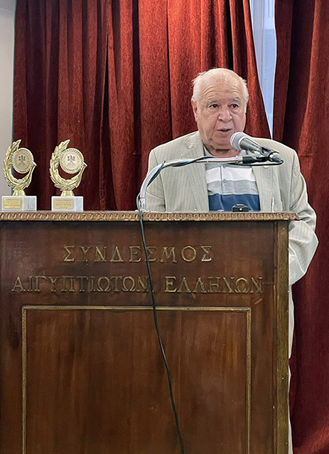Ακολούθησε η βράβευση των συγγραφέων από τον Πρόεδρο του Συνδέσμου Αιγυπτιωτών Ελλήνων κ. Κώστα Μιχαηλίδη με το βραβείο των συμπλήρωσης 90 χρόνων από την ίδρυση του Συνδέσμου και την επίδοση του βιβλίου “Η ιστορία της Αλεξάνδρειας” του Γ. Σταυρινού στους ομιλητές.