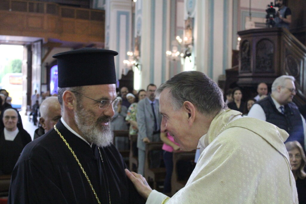 Στην Ευχαριστιακή Σύναξη της Ρ/Καθολικής Κοινότητος Αλεξανδρείας συμμετείχαν επίσης, οι Σεβασμιώτατοι Καρδινάλιος κ. Joseph W. Tobin, Αρχιεπίσκοπος Newark ΗΠΑ, κ.Claudio Gugerotti, Αρχιεπίσκοπος Ravello Ιταλίας και Πρόεδρος της Ποντιφικής Επιτροπής επί των Ανατολικών Εκκλησιών, κ. Nicolas Thevenin, Αποστολικός Νούντσιος στην Αίγυπτο, κ.Roland Minnerath, Αρχιεπίσκοπος Dijon Γαλλίας, κ. Bruno Forte, Αρχιεπίσκοπος Chieti Ιταλίας, κ. Brian Farrell, Επίσκοπος Abitine Ιταλίας και Γραμματέας της Ποντιφικής Επιτροπή για την Ενότητα των Χριστιανών, κ. Charles Morerod, Επίσκοπος Λωζάννης Ελβετίας, κ. Krzysztof Nitkiewicz, Επίσκοπος Sandomierz Πολωνίας και Επίσκοπος κ.Claudio, Αποστολικός Βικάριος Αιγύπτου.Παρέστησαν επίσης ο Σεβ. Μητροπολίτης Πισιδίας κ. Ιώβ, Συμπρόεδρος της διεθνούς Μικτής Θεολογικής Επιτροπής, οι εκπροσωπούντες την Ορθόδοξη Εκκλησία στον Θεολογικό διάλογο αρχιερείς, ιερείς και λαϊκοί θεολόγοι, οι Σεβ. Μητροπολίτες του Πατριαρχείου Αλεξανδρείας Γουϊνέας κ.Γεώργιος, Ναυκράτιδος κ. Παντελεήμων και Πηλουσίου κ. Νάρκισσος, εκπρόσωποι άλλων χριστιανικών δογμάτων και πλήθος πιστών.