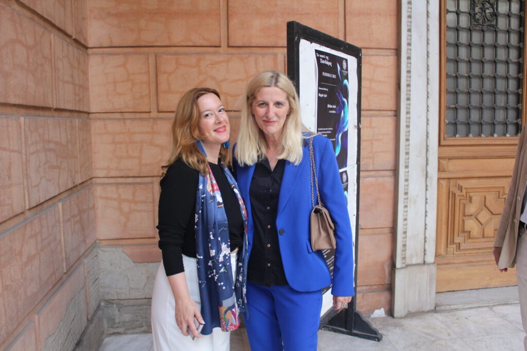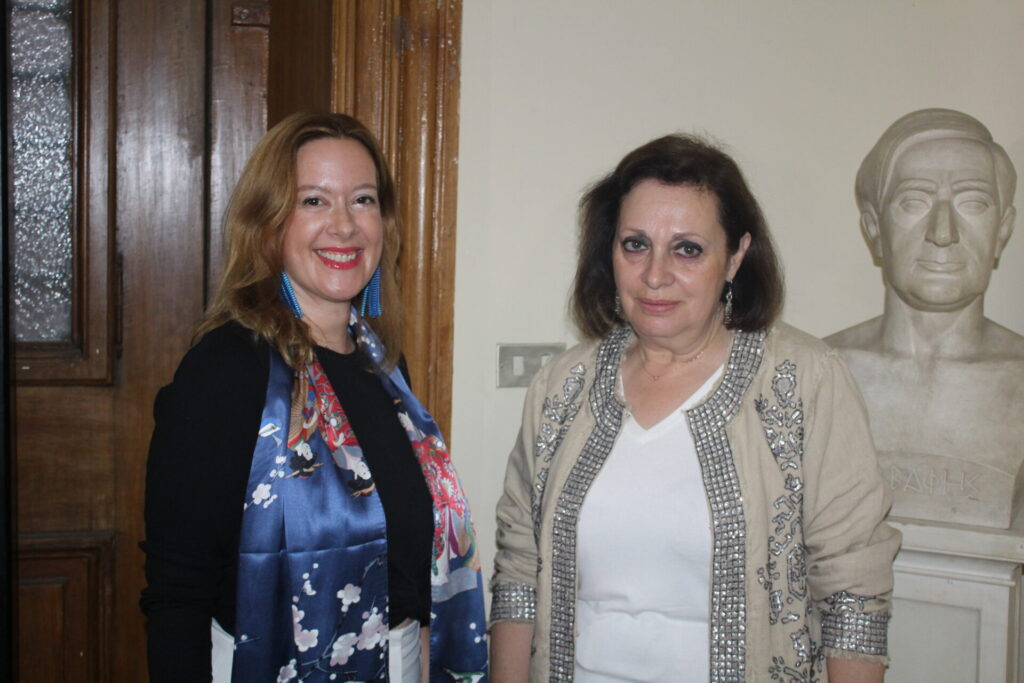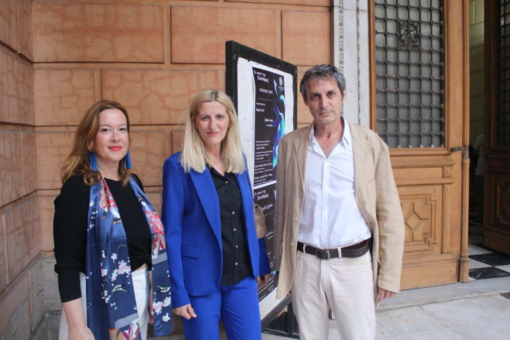 Η διευθύντρια του Ίδρυματος Ελληνικού Πολιτισμού κα. Σταυρούλα Σπανούδη, μίλησε για το έργο της ζωγράφου Μιρχάν Αμίν και στη συνέχεια παρέδωσε την σκυτάλη στην τιμώμενη δημιουργό.