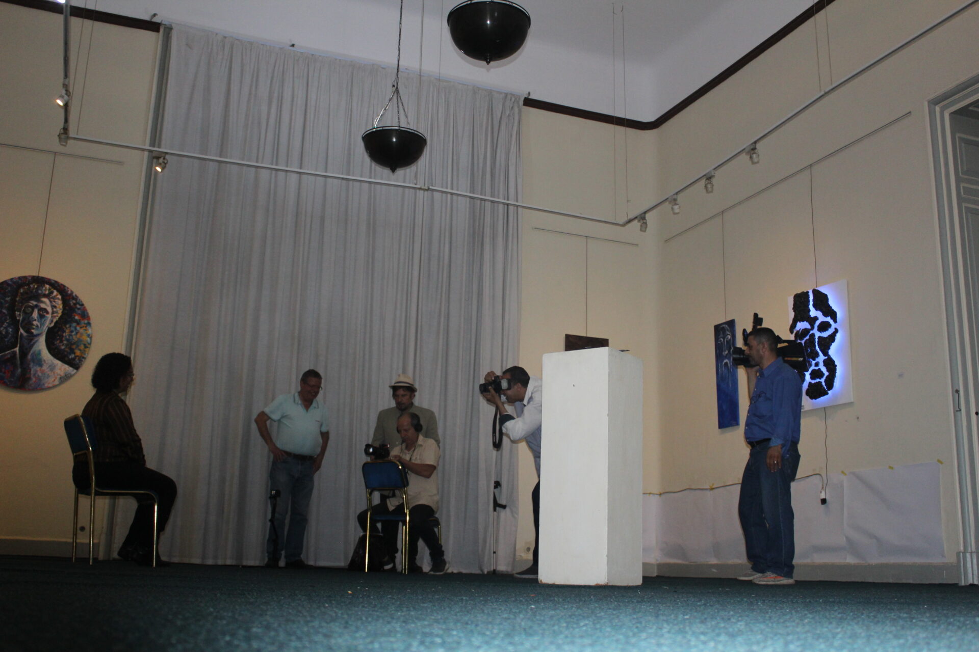 Στο τέλος της εκδήλωσης η δημιουργός κα. Μιχράν Αμίν και η διευθύντρια κα. Σταυρούλα Σπανούδη έδωσαν συνέντευξη στο κανάλι Cosmote History κλείνοντας με τον πλέον ευχάριστο τρόπο την βραδιά των εγκαινίων. Συνομιλώντας με την Αιγύπτια ζωγράφο μας δήλωσε μεταξύ άλλων τα εξής: “Αγαπώ την ελληνική μυθολογία και αυτή είναι η τρίτη μου Έκθεση. Θέλω να καταδείξω πόσο επηρέασε η ελληνική μυθολογία την τέχνη και όλους τους τομείς της ζωής, κυρίως στον κινηματογράφο. Άλλωστε πάνω σ αυτό το ζήτημα, έχω κάνει και το μεταπτυχιακό μου. Για μένα είναι πολύ σημαντική η παρουσία του κόσμου σήμερα και χαίρομαι ιδιαίτερα, γιατί είναι η πρώτη μου εμφάνιση μετά το ατύχημά μου. (χτυπήθηκε από μηχανή και ταλαιπωρείται ακόμη). Την ελληνική γλώσσα διδάχτηκα εδώ στο Ίδρυμα Ελληνικού Πολιτισμού και με βοήθησε ιδιαίτερα να κατανοήσω την μυθολογία και την ανωτέρω έρευνά μου. Ακόμα και μέσα από τα αρχαία ελληνικά που μπορεί να μην κατάλαβα καλά, μπόρεσα να εισπράξω αρκετή γνώση για να στηρίξω το εγχείρημά μου”