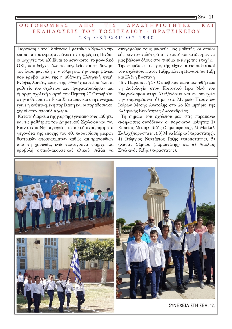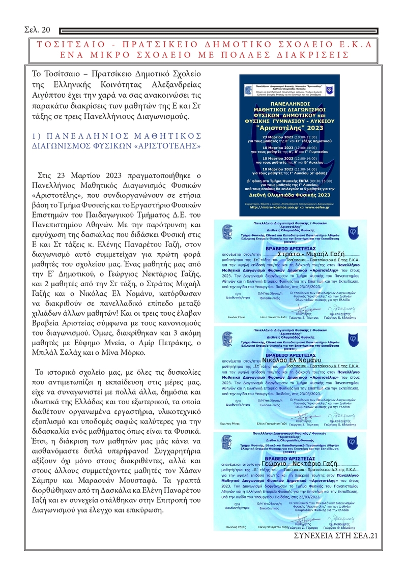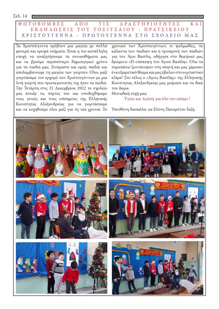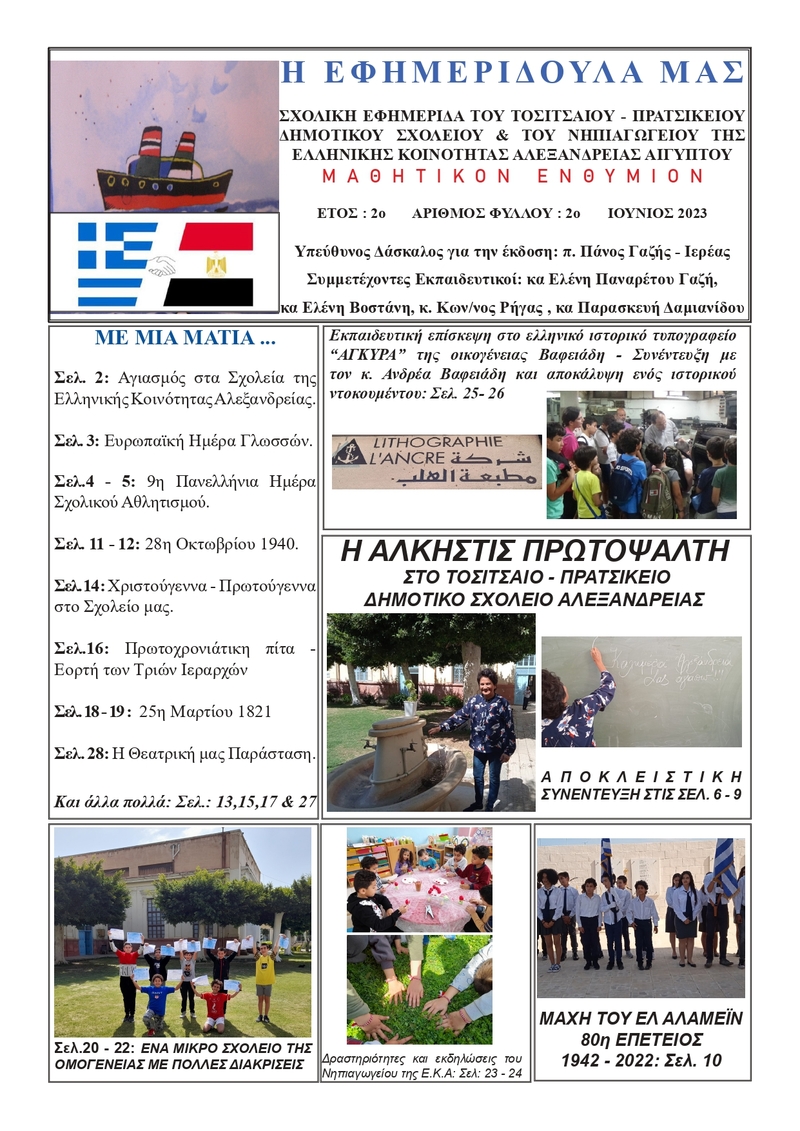 Το Τοσιτσαίο – Πρατσίκειο Δημοτικό Σχολείο της Ελληνικής Κοινότητας Αλεξανδρείας, εξέδωσε την «Εφημεριδούλα του».