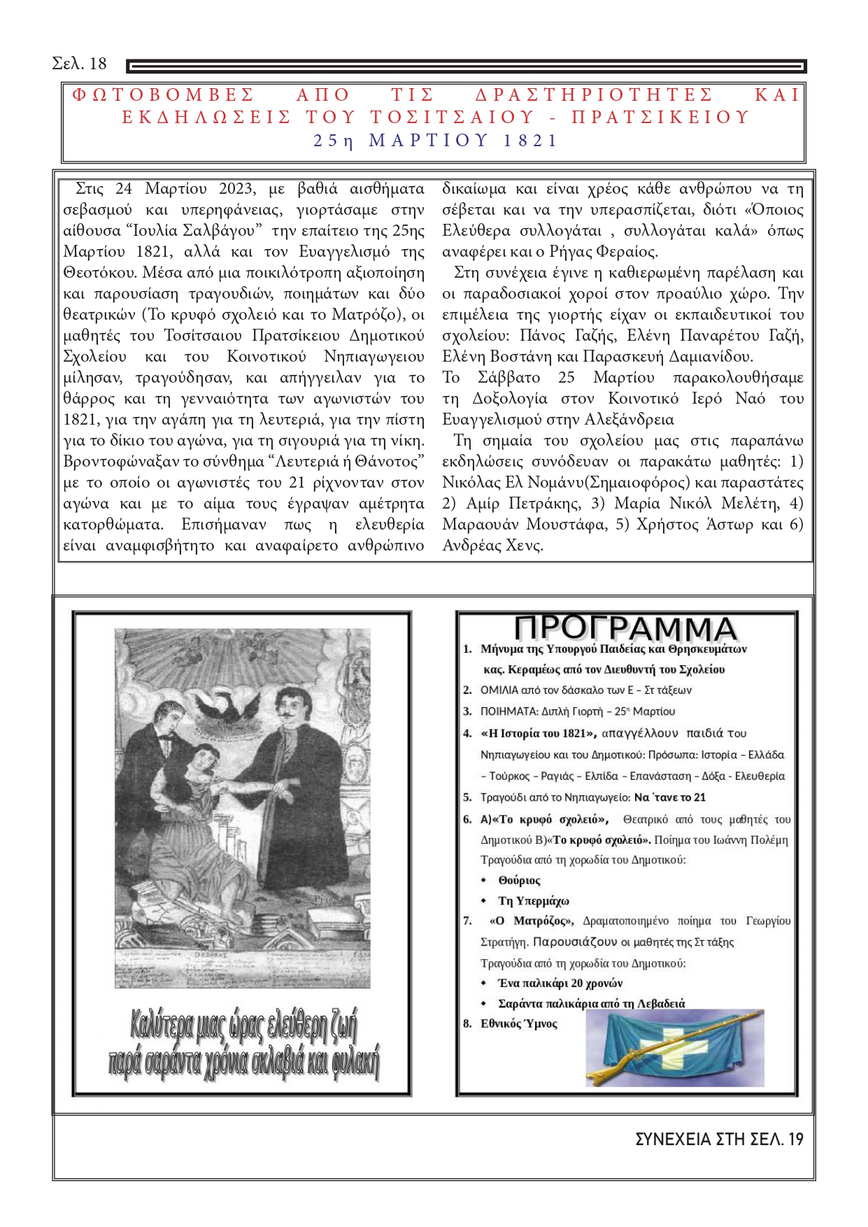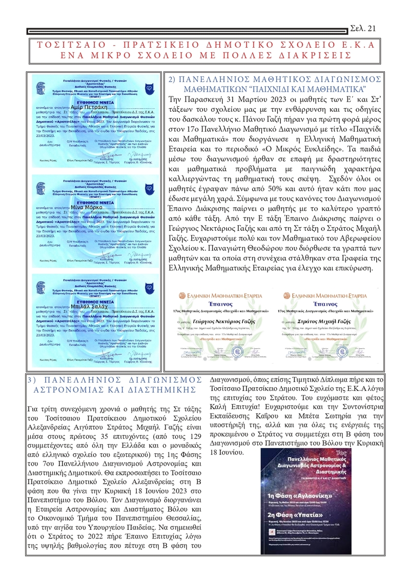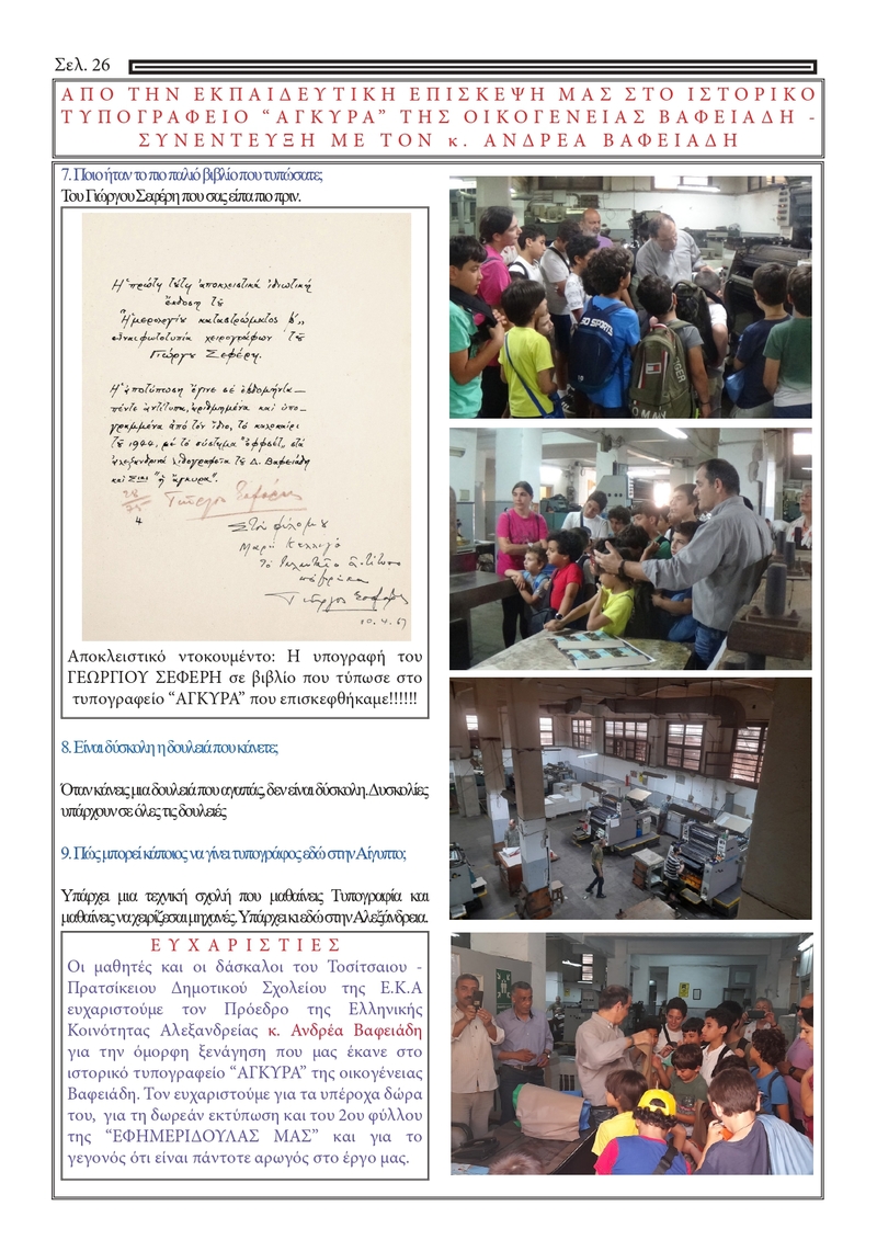 Το Τοσιτσαίο – Πρατσίκειο Δημοτικό Σχολείο της Ελληνικής Κοινότητας Αλεξανδρείας, εξέδωσε την «Εφημεριδούλα του».