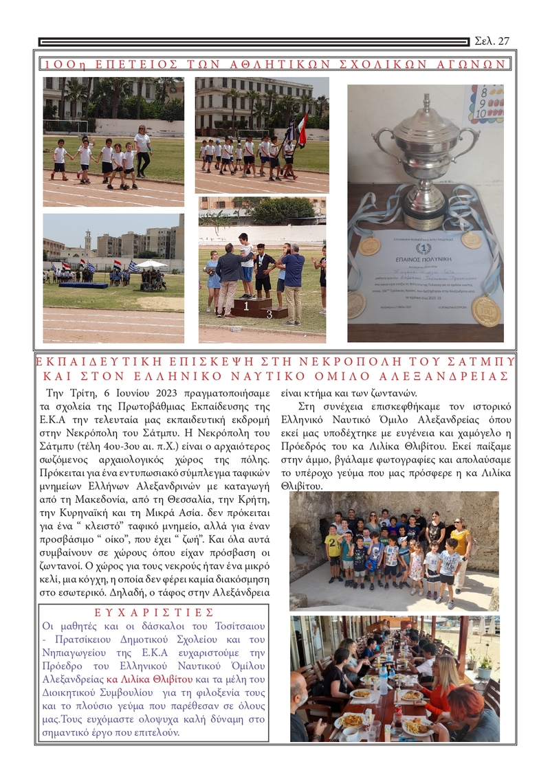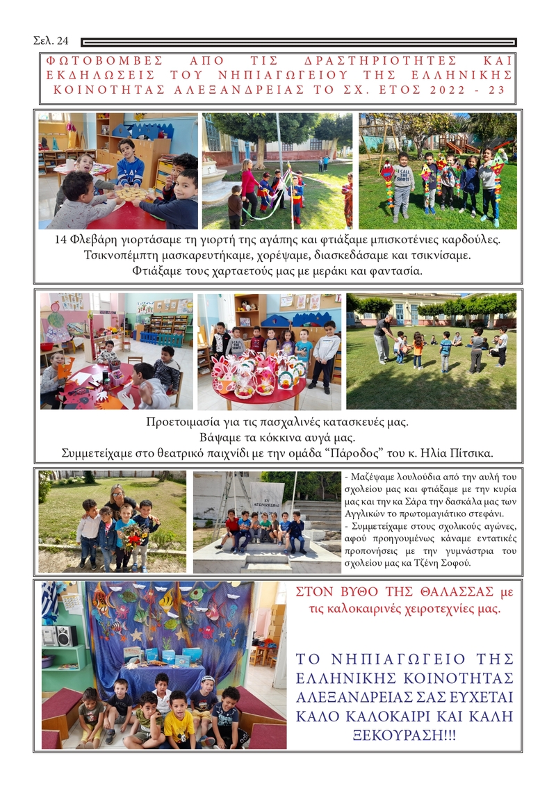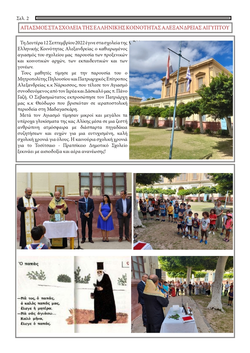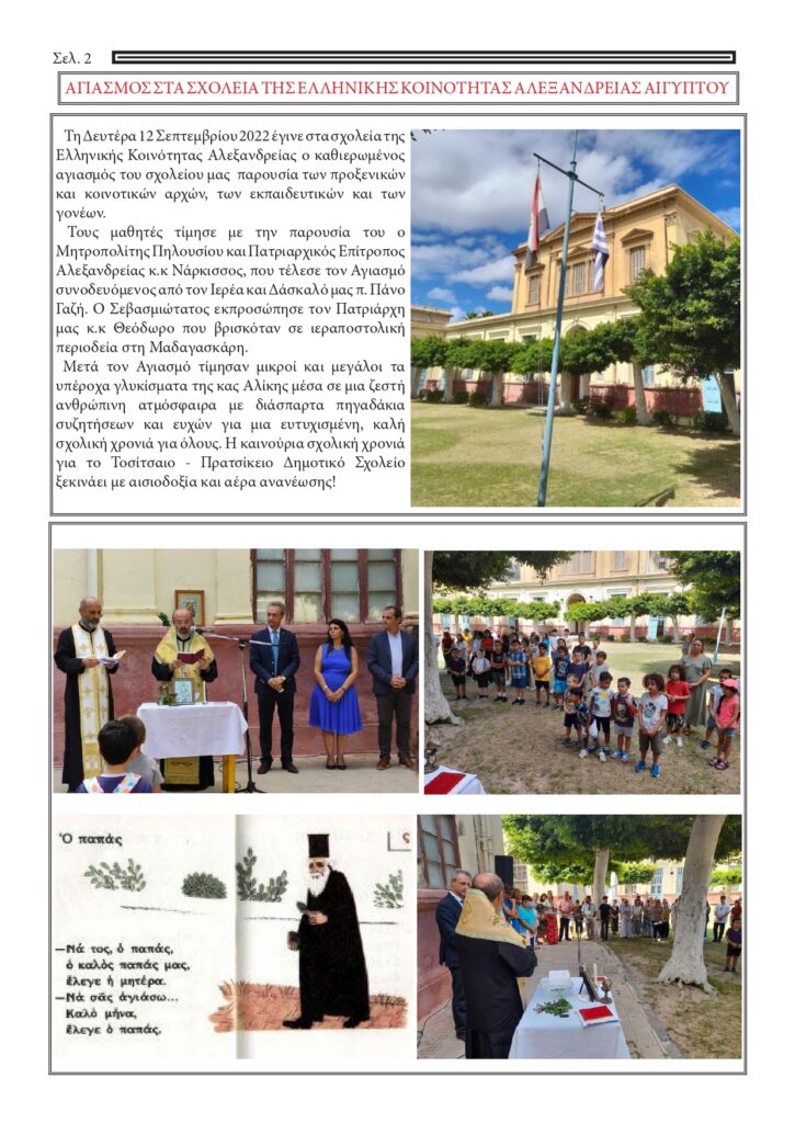 Η Ελληνική Κοινότητα Αλεξανδρείας συγχαίρει όλους τους συντελεστές αυτής της έκδοσης και τους εύχεται καλό καλοκαίρι και καλή συνέχεια στην εκδοτική τους προσπάθεια!