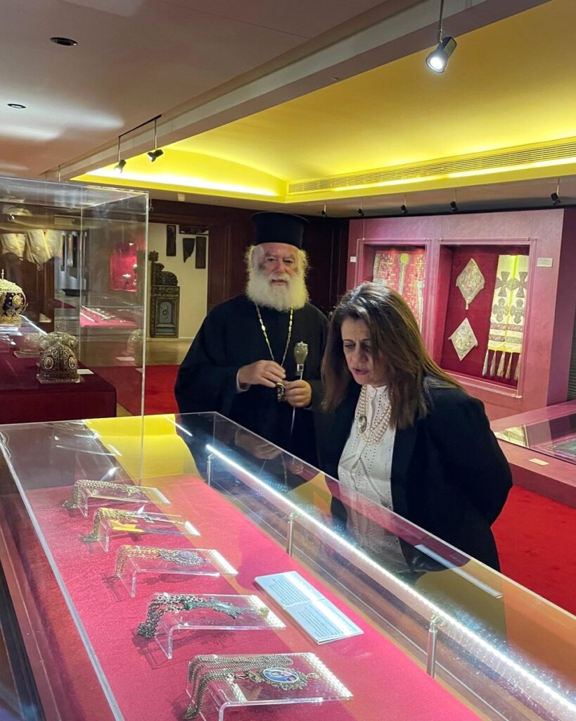 Επακολούθησε ανταλλαγή αναμνηστικών δώρων, καθώς και περιήγηση της Εξοχωτάτης κ. Ελ Γκέντι στους χώρους του Πατριαρχικού Μεγάρου από τον Μακαριώτατο.