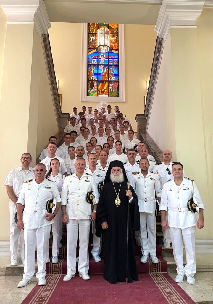 Επίσκεψη στο παλαίφατο Πατριαρχείο Αλεξανδρείας πραγματοποίησαν την Παρασκευή, 28η Ιουλίου 2023, ο κυβερνήτης, οι αξιωματικοί και το πλήρωμα του ελληνικού πολεμικού πλοίου Α/Γ «Σάμος», το οποίο κατέπλευσε στο λιμάνι της Αλεξάνδρειας στα πλαίσια του ετησίου καλοκαιρινού εκπαιδευτικού ταξιδιού των Δοκίμων της Σχολής Μονίμων Υπαξιωματικών Ναυτικού (ΣΜΥΝ).