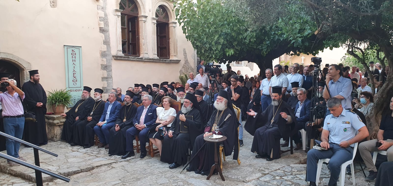 Ακολούθως ο Πατριάρχης Θεόδωρος τιμώντας τον Αρχιεπίσκοπο Κρήτης Ευγένιο του απένειμε τον Μεγαλόσταυρο του Αγίου Σάββα, ενώ παράλληλα δώρισε στον Ηγούμενο της Μονής την ηγουμενική ράβδο από ελεφαντόδοντο.