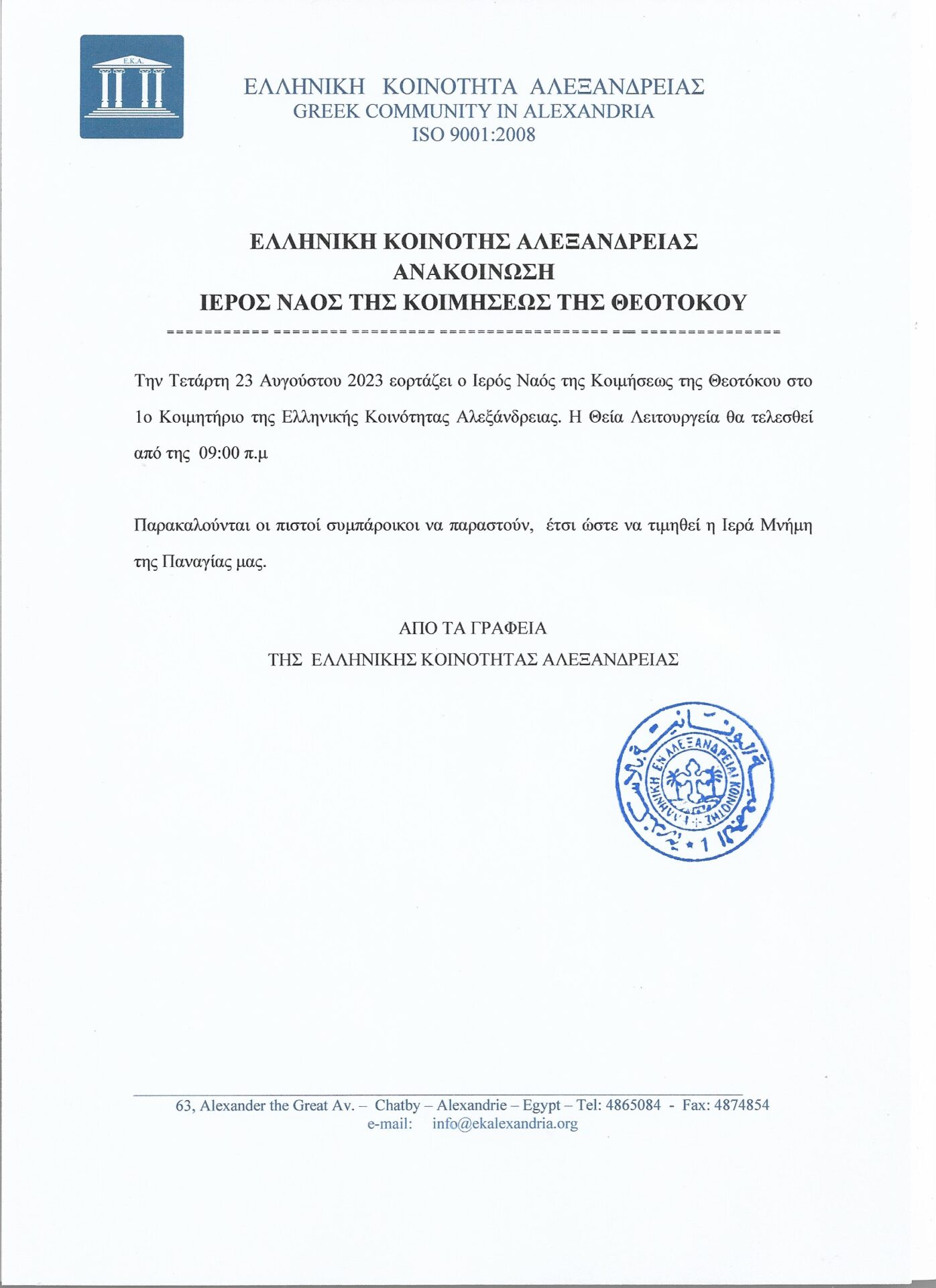 Λειτουργία στον Ιερό Ναό Κοιμήσεως Θεοτόκου