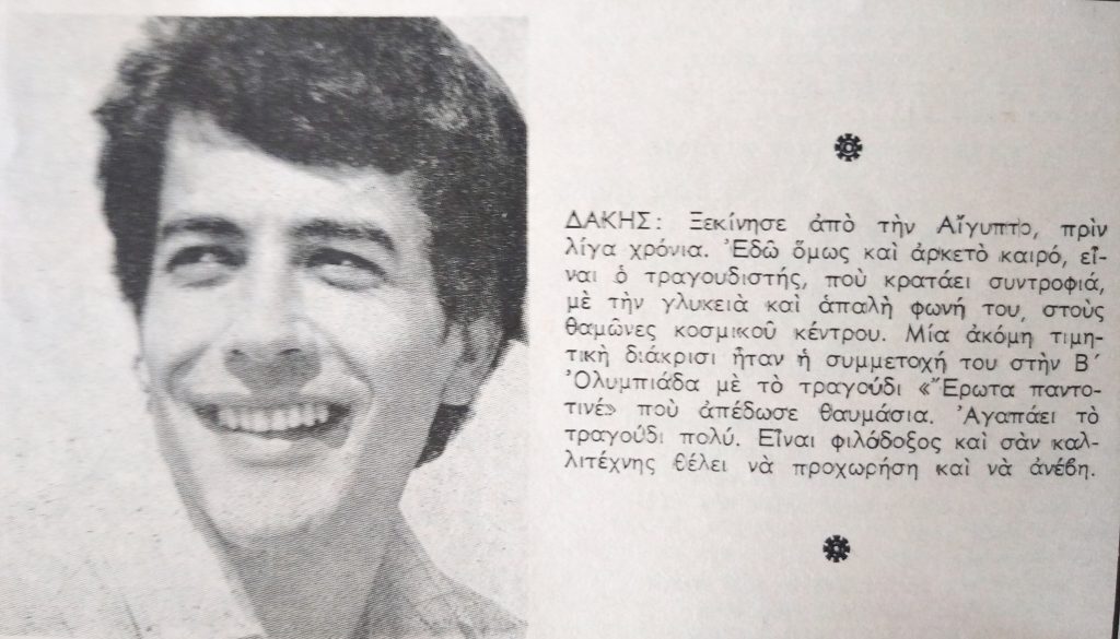 Ο Δάκης, το χαμογελαστό παιδί της Αλεξάνδρειας, που γεννήθηκε στις 26 Αυγούστου 1943 και έφυγε από τη ζωή στις 29 Μαίου 2022 “ έγραψε” με τη ζωή και τα τραγούδια που ερμήνευσε μια από τις πιο σημαντικές ιστορίες στην ποπ μουσική της χώρας.