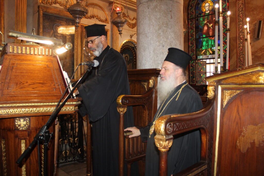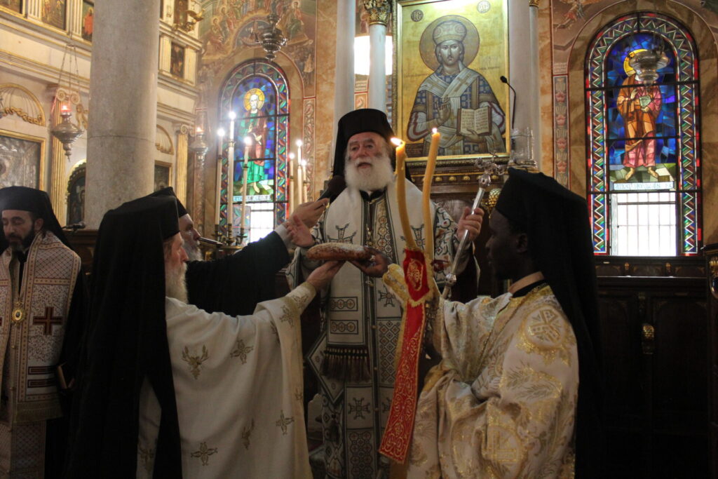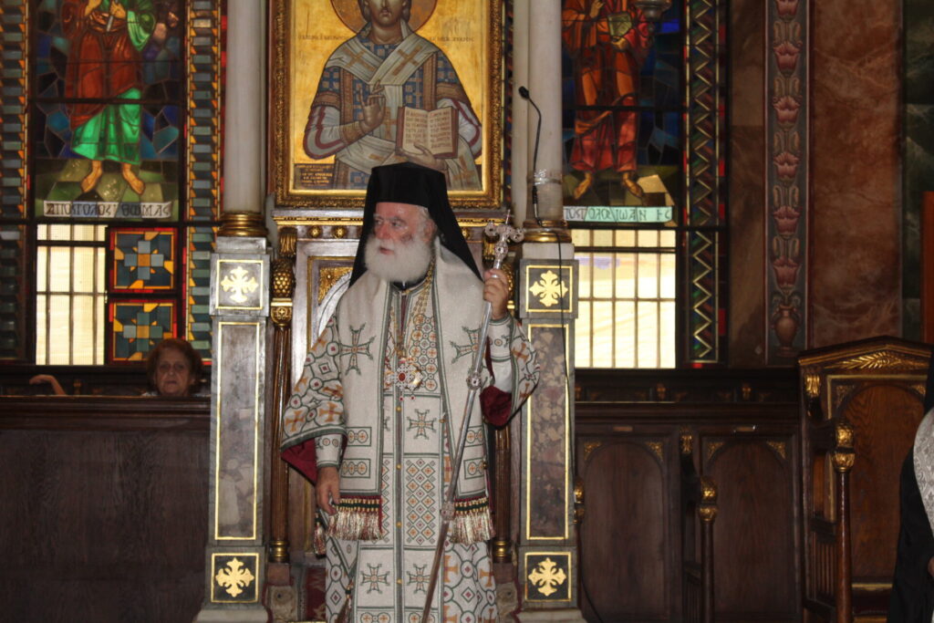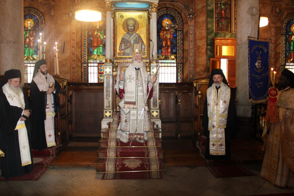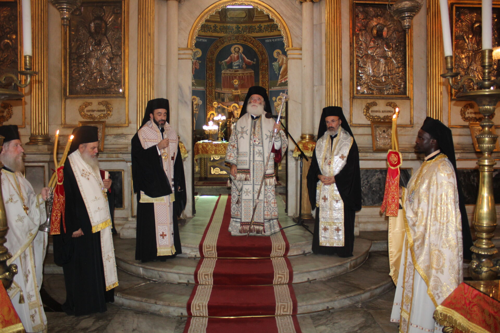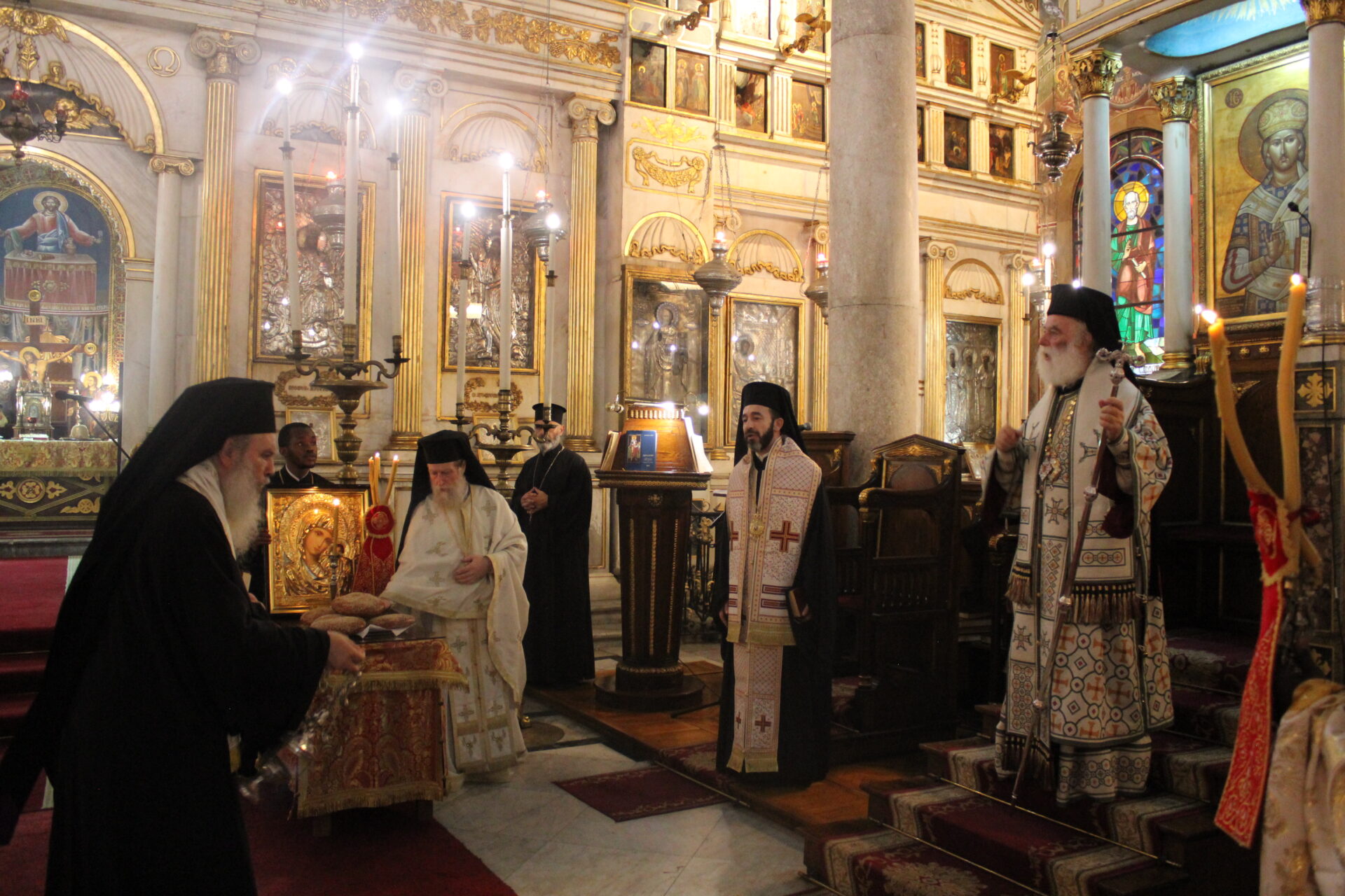 Ο Μακαριώτατος, συμπροσευχόμενος με τους Σεβασμιώτατους Μητροπολίτες Ναυκράτιδος κ. Παντελεήμονα, Αρχιγραμματέα της Ιεράς Συνόδου, Πηλουσίου κ. Νάρκισσο, Πατριαρχικό Επίτροπο Αλεξανδρείας και Ταμιάθεως κ. Γερμανό, Προϊστάμενο της Ιεράς Μονής Οσίου Σάββα Αλεξανδρείας, και με τον Πανοσιολογιότατο κ. Ισαάκ, Σχολάρχη της Πατριαρχικής Σχολής, τους ιερατικούς μαθητές και τον Αιδεσιμολογιώτατο Πρωτοπρεσβύτερο π. Πάνο Γαζή στο ψαλτήρι, τίμησαν και δόξασαν την Εορτή της Παναγίας της Κυκκώτισσας.