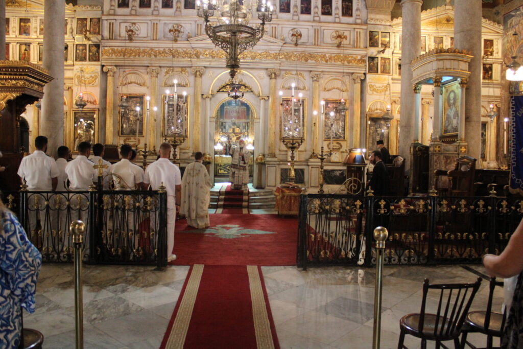 Από νωρίς άνδρες του Ναυτικού και του Στρατού της Κύπρου, κατέφθασαν και με την αρμόζουσα ευλάβεια πήραν τη θέση τους εντός του Ιερού Ναού. Συναντήσαμε τον Ακόλουθο Άμυνας της Πρεσβείας της Κύπρου κ. Κωνσταντίνο Χατζηκωστή, ο οποίος με υπερηφάνεια για την Κύπρο και την Εορτή της Παναγίας του Κύκκου, μας δήλωσε για τον “Αλεξανδρινό Ταχυδρόμο” της Ελληνικής Κοινότητας Αλεξανδρείας: