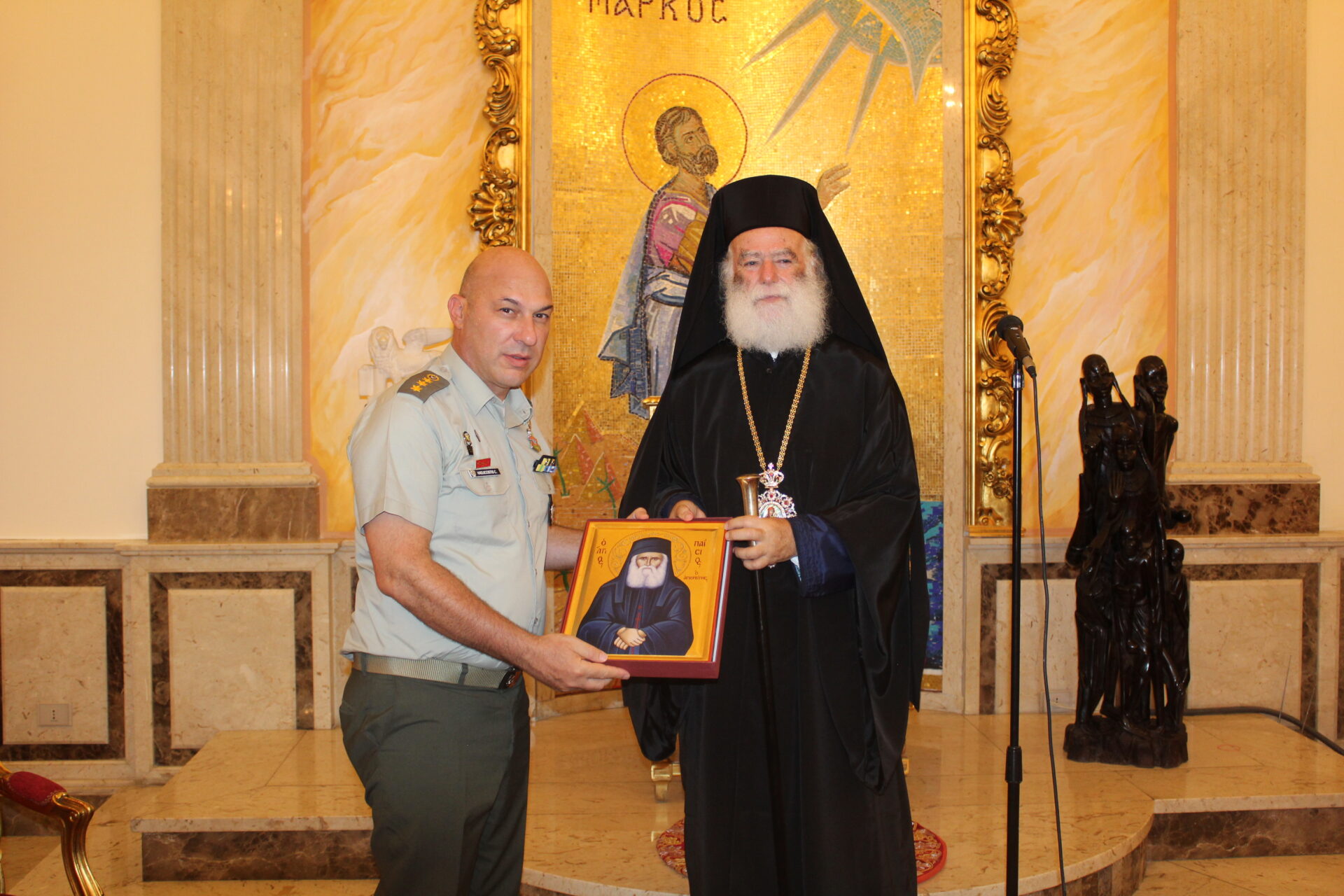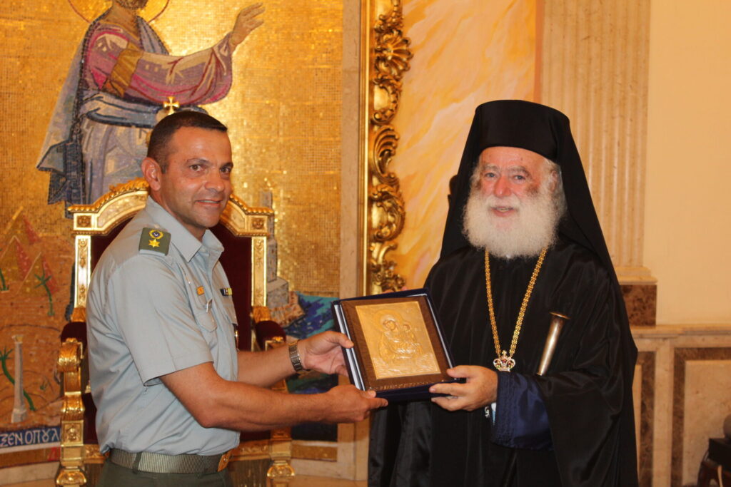 Ακολούθως ο Προκαθήμενος της Αλεξανδρινής Εκκλησίας, εδέχθη την αντιπροσωπεία της Εθνικής Φρουράς Κύπρου στην Αίθουσα του Θρόνου του Πατριαρχικού Μεγάρου.