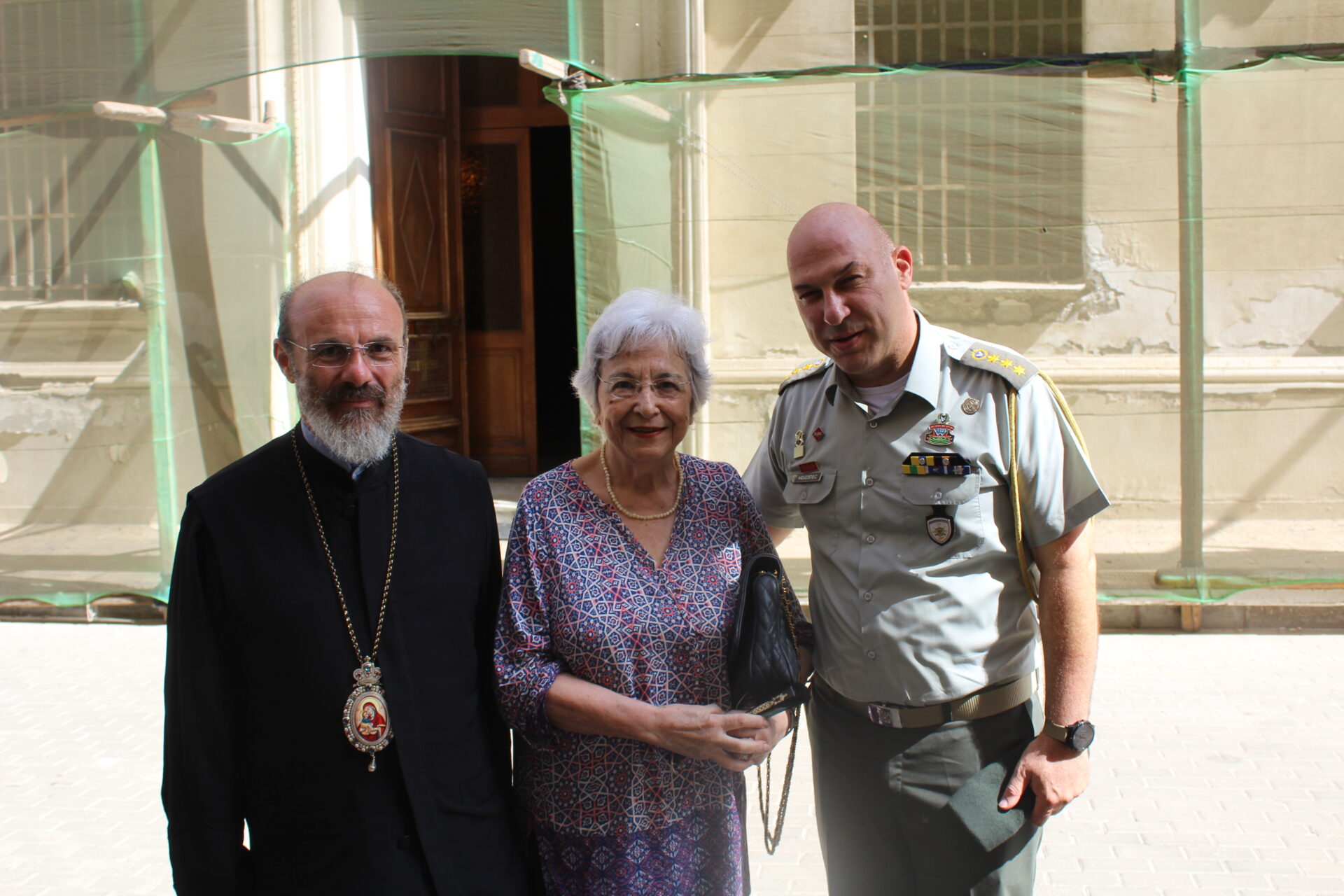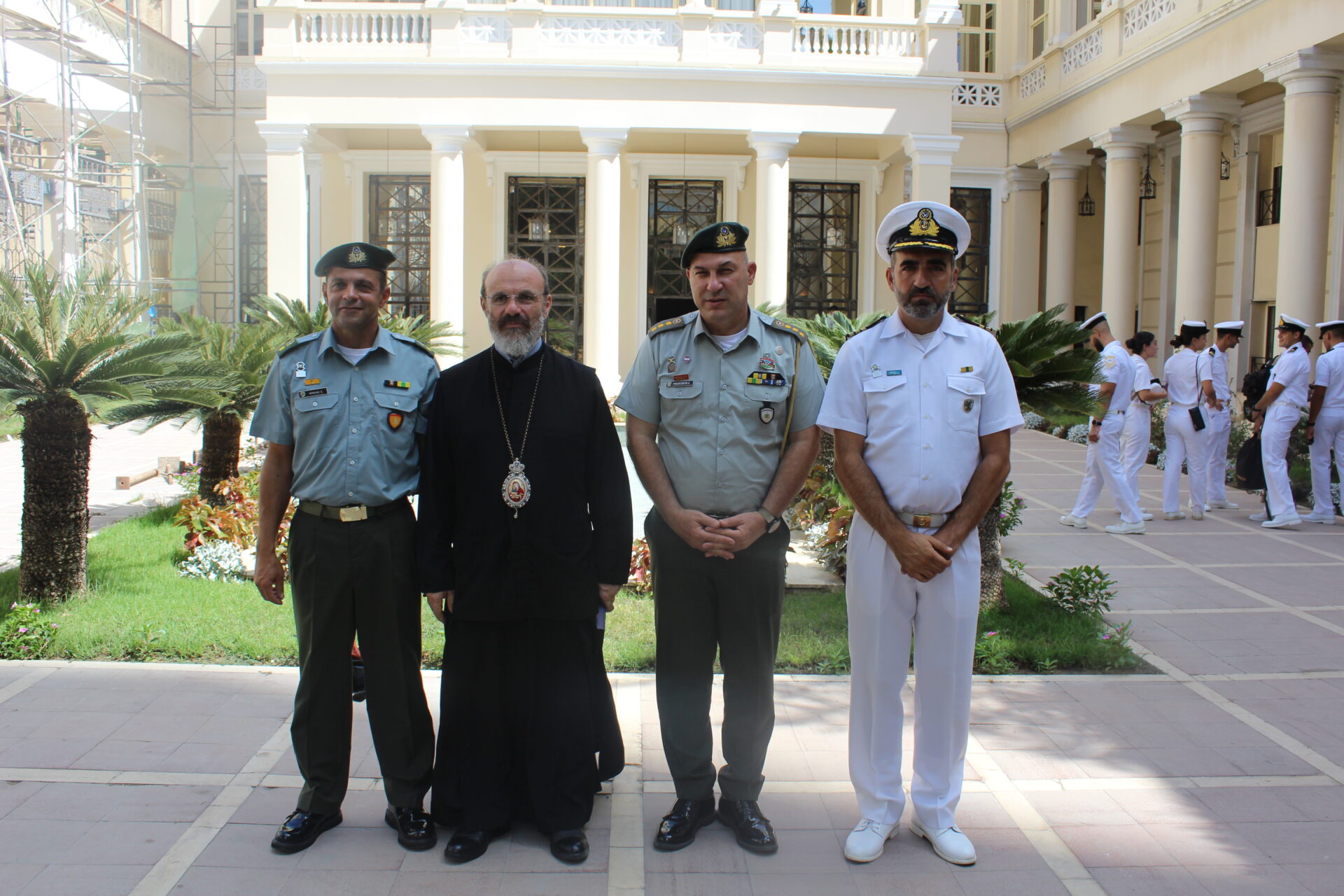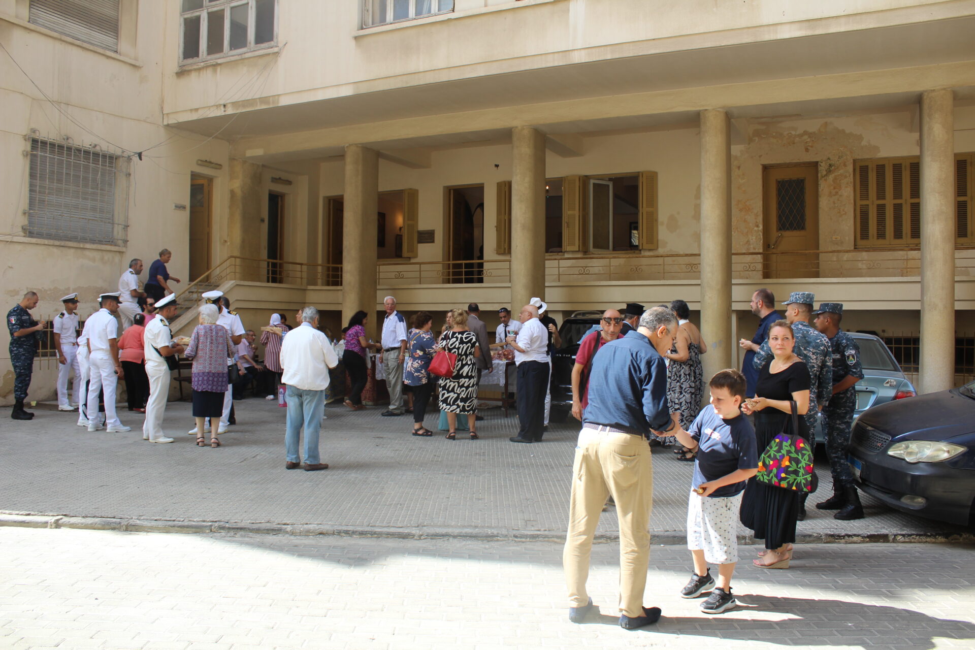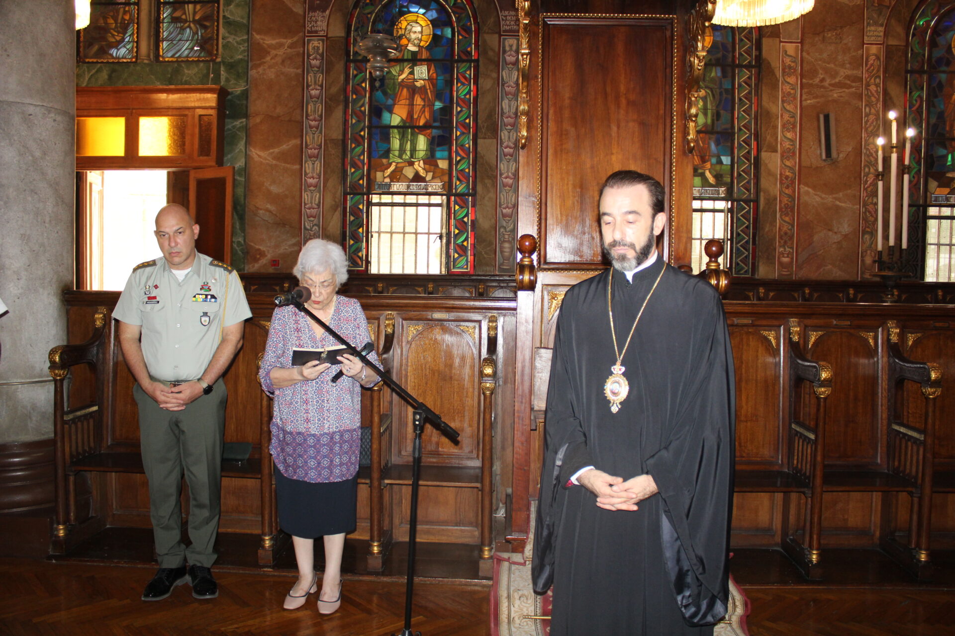 Δίπλα της ο Ακόλουθος Άμυνας της Κυπριακής Πρεσβείας στην Αίγυπτο, κ. Κωνσταντίνος Χατζηκωστής, ο κυβερνήτης του Πλοίου, Πλωτάρχης Γεώργιος Αριστοδήμου και ο επικεφαλής Ταγματάρχης Στέλλιος Κρασσάς. Επίσης, παρέστησαν πιστοί Αιγυπτιώτες και εκπαιδευτικοί από τα σχολεία της Ελληνικής Κοινότητας Αλεξανδρείας.