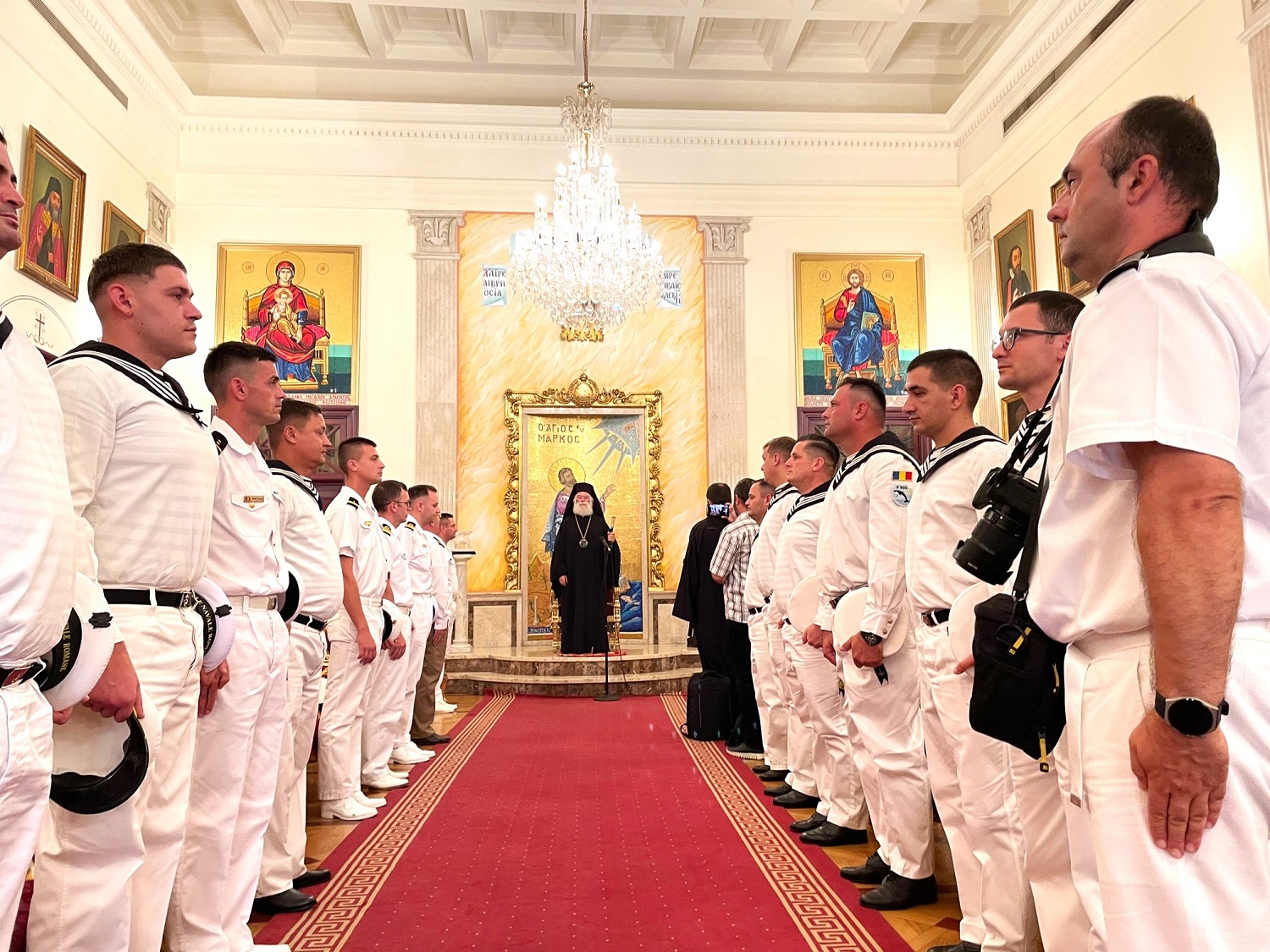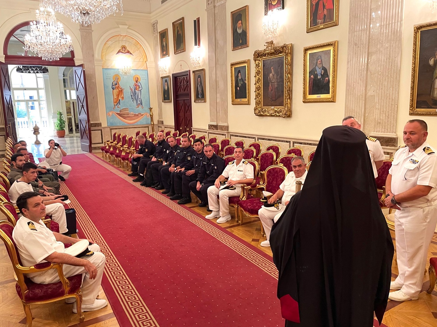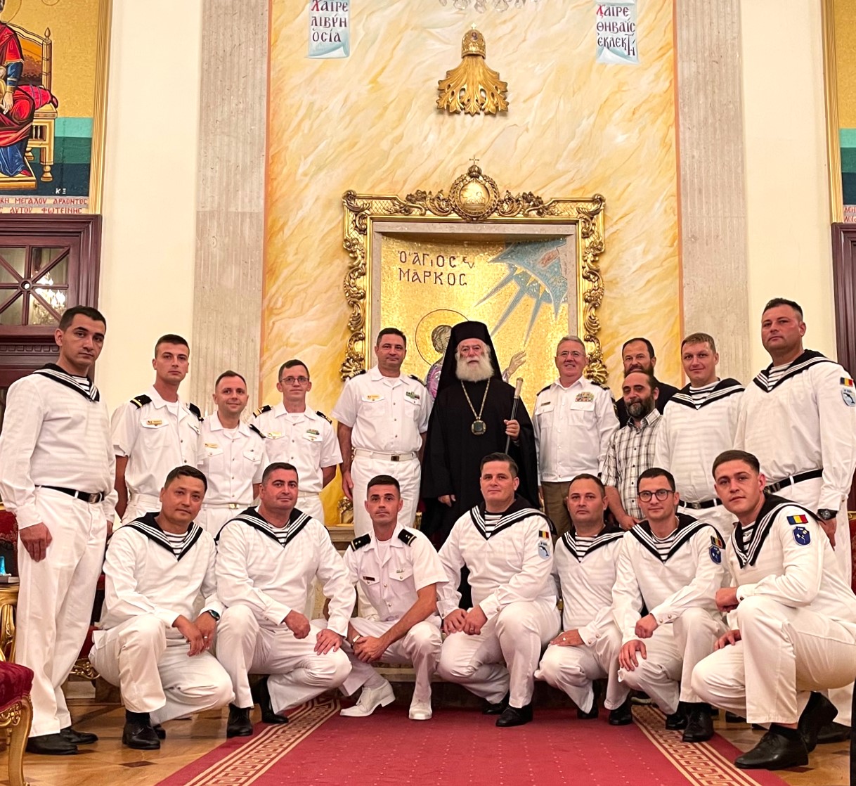 Επίσκεψη στο παλαίφατο Πατριαρχείο Αλεξανδρείας πραγματοποίησαν διαδοχικώςτην Τρίτη, 26η Σεπτεμβρίου 2023, οι κυβερνήτες και οι αξιωματικοί των πολεμικών πλοίων Φ/Γ «Regina Maria» του Ρουμανικού Πολεμικού Ναυτικού και Φ/Γ «Ναυαρίνο» του Ελληνικού Πολεμικού Ναυτικού, τα οποία κατέπλευσαν στο λιμάνι της Αλεξάνδρειας, μέσω Σούδας της Κρήτης, στα πλαίσια της ασκήσεως «Sea Guardian” του ΝΑΤΟ για την ασφάλεια στην Ανατολική Μεσόγειο.
