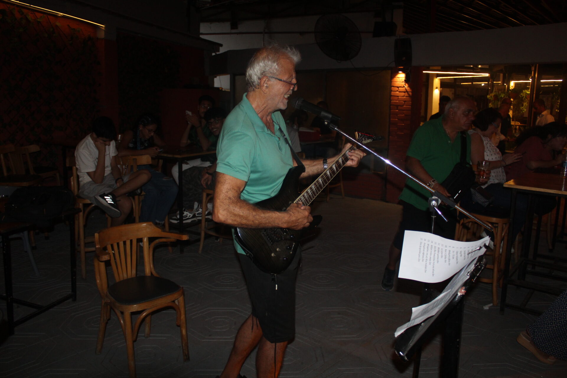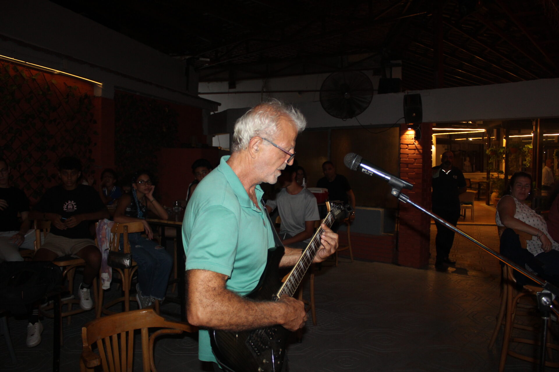 Ο εκπαιδευτικός Νικόλας Χατζησκάκης, έδωσε το δικό του ρεσιτάλ ροκ βραδιάς. Επαγγελματίας με 30 χρόνια εμπειρία στην κιθάρα και το τραγούδι, μας γύρισε χρόνια πίσω με τα ρετρό τραγούδια του και συνάμα μας έφερε στο σήμερα με το πλούσιο ρεπερτόριό του.