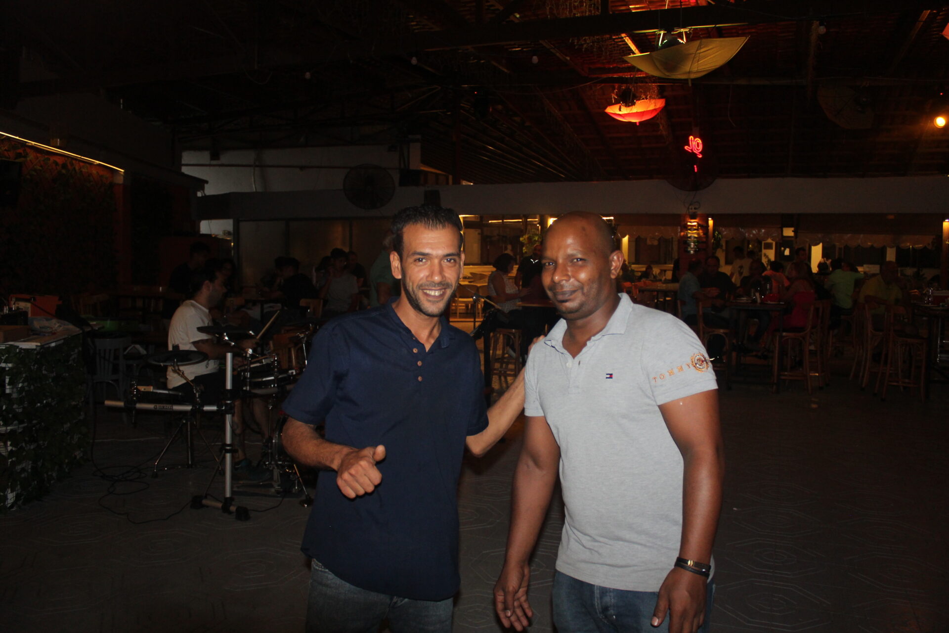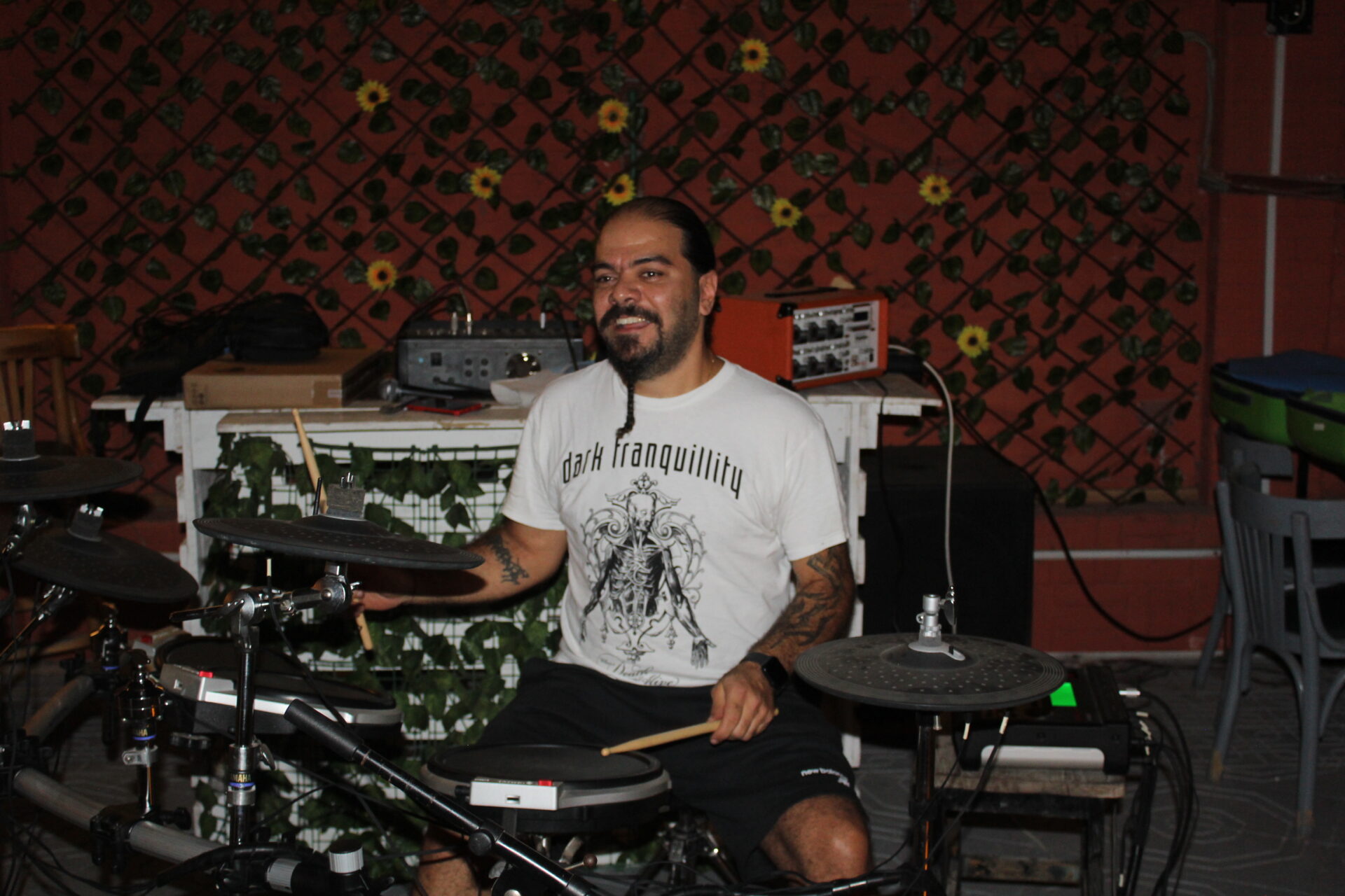 Δίπλα του και στήριγμα στην πρώτη του εμφάνιση, ένας δικός μας ντράμερ της heavy metal μουσικής αποτέλεσε την έκπληξη καθώς δεν είχε αναγγελθεί η συμμετοχή του. Ο Διευθυντής τη Ελληνικής Κοινότητας Γιώργος Μπούλος, για όσους δεν γνωρίζουν την μουσική του ενασχόληση, θεωρείται από τους καλύτερους ντράμερ της Αιγύπτου με εκατοντάδες χτυπήματα το λεπτό. Με το συγκρότημά του Odious έχει περιοδεύσει σε όλη την Ευρώπη, ενώ εξακολουθεί να δίνει βραδιές σε διάφορους χώρους, τόσο σε ξένα μέρη, όσο και στο Κάιρο, την Αλεξάνδρεια και αλλού. Τα cd του έχουν αγαπηθεί από τους «χεβυμεταλάδες» και όχι μόνο!