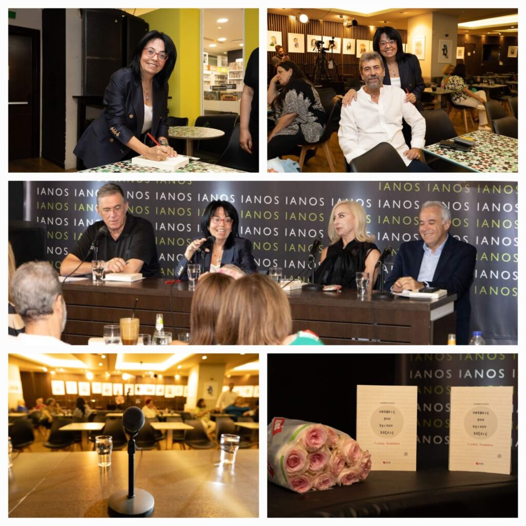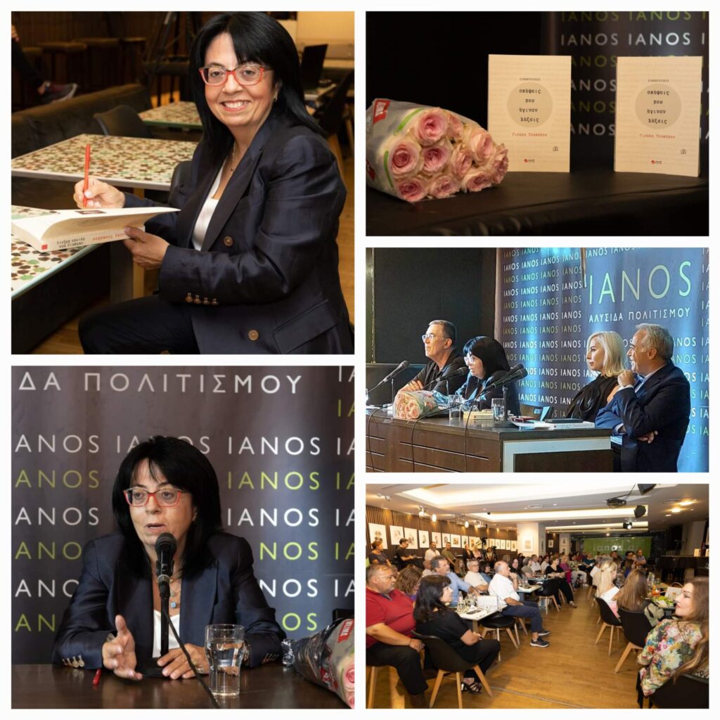 Στο πρόσφατης κυκλοφορίας βιβλίο της «Σκέψεις που έγιναν λέξεις», Εκδόσεων Πνοή, έγινε μια ανθολόγηση ορισμένων από τις συνεντεύξεις της, που αντιπροσωπεύουν ένα μεγάλο φάσμα ανθρώπων που αγαπούν το βιβλίο. Ανάμεσά τους, βραβευμένοι λογοτέχνες παγκόσμιου φήμης, Έλληνες συγγραφείς και πολιτικοί που με την παρουσία τους αφήνουν το αποτύπωμά τους στον τόπο μας.