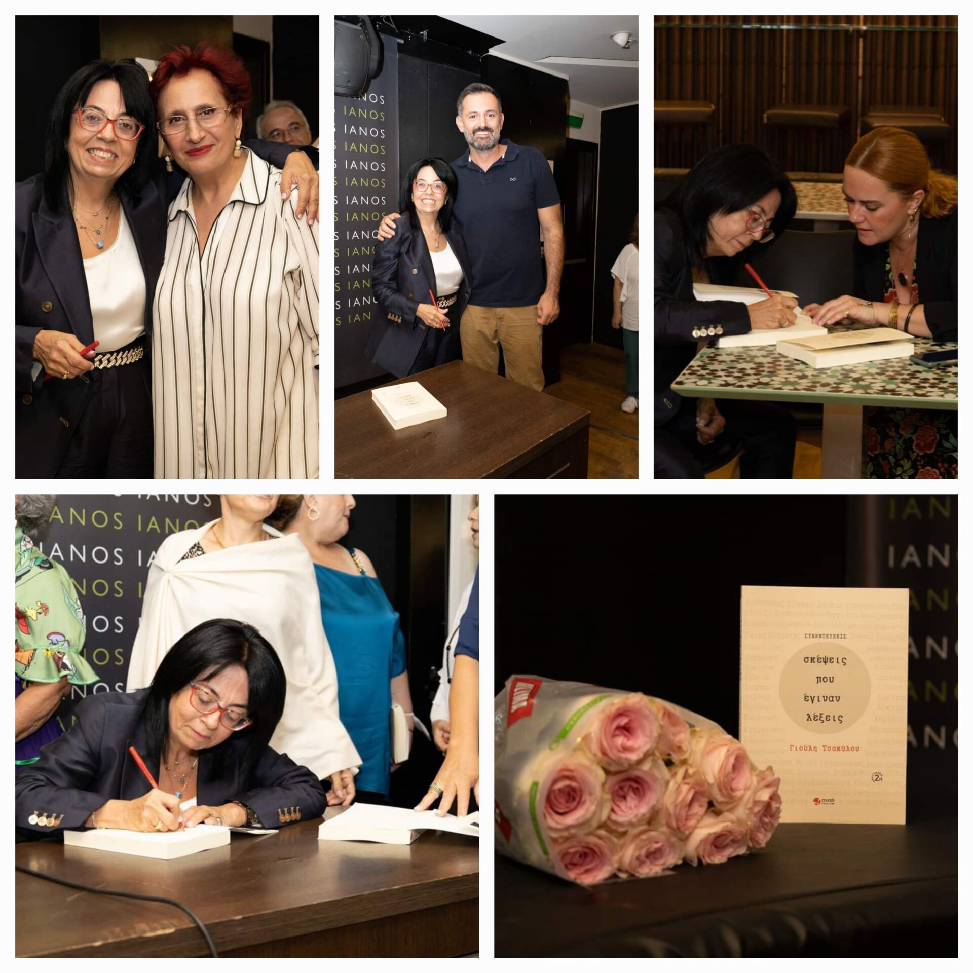 Στο πρόσφατης κυκλοφορίας βιβλίο της «Σκέψεις που έγιναν λέξεις», Εκδόσεων Πνοή, έγινε μια ανθολόγηση ορισμένων από τις συνεντεύξεις της, που αντιπροσωπεύουν ένα μεγάλο φάσμα ανθρώπων που αγαπούν το βιβλίο. Ανάμεσά τους, βραβευμένοι λογοτέχνες παγκόσμιου φήμης, Έλληνες συγγραφείς και πολιτικοί που με την παρουσία τους αφήνουν το αποτύπωμά τους στον τόπο μας.