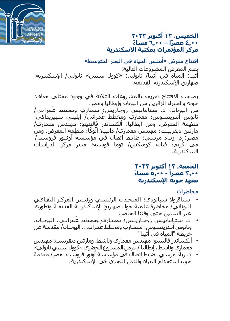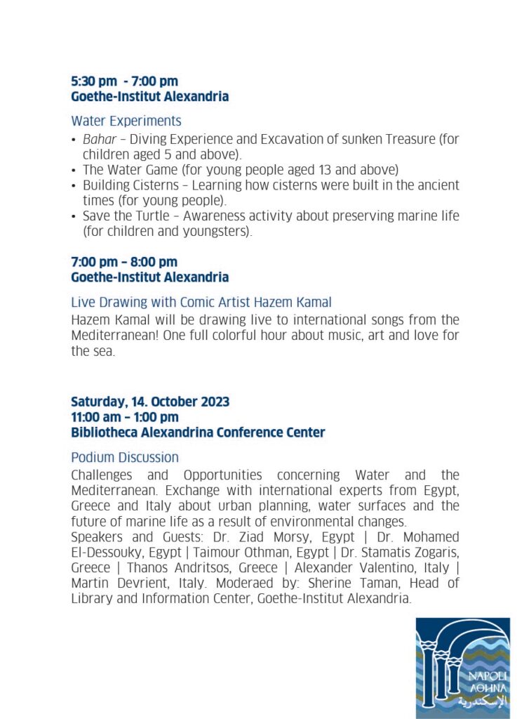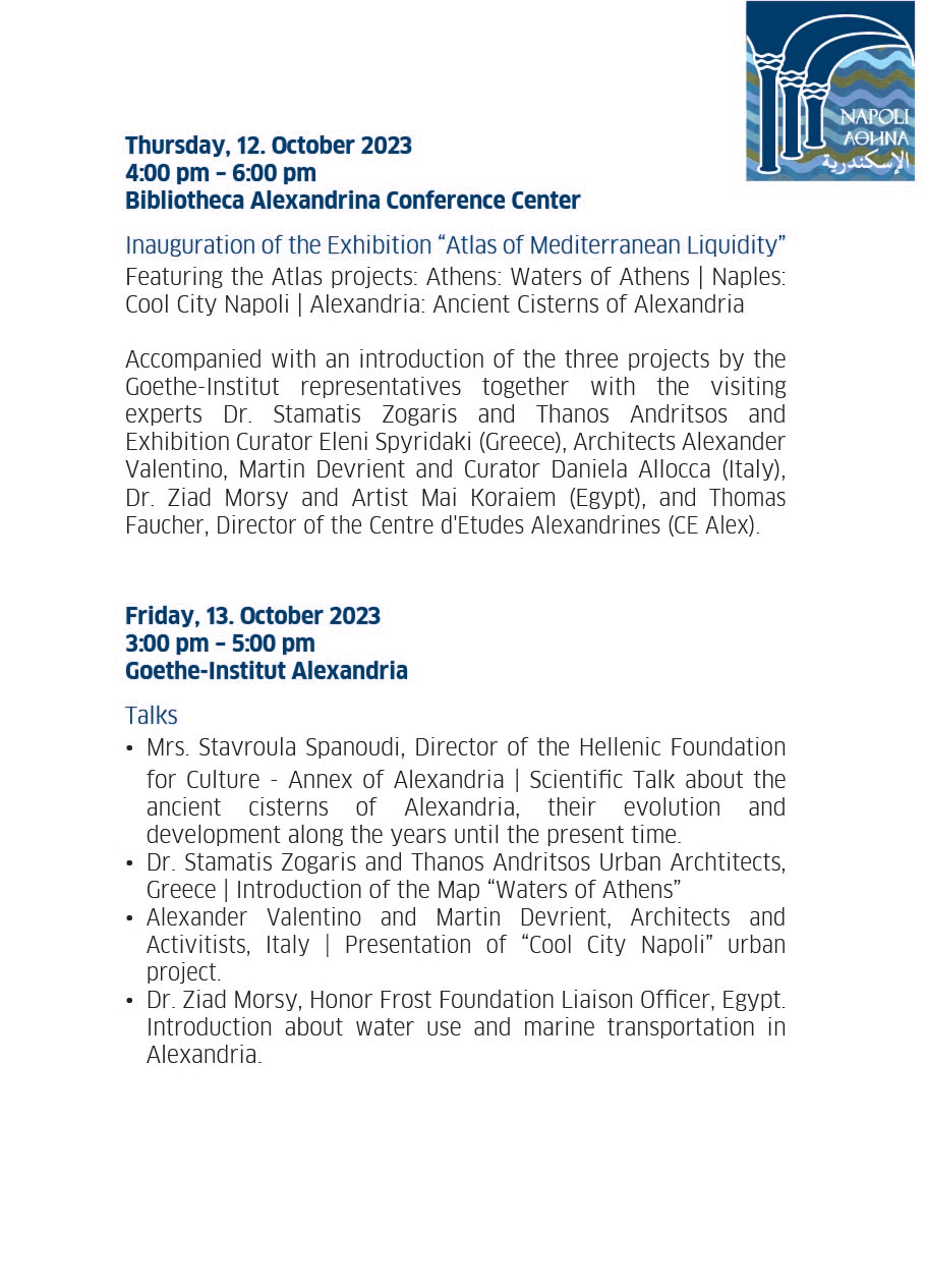 Το Συμπόσιο “Atlas of the Mediterranean Liquidity” πραγματοποιείται στην Αλεξάνδρεια από το Ίδρυμα Ελληνικού Πολιτισμού Αλεξανδρείας, το Ινστιτούτο Γκαίτε και την Βιβλιοθήκη Αλεξανδρείας.