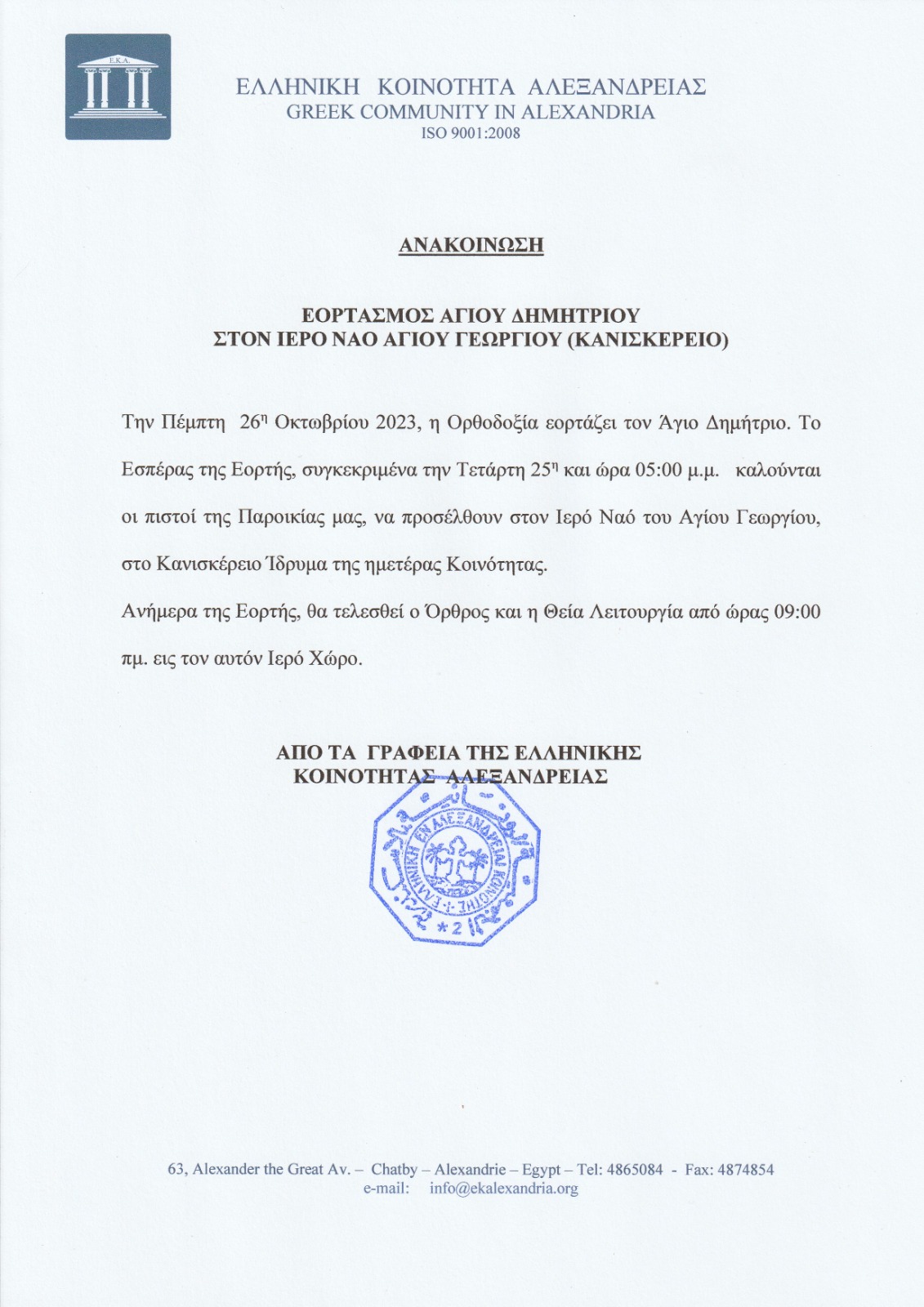 Εορτασμός Αγίου Δημητρίου στο Κανισκέρειο