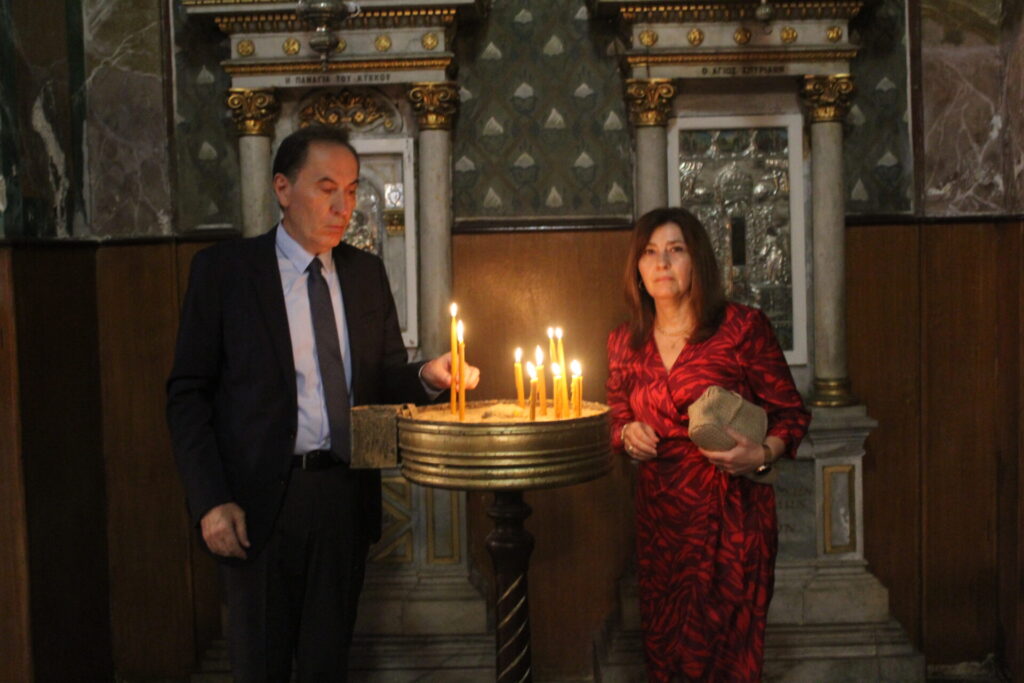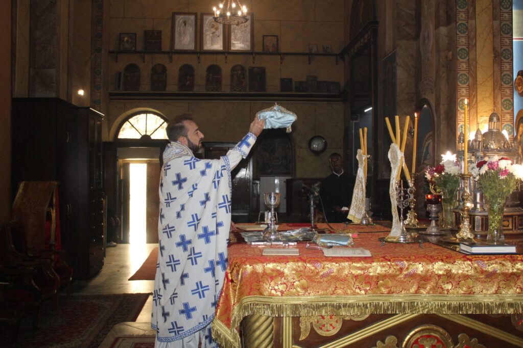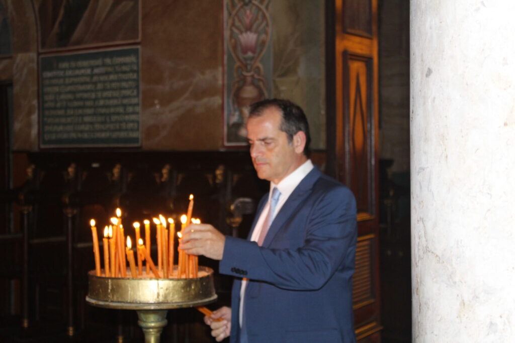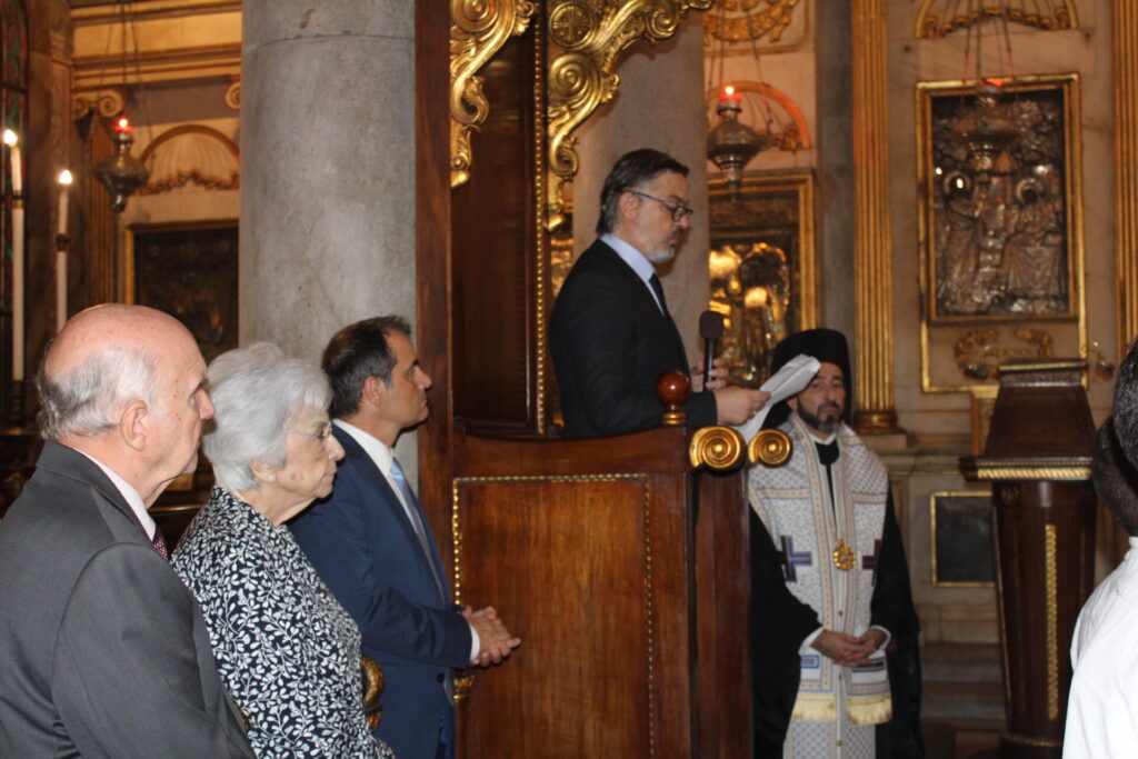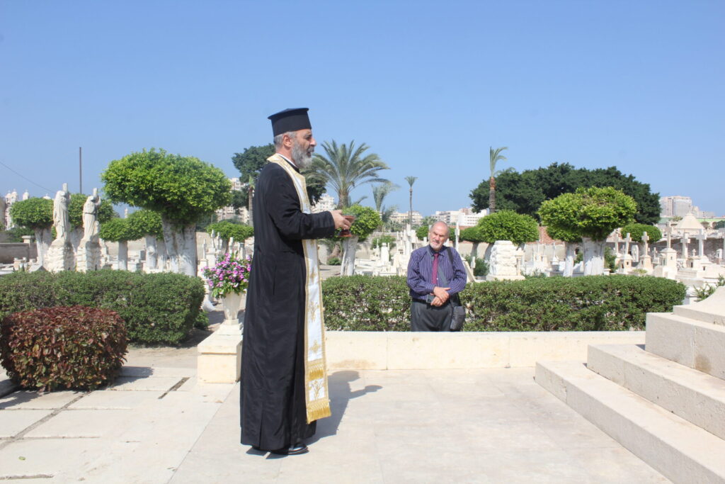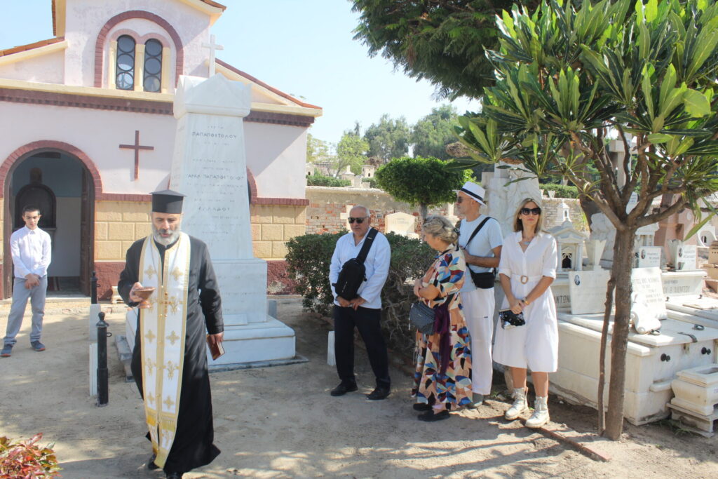 Μετά το εθιμοτυπικό κέρασμα στο αρχονταρίκι του Ναού, ο Αιδεσιμολογιώτατος Πρωτοπρεσβύτερος και συνάμα εκπαιδευτικός π. Πάνος Γαζής, τέλεσε επιμνημόσυνη δέηση στο Κοιμητήριο της Ελληνικής Κοινότητας Αλεξανδρείας στο Μνημείο των Πεσόντων Ικάρων.