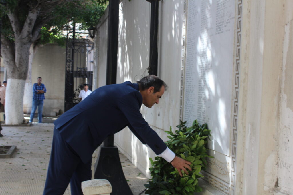 Εψάλησαν εκ του ιδίου, οι ιερές φράσεις που λυτρώνουν τις ψυχές των αποθανόντων ηρώων και κατατέθηκαν στέφανοι από τον Γενικό Πρόξενο κ. Ιωάννη Πυργάκη και τον Πρόεδρο της ΕΚΑ κ. Ανδρέα Βαφειάδη.